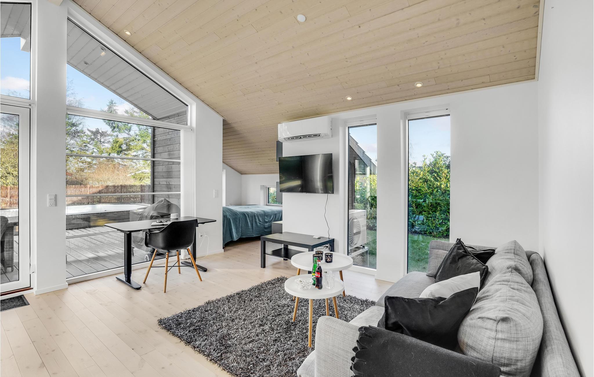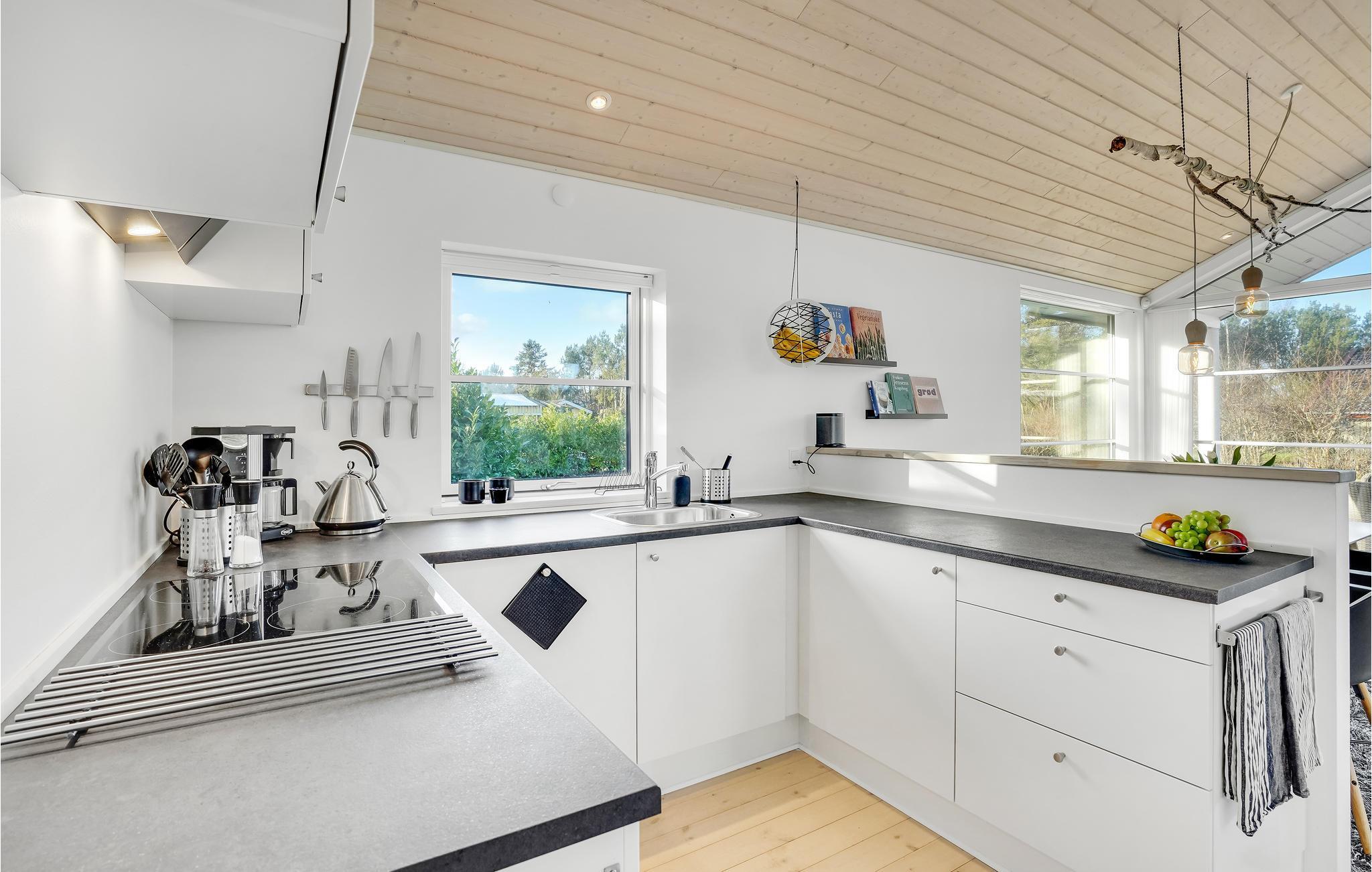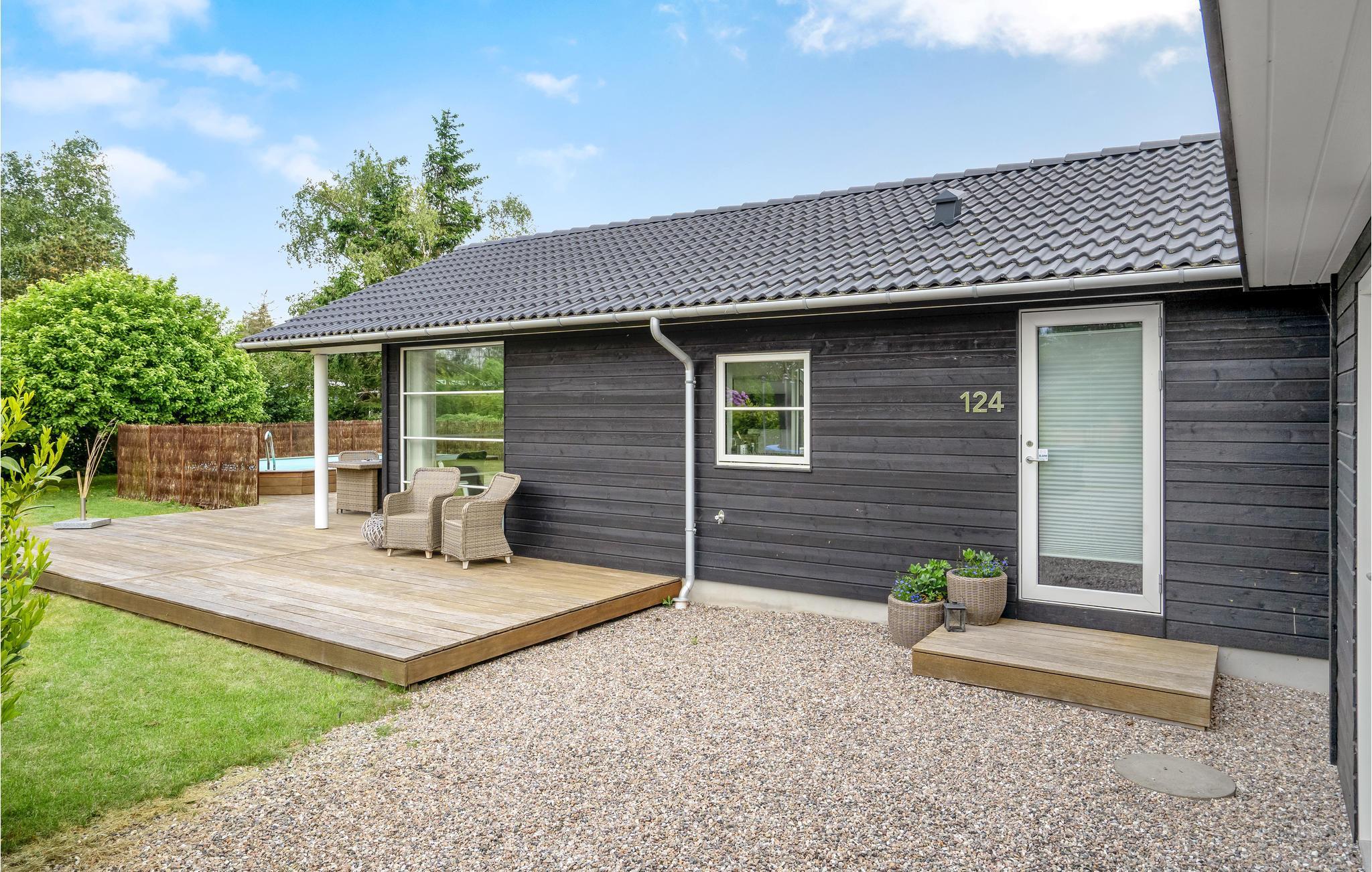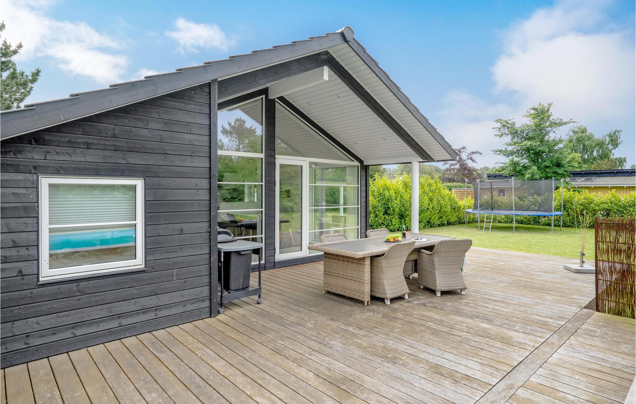 Dette klassiske skandinaviske feriehus byder jer velkommen med en vellykket indretning, harmonisk indrettede møbler samt en have med terrasse og udendørs pool. Den hyggelige og rumlige stue er forbundet med det flotte, moderne køkken. Her kan I tilbringe en afslappet tid med venner eller familie i en rolig atmosfære.