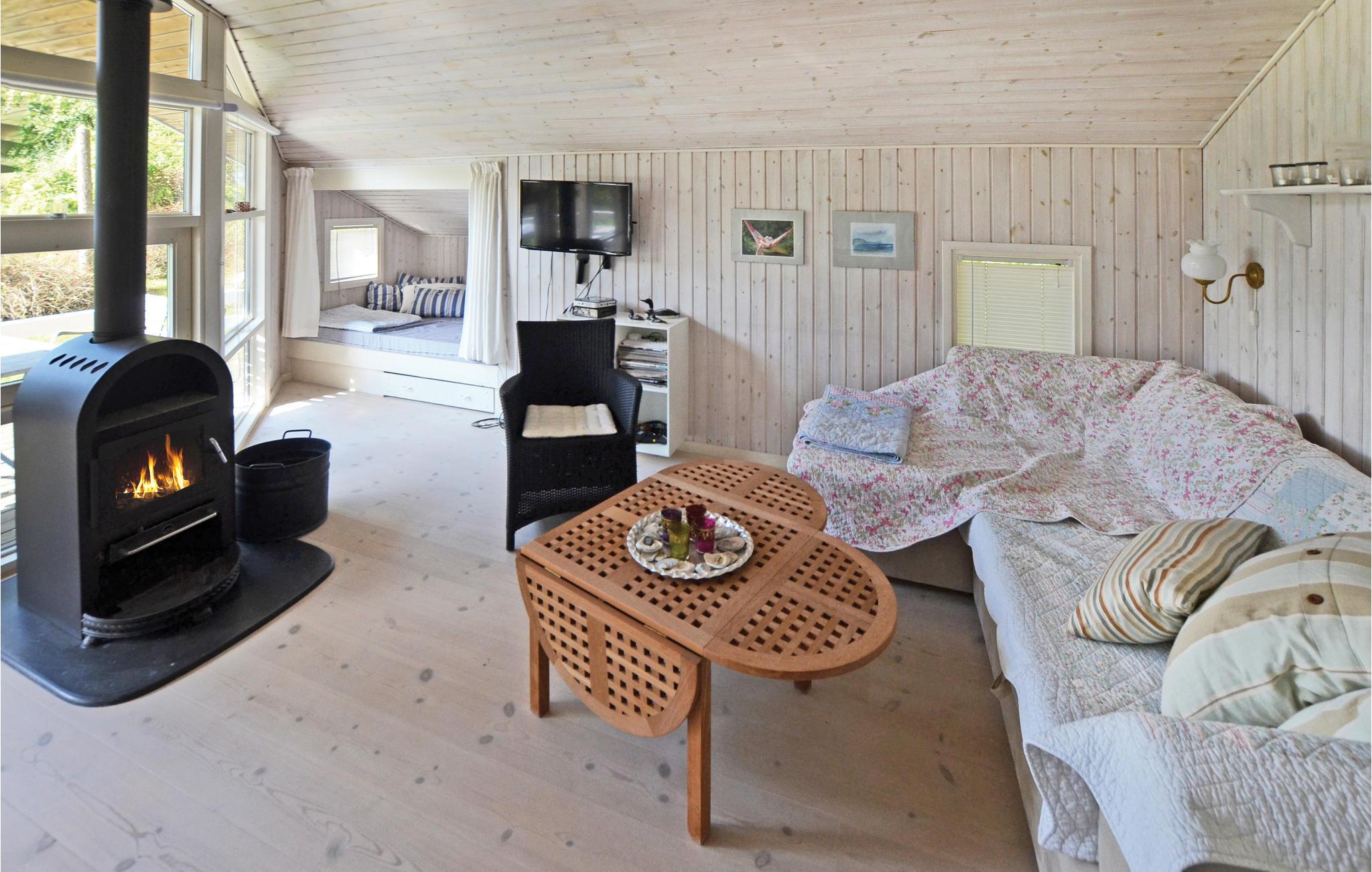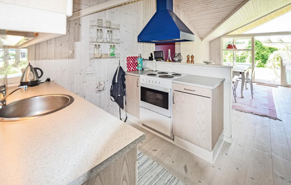 Kun 50 meter fra en familievenlig strand i naturskønne omgivelser ligger dette hyggelige og velindrettede hus på en stor veltilplantet grund. Det dejlige åbne køkken ligger i forbindelse med stuen, som er udstyret med en brændeovn til de kolde dage og aftener. Over alt i huset kan I benytte huset gratis trådløse internet. Badeværelset er udstyret med et spabad, hvor kroppen kan forkæles før eller efter en tur i husets dejlige sauna. Tæt ved huset ligger der en legeplads med masser af muligheder for børn i alle aldre. I Hasmark Feriepark, som ligger i nærheden, er der også restaurant, legeplads og et badeland (åbent i sommerhalvåret).