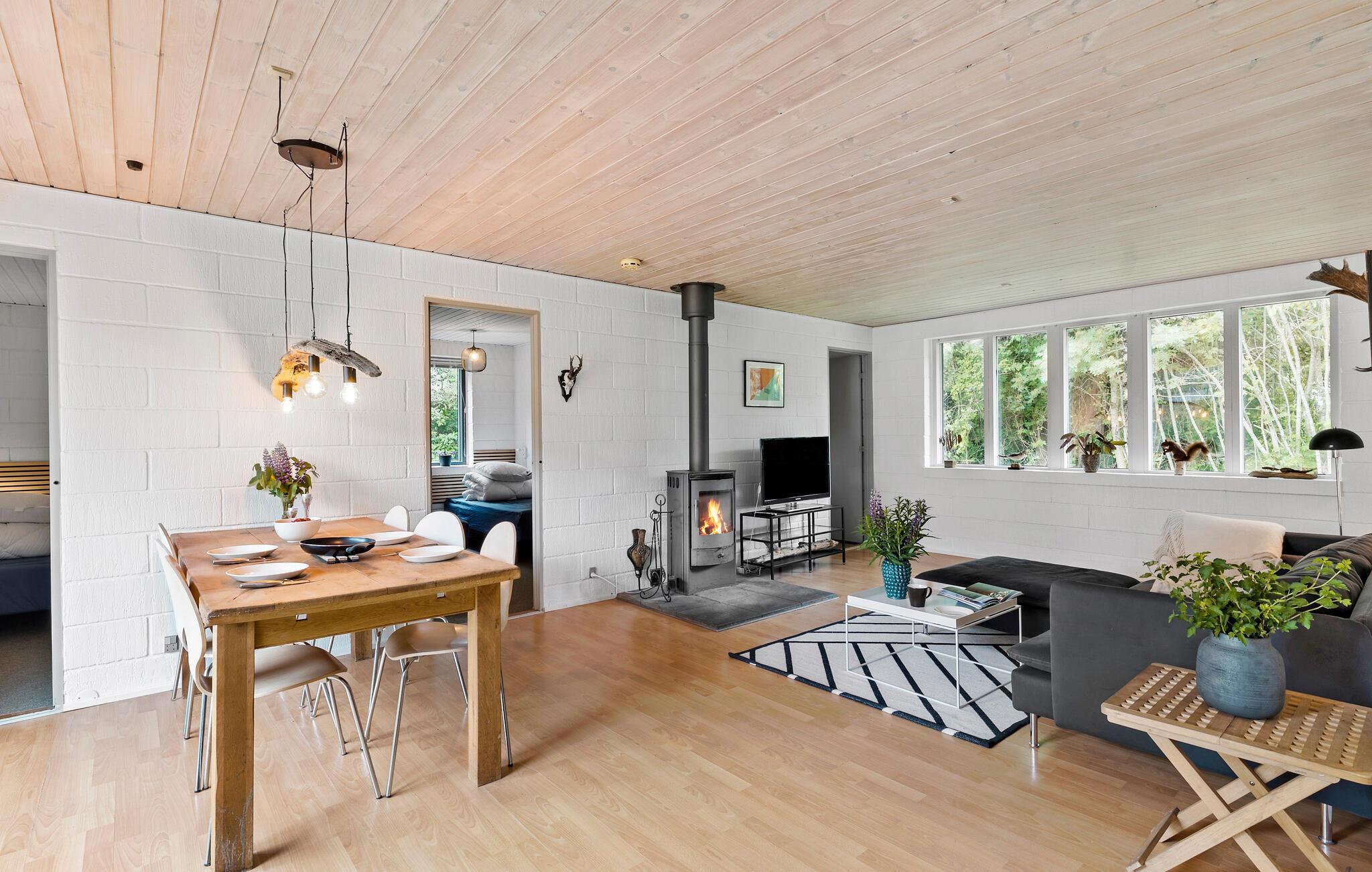 Der er lagt op til en dejlig og rolig ferie i dette hyggelige hus, som er garant for en fantastisk ferie med sine moderne faciliteter og fine indretning. Huset er i lyse farver og er det ideelle sted at slappe af efter dagens udflugter. I kan se frem til at folde jeres kulinariske evner ud sammen i det fuldt udstyrede køkken og til at tage en velfortjent slapper på sofaen ved den dejlige pejs. Særligt på de varme sommerdage er grunden omkring huset et skønt sted at lege, solbade og bare finde roen. Ikke mindst på den smukke træterrasse og den brolagte cirkel i haven.