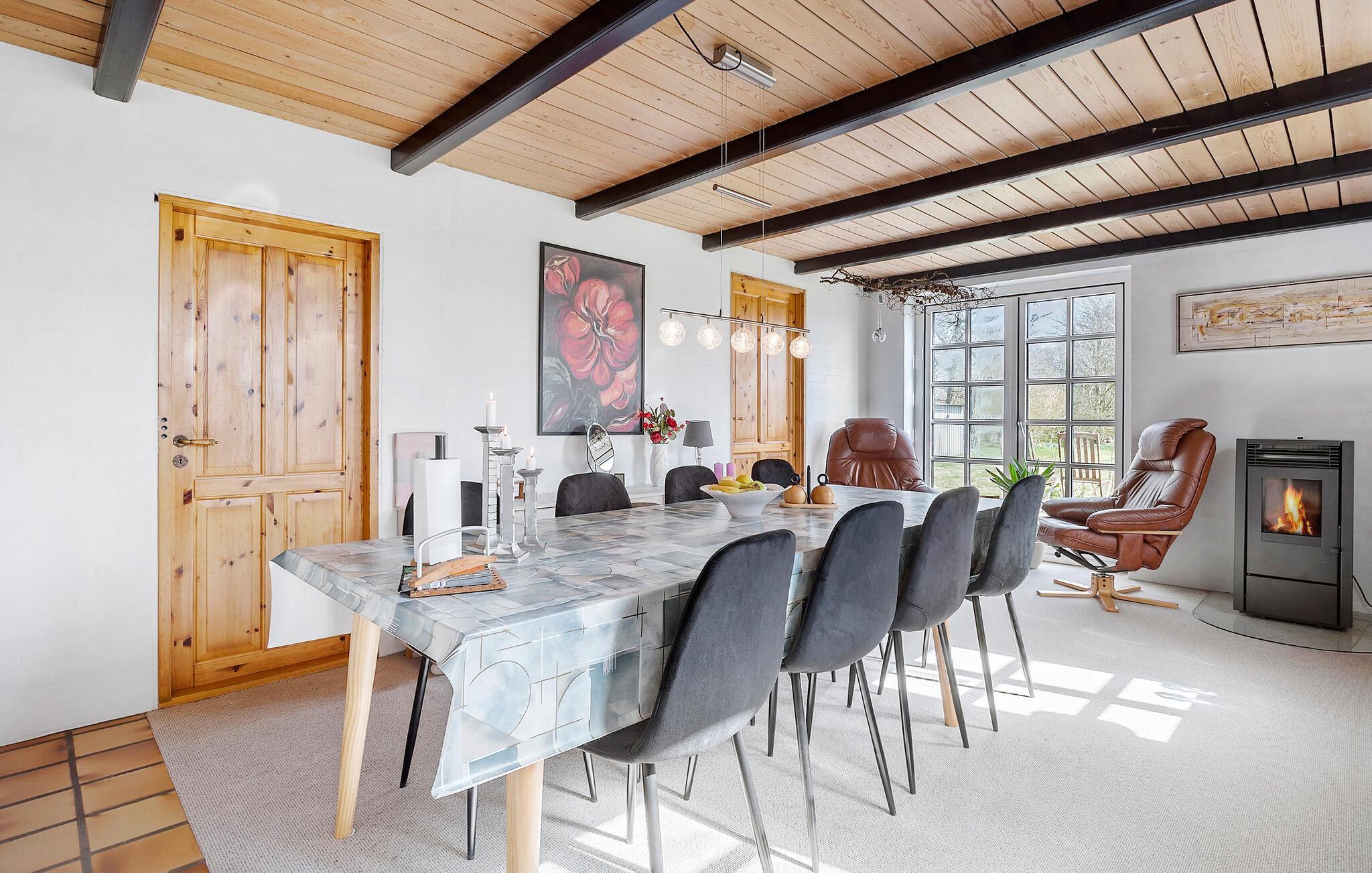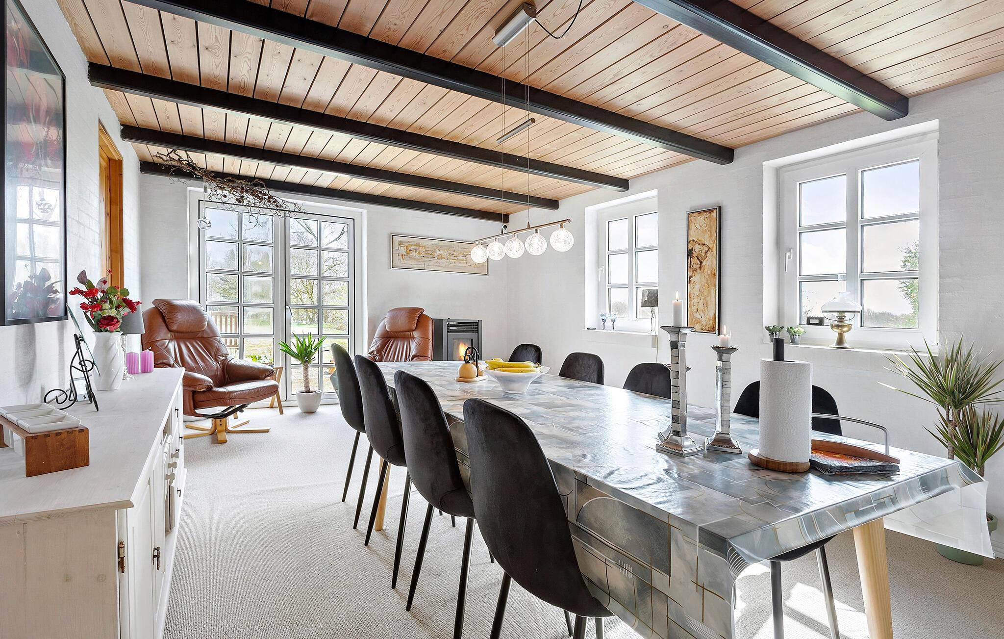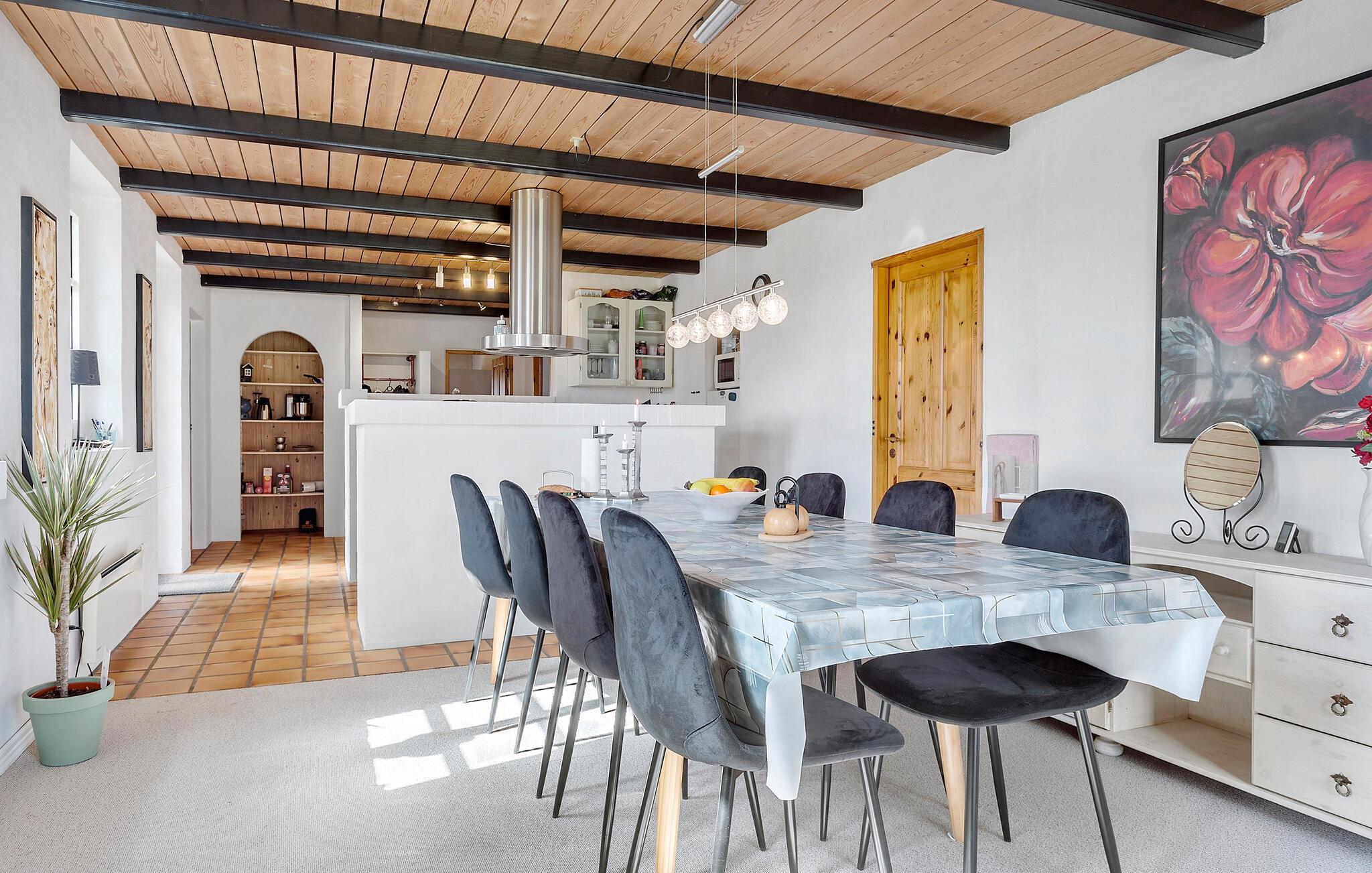 Tag den store familie under armen og rejs mod nordvest, hvor I på hyggelige Jegindø får en dejlig base i dette rummelige hus. Huset er nydeligt indrettet med store fællesrum, varme træbjælker og gode faciliteter, der gør det muligt at holde ferie her som større flok, uden at komme til at mangle det mindste. Tænd op i brændeovnen på de køligere dage og lad familiens kokke hygge sig med madlavningen, mens andre lægger puslespil ved spisebordet eller hygger sig i stuen. Efter aftensmaden kan I trække over i sofaen og runde dagen af med brætspil og et godt glas vin, mens I lægger planer for de kommende dage.
