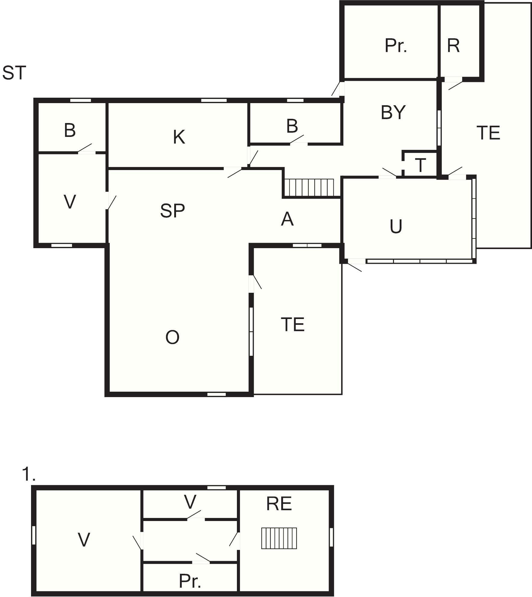 I stueplan er der desuden en skøn udestue med skøn udsigt og to badeværelser, hvoraf det ene har badekar. Der er også et soveværelse med dobbeltseng i stueetagen. Ovenpå på loftet er der yderligere to soveværelser; den ene med dobbeltseng og barneseng, den anden med enkeltseng. Der er også en hems med dobbeltseng.