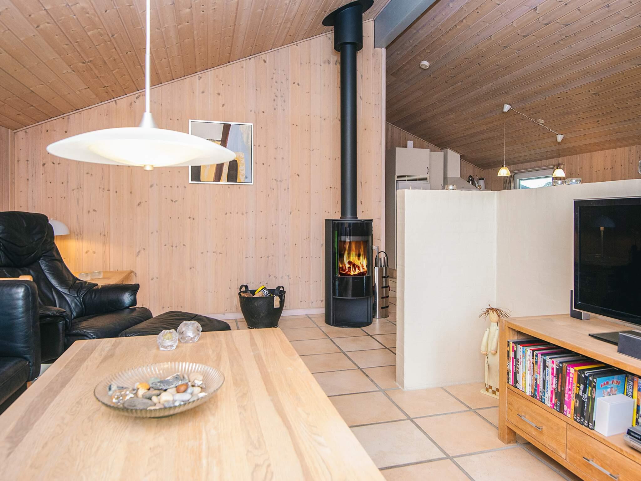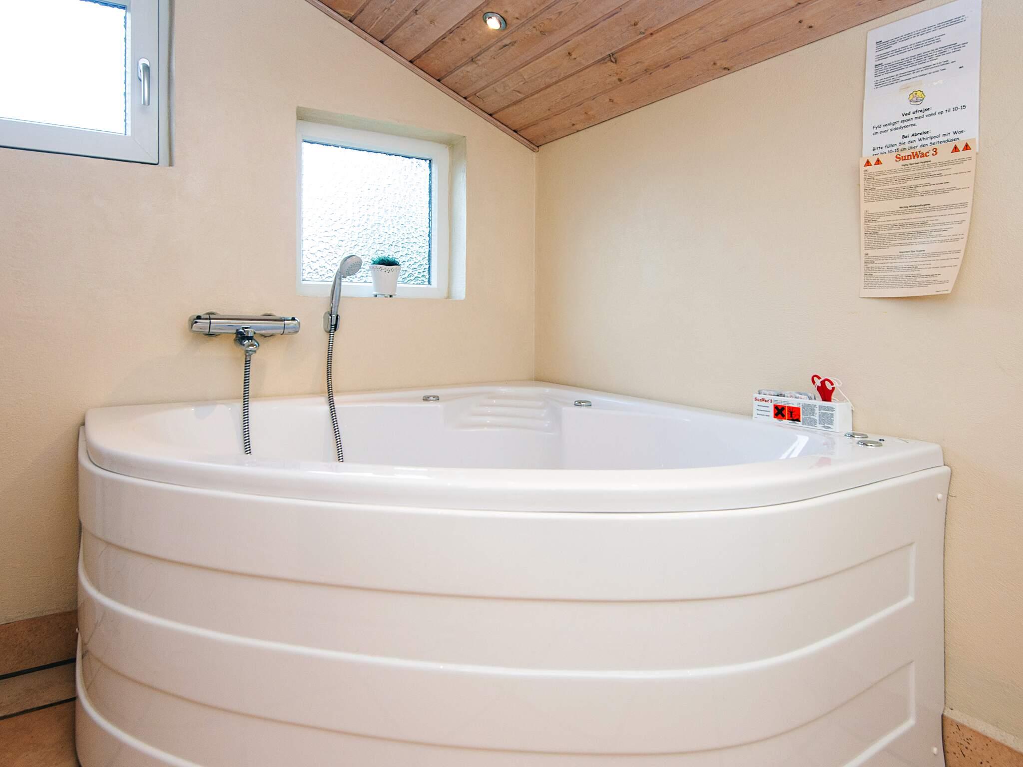 Dette moderne indrettede sommerhus ligger på en stor, tilbagetrukket grund i det familievenlige Jegum Ferieland ca. 10 min kørsel fra Vesterhavet. Det ene af husets to badeværelser indeholder både spabad og sauna. Køkkenet er udstyret med alle moderne hjælpemidler og er i åben forbindelse til stuen med et godt lysindfald. Stuen er indrettet med fladskærms-tv, brændeovn og et energivenligt klimaanlæg, som sikrer en behagelig temperatur på alle årstider. Der er Stofa internet med sommerhuspakke til tv. Der er flere terrasser omkring huset. Fra stuen, som er indrettet i moderne stil, er der direkte adgang til en overdækket terrasse, hvor I kan følge børnenes leg på den store naturgrund samt i sandkassen. Carport ved huset.