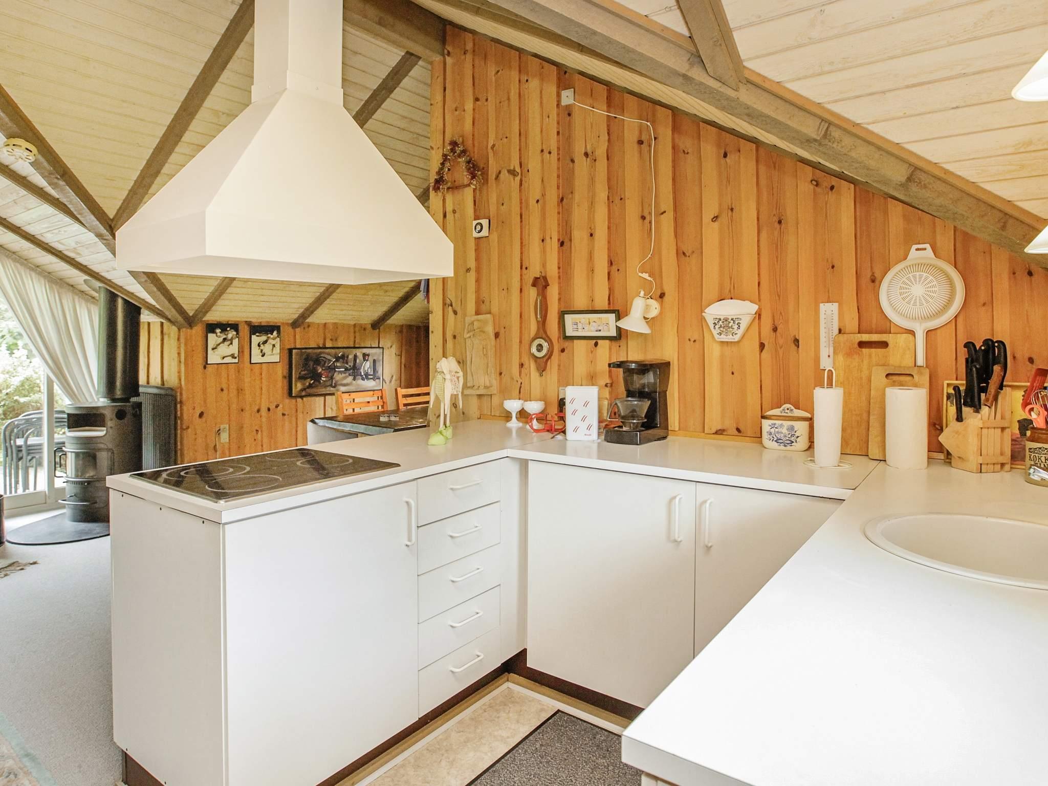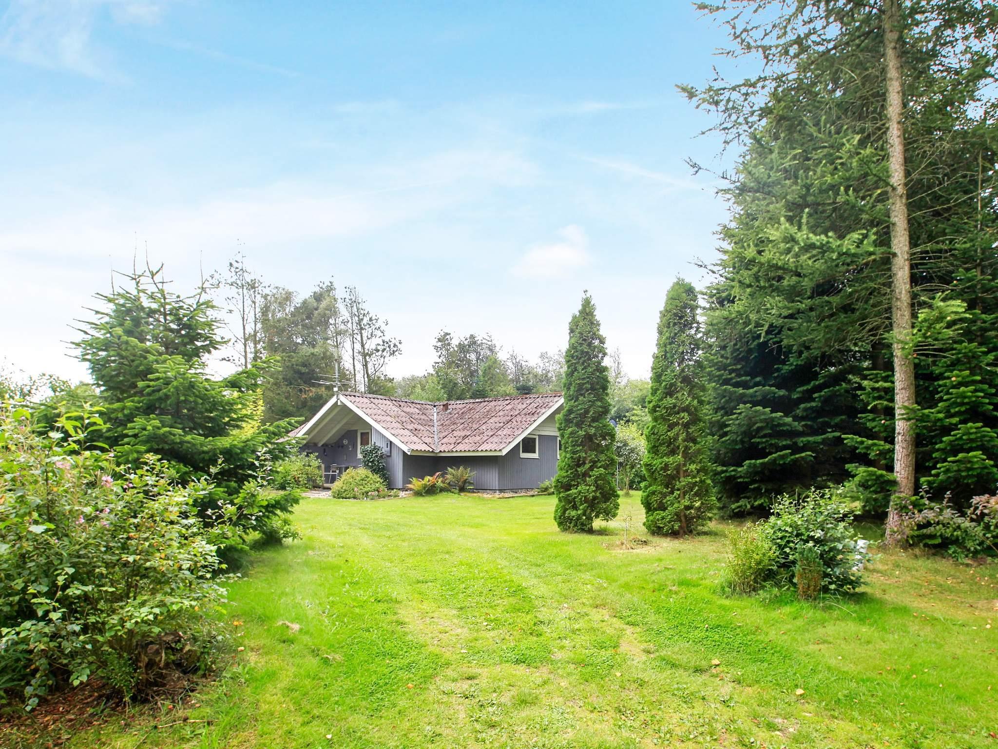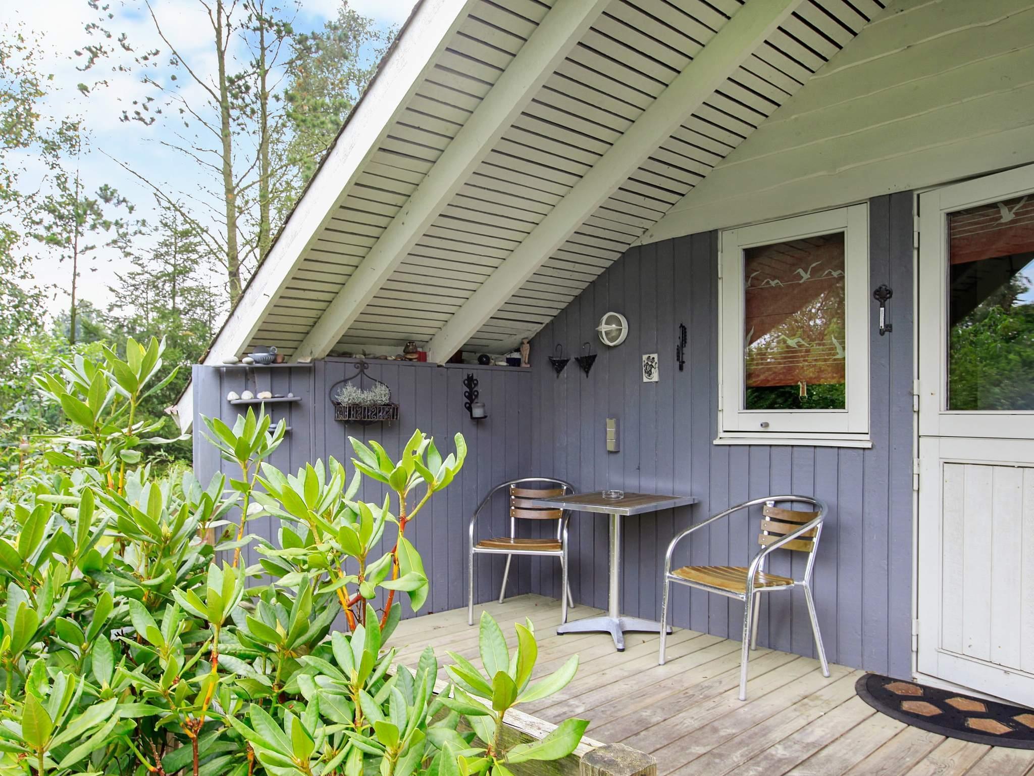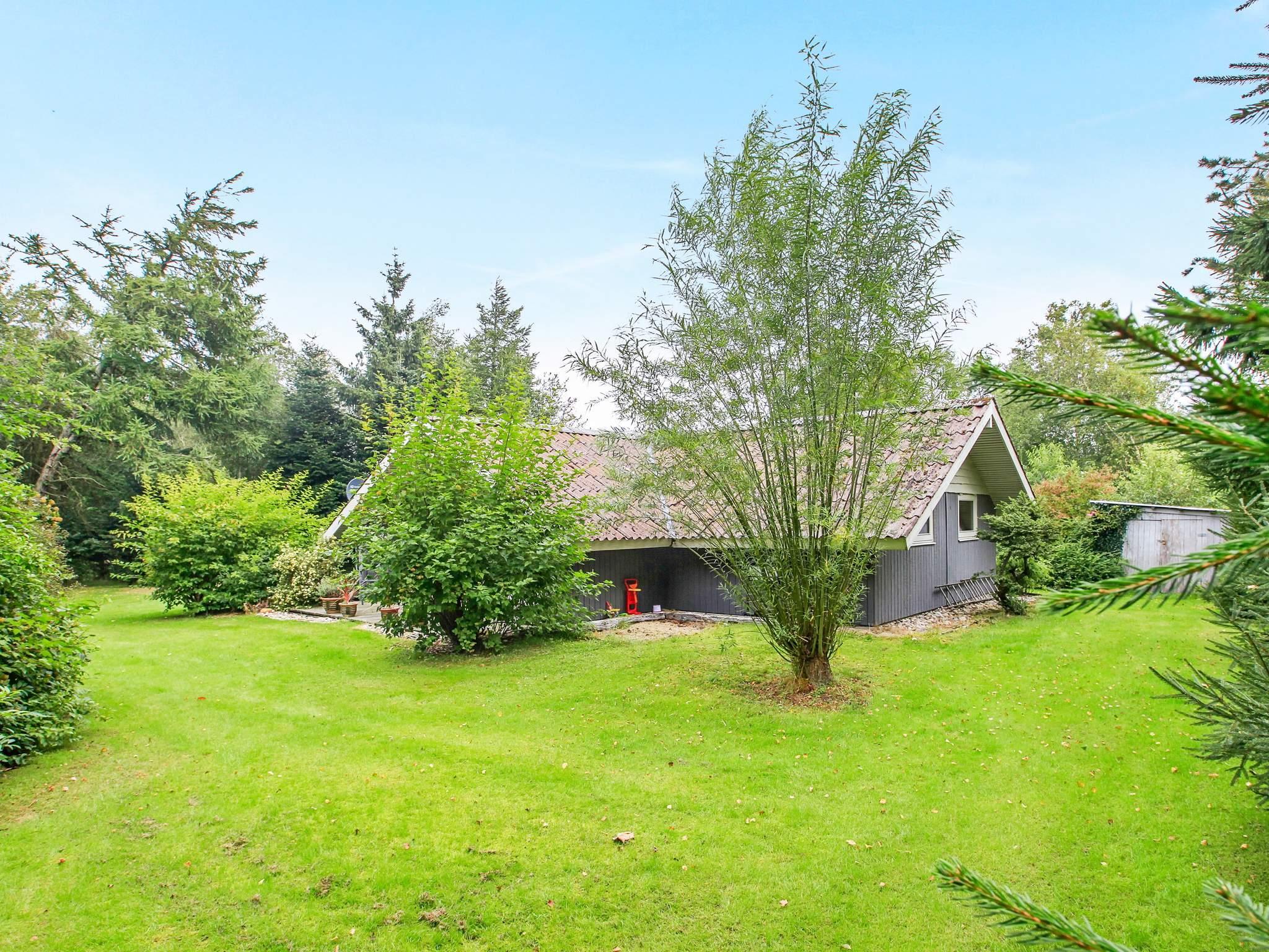 Rummeligt sommerhus roligt beliggende på en stor grund for enden af lukket vej. Indrettet med hyggelig møblement. Der er rummelig opholds- og spisestue i åben forbindelse med køkkenet og med et stort, vestvendt vinduesparti med udsigt til den omkringliggende natur. I opholdstuen finder I bl.a. brændeovn, stereoanlæg med cd-afspiller og Bluetooth samt tv. Foruden badeværelset, hvor I også finder vaskemaskinen, er sommerhuset indrettet med tre soveværelser. Både øst- og vestvendte terrasser som er overdækkede.