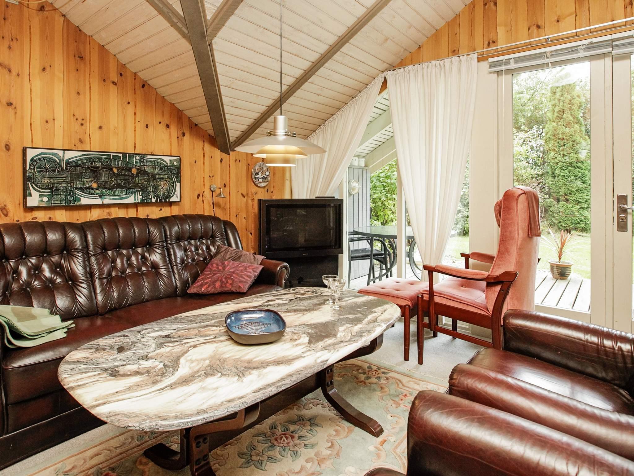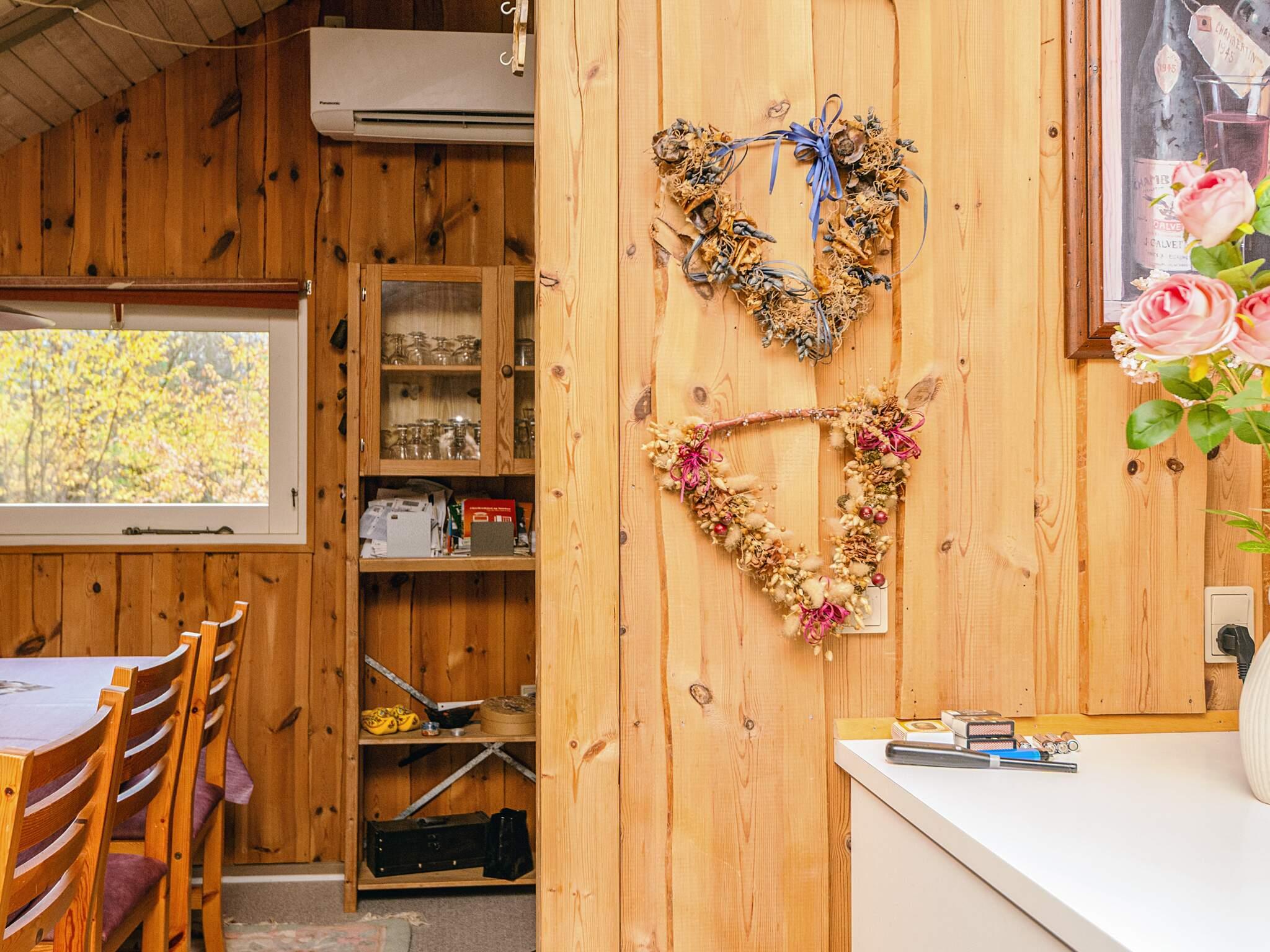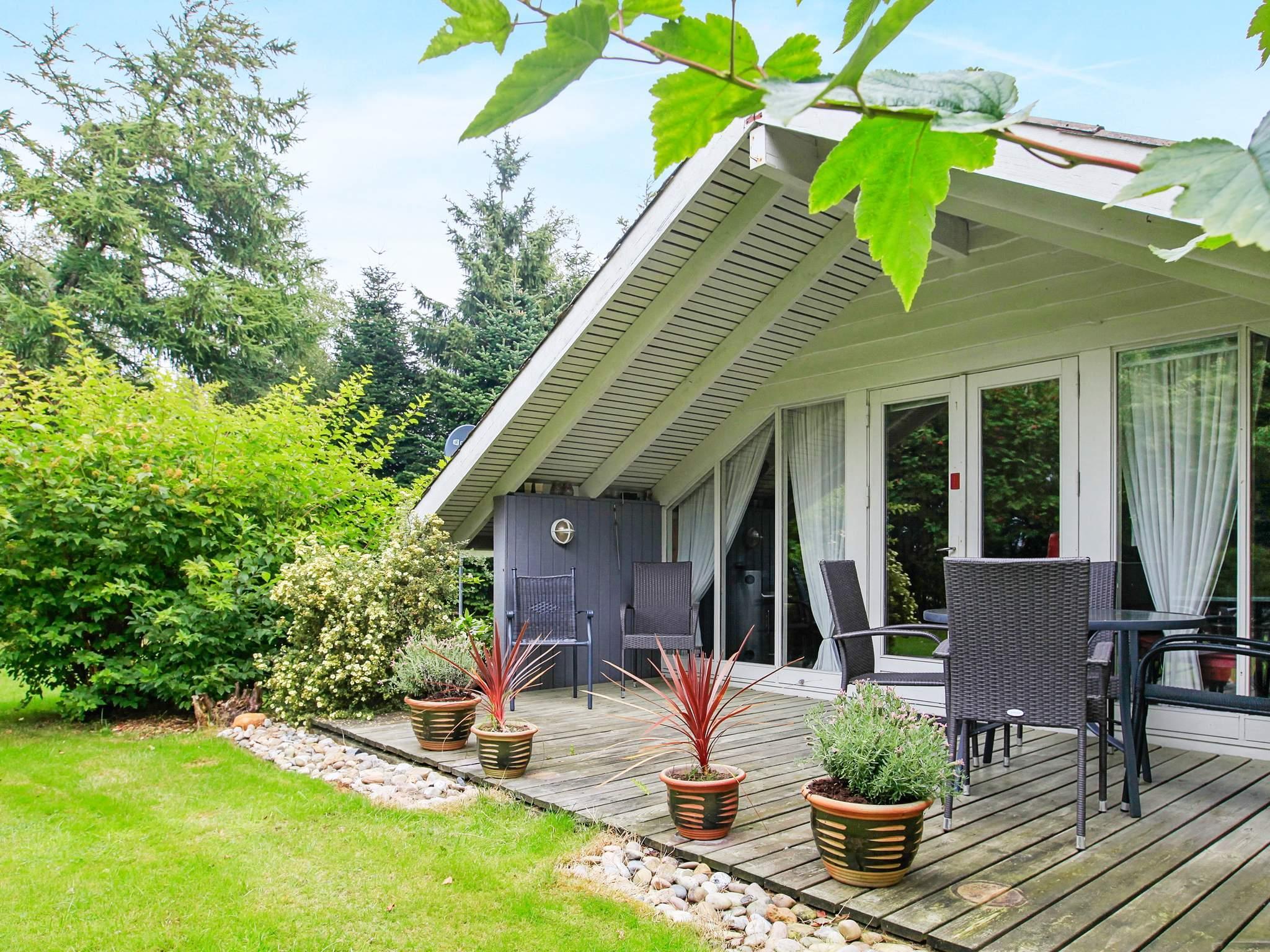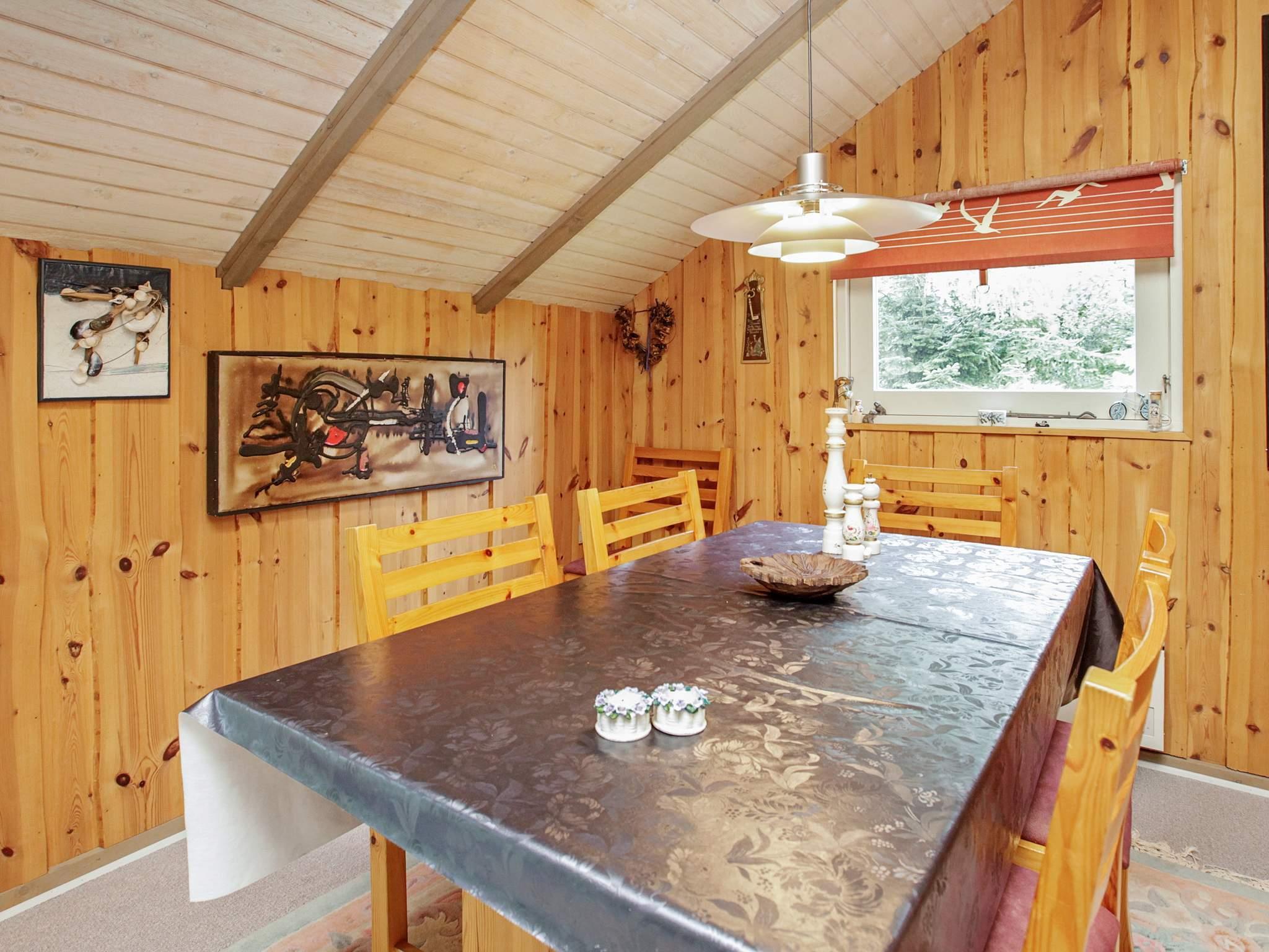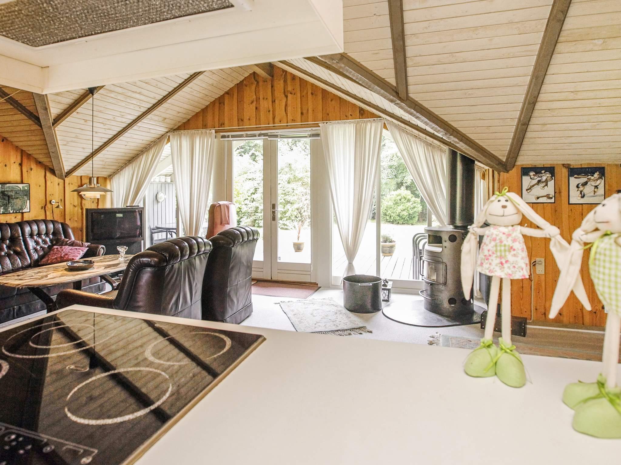 Rummeligt sommerhus roligt beliggende på en stor grund for enden af lukket vej. Indrettet med hyggelig møblement. Der er rummelig opholds- og spisestue i åben forbindelse med køkkenet og med et stort, vestvendt vinduesparti med udsigt til den omkringliggende natur. I opholdstuen finder I bl.a. brændeovn, stereoanlæg med cd-afspiller og Bluetooth samt tv. Foruden badeværelset, hvor I også finder vaskemaskinen, er sommerhuset indrettet med tre soveværelser. Både øst- og vestvendte terrasser som er overdækkede.