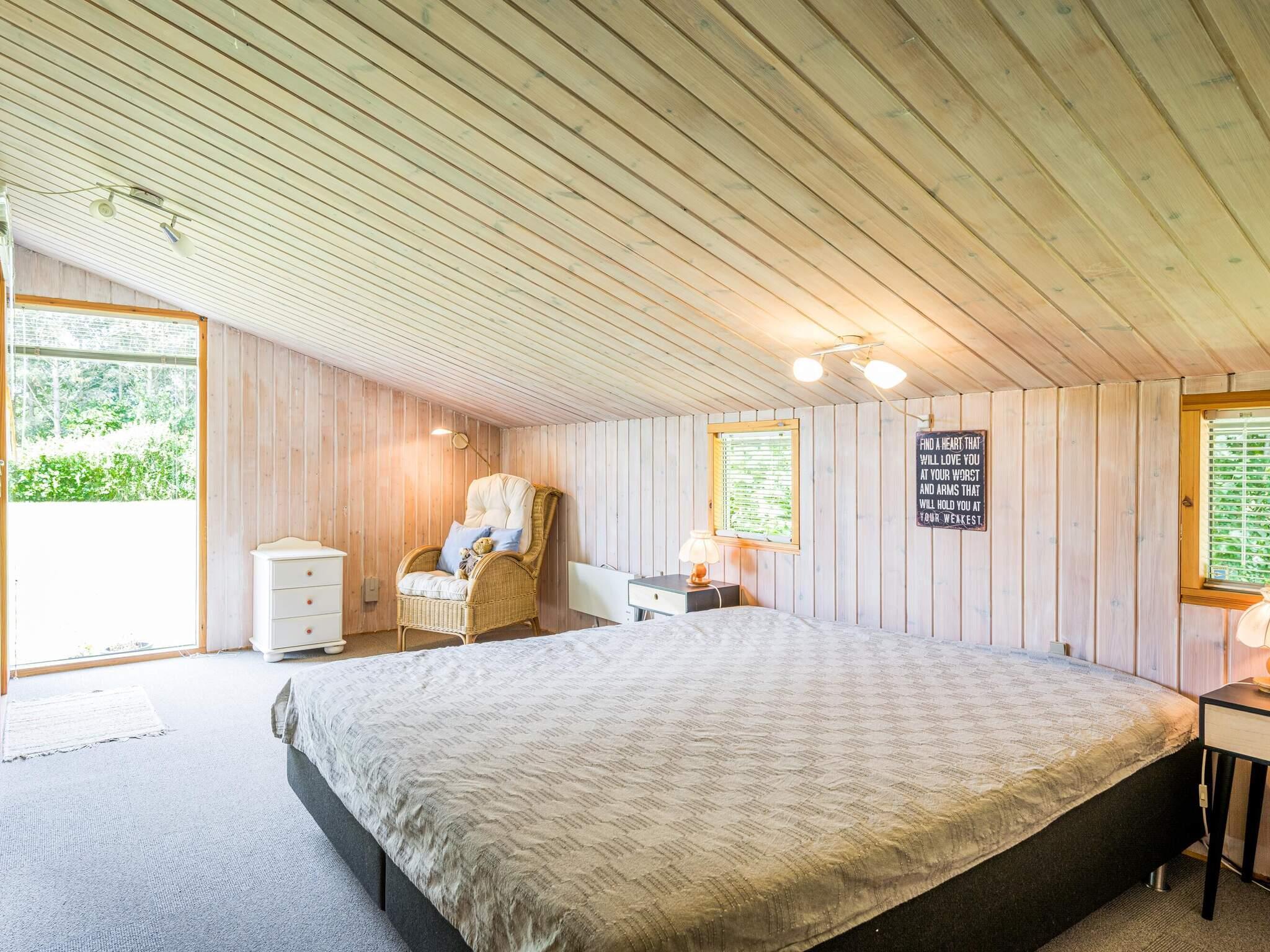 Indenfor fungerer en rummelig opholds- og spiseplads som hjemmets hjerte. En brændeovn tilføjer varme og charme på køligere dage og skaber en indbydende atmosfære til måltider, læsning eller familiesammenkomster. Store vinduespartier og udgang til den overdækkede terrasse tillader naturligt lys at fylde rummet og skabe en sømløs forbindelse til det fri.