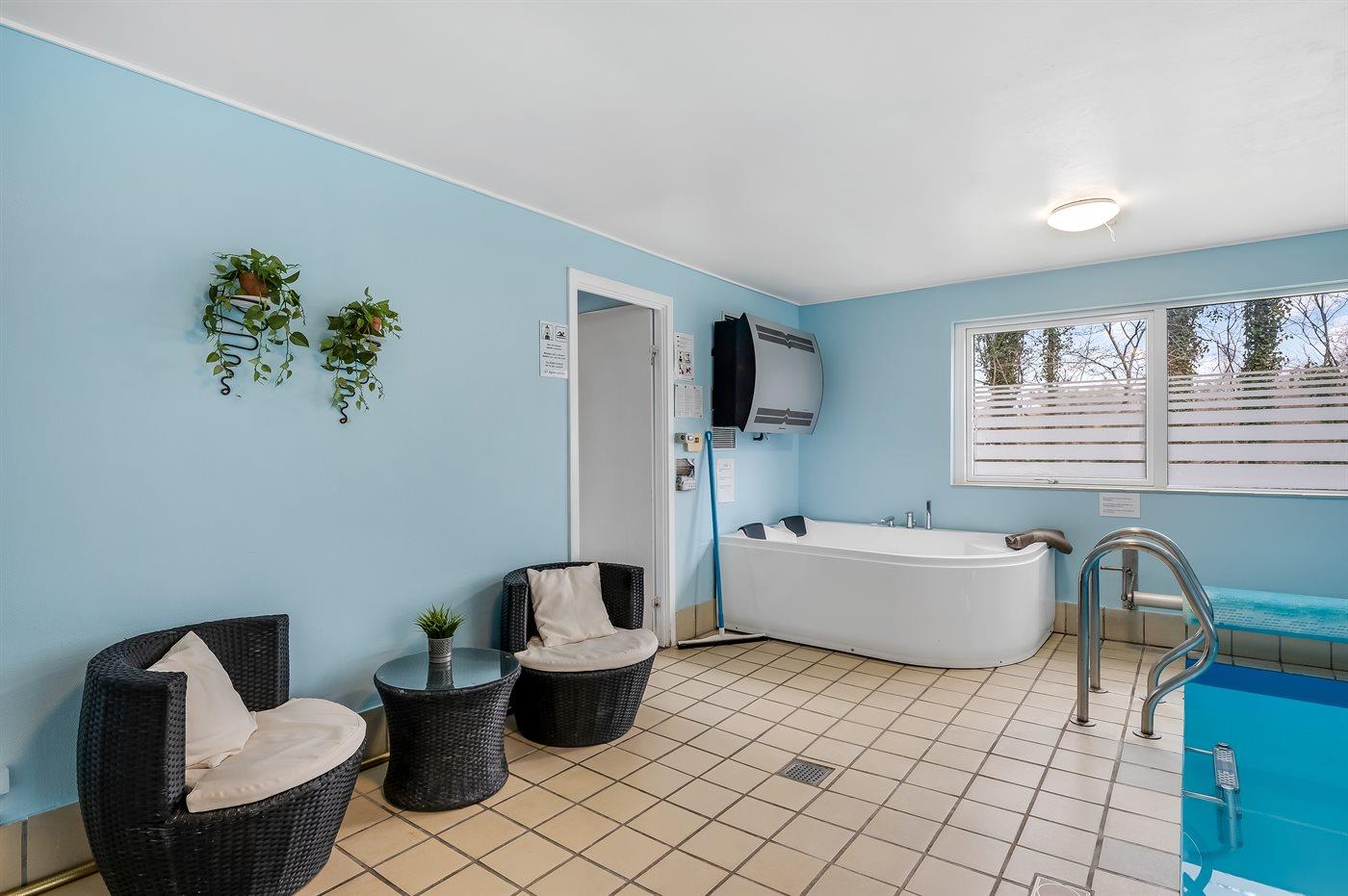 Et sommerhus med en central beliggenhed og en god swimmingpoolafdeling, hvor I kan boltre jer i poolen og slappe af i spaen såvel som i saunaen.
