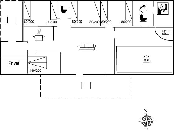 Der er 1 badeværelse med bruseniche og 2 toiletter, heraf 1 gæstetoilet. Der er gulvvarme på 1 badeværelse. Der er gulvvarme på gæstetoilettet. I saunaen er der mulighed for afslapning.