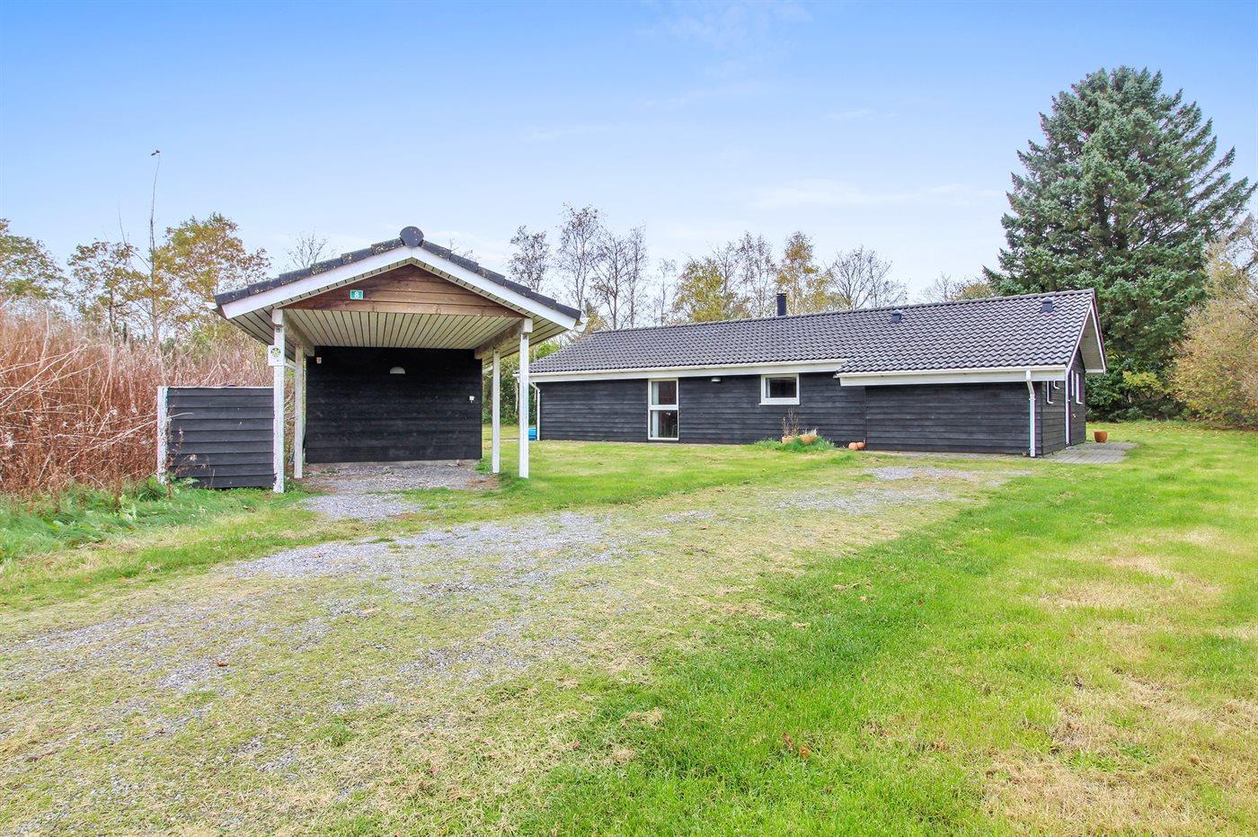 Ferieboligen er beliggende på en 1680 m² stor naturgrund. Der er 12000 m til havet. Nærmeste forretning er beliggende i en afstand af 750 m. Til ferieboligen hører 7 m² terrasseareal. Desuden er der 7 m² overdækket terrasse. Gynge. Sandkasse. Der er carport til rådighed. Parkering ved ferieboligen.