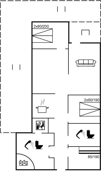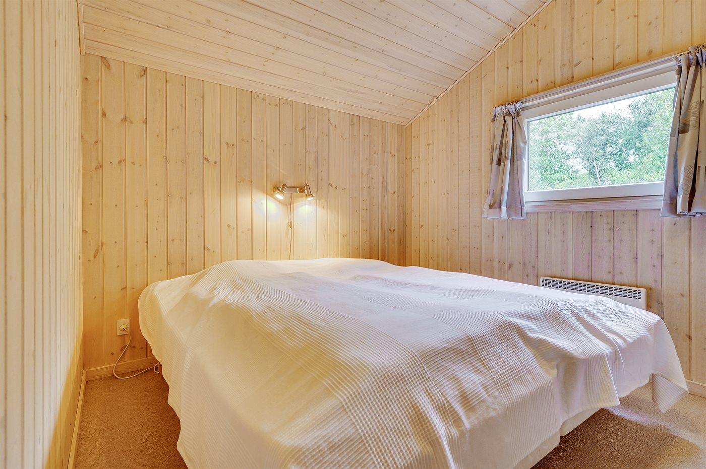 Der er i alt 3 soveværelser. Sovepladserne fordeler sig på: 4 sovepladser i dobbeltsenge. 2 sovepladser i køjeseng. Derudover er der 1 stk. barneseng.