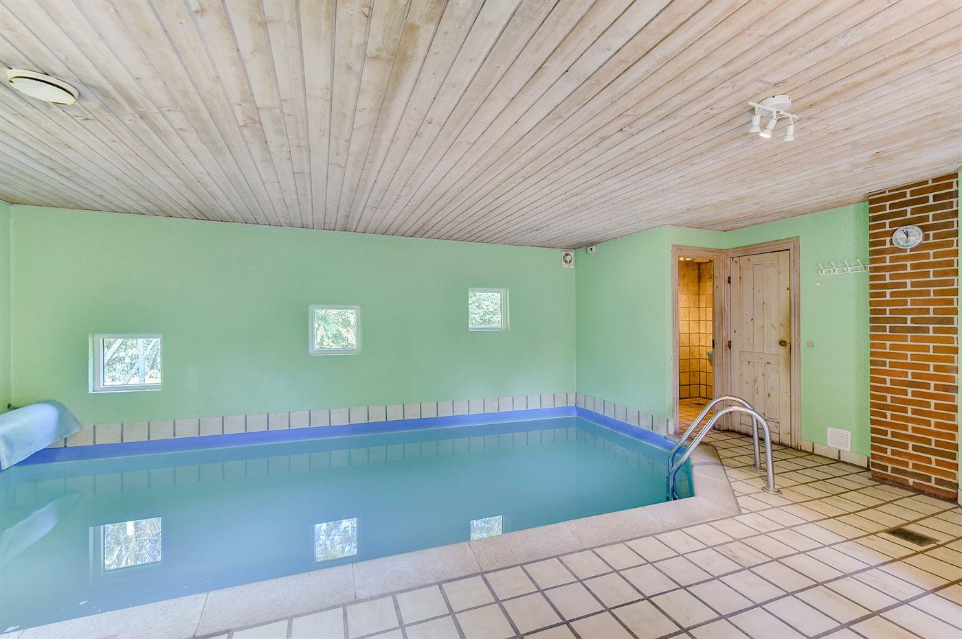 Dette dejlige feriehus på 182 m², er bygget af sten i 1993, på en 1830 m² stor naturgrund. Det er et attraktivt feriehus, som kan rumme flere familier, og kan anvendes på alle årstider. Huset er i 2005 delvis moderniseret, og indeholder, sauna og spa til 2 personer, samt indendørs swimmingpool (6,0 x 3,0 x 1,3), hvor vandet normalt er mellem 24 og 28° grader varmt. Der er gulvvarme på begge badeværelser, i poolafdelingen, i stuen/køkkenet samt i bryggerset.