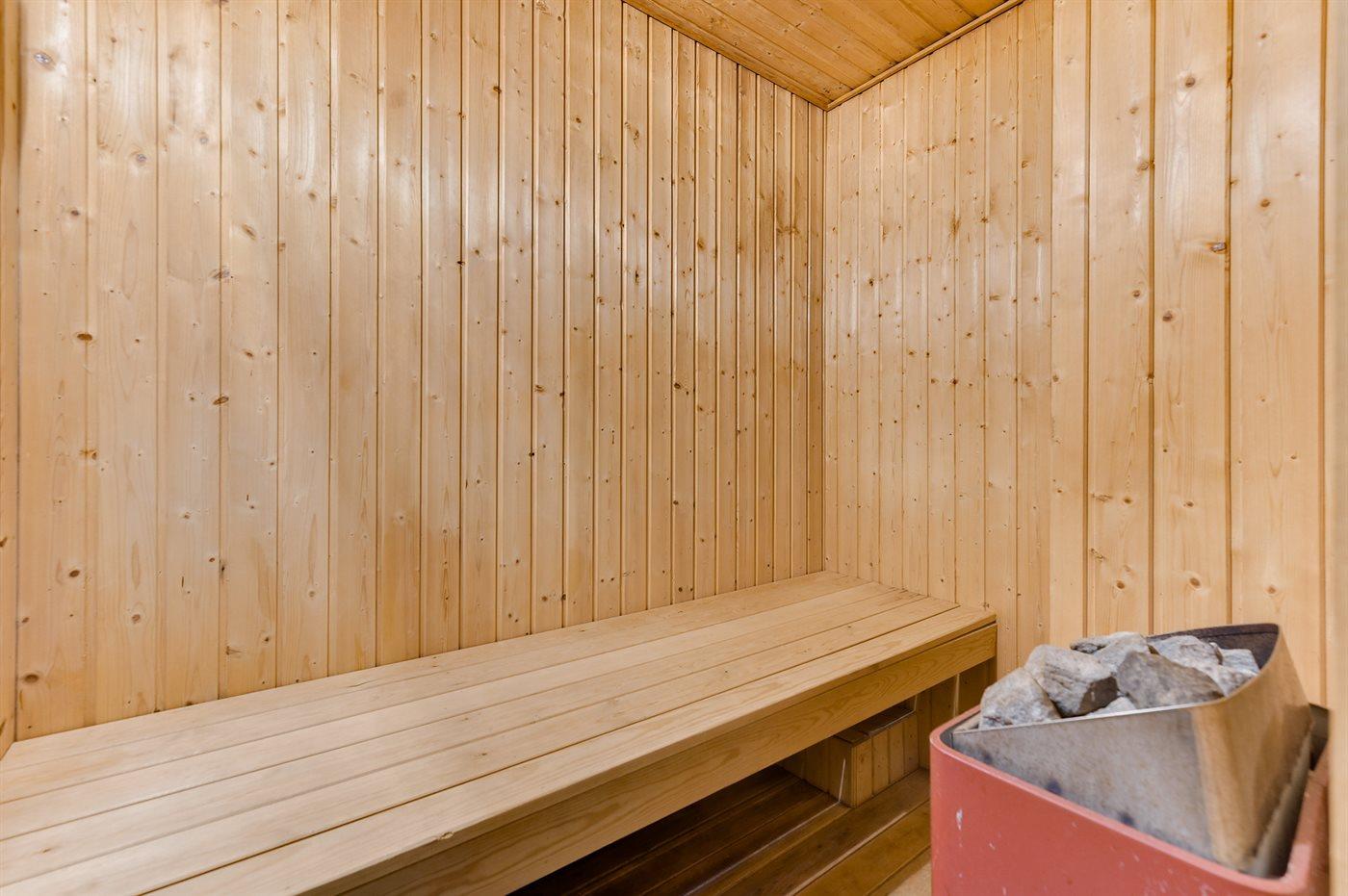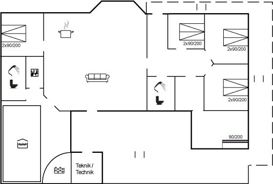 Feriehuset er bl.a. udstyret med motionscykel, vaskemaskine, tørretumbler, opvaskemaskine, køleskab, indbygningsovn med varmluft, 4 keramiske kogeplader, mikrobølgeovn, kaffemaskine samt vandkoger mv. Der er to badeværelser, og begge er med bruseniche og WC. I det ene badeværelse findes der desuden Sensorstyret håndtørrer.