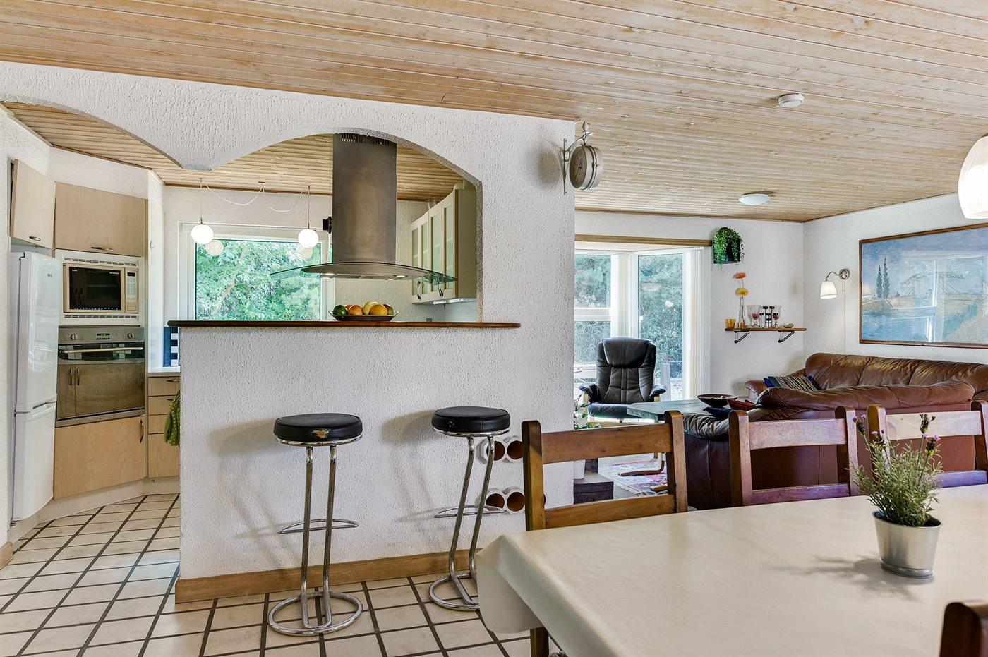 Feriehuset har henholdsvis en 25 m2 åben, og en 25 m² lukket terrasse. Der er i alt 5 soveværelser, hvor sovepladserne fordeler sig på: 8 sovepladser i dobbeltsenge og 2 sovepladser i køjeseng. Derudover er der 1 stk. barneseng til rådighed. Huset er egnet til 10 personer over 3 år samt 1 barn op til 3 år. Der er en barnestol i huset. Det er tilladt at medbringe 2 husdyr.