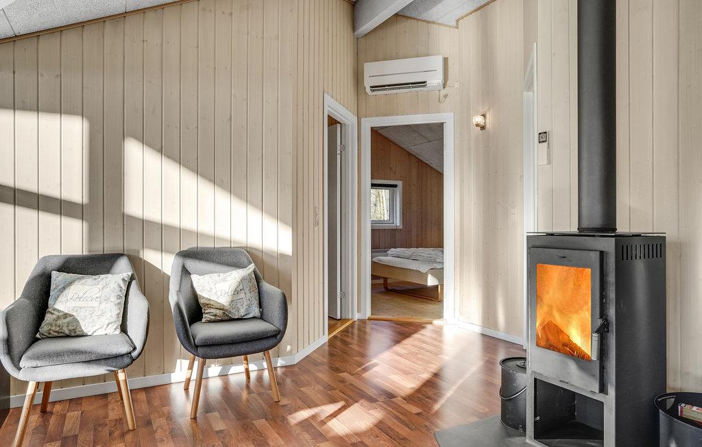 Hyggeligt feriehus i Jegum Ferieland med sauna, spabad, brændeovn og carport tæt på aktiviteter og strand.