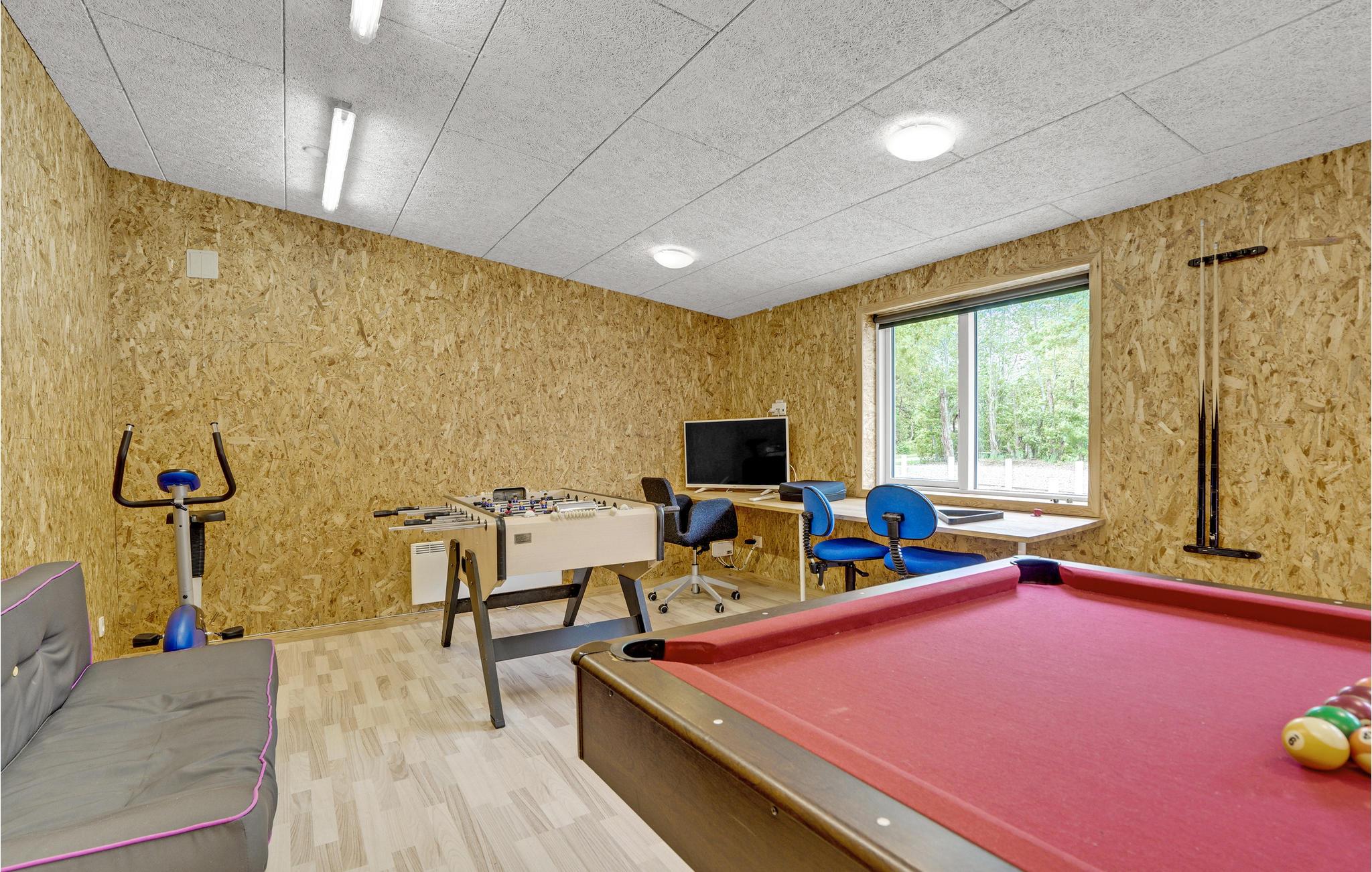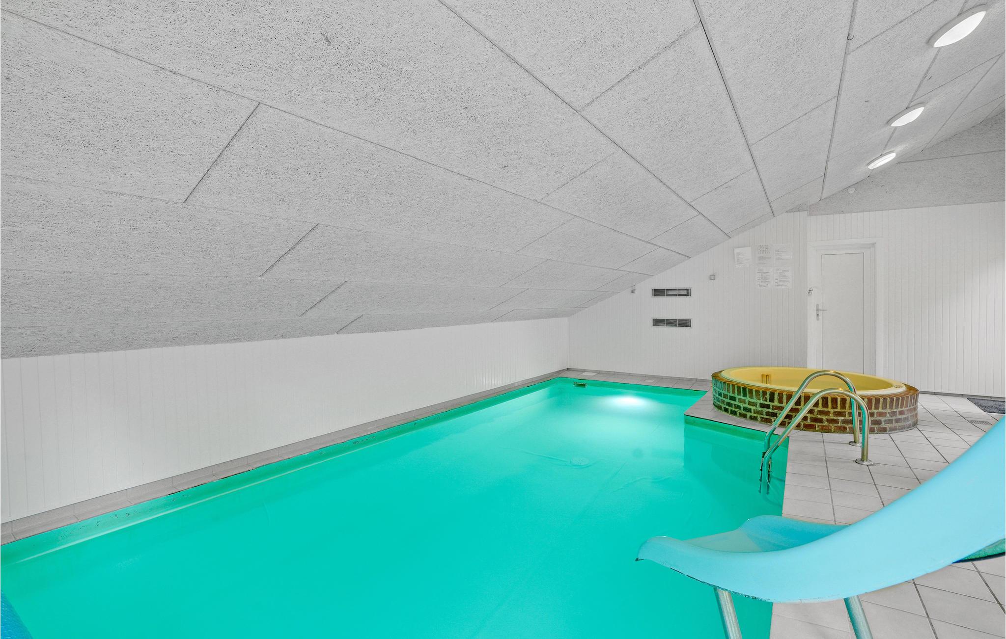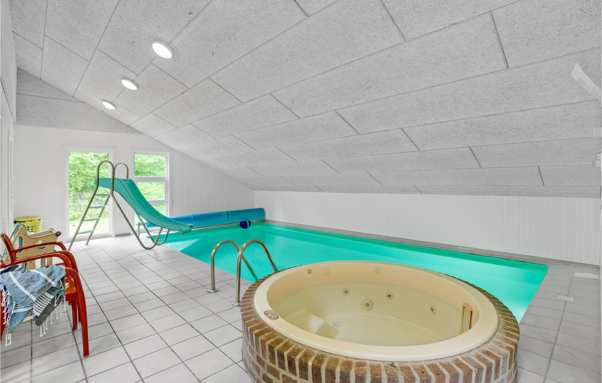 Flot børnevenligt feriehus nær aktiviteter med pool, sauna, spabad, aktivitetshus og naturgrund i Oksbøl.