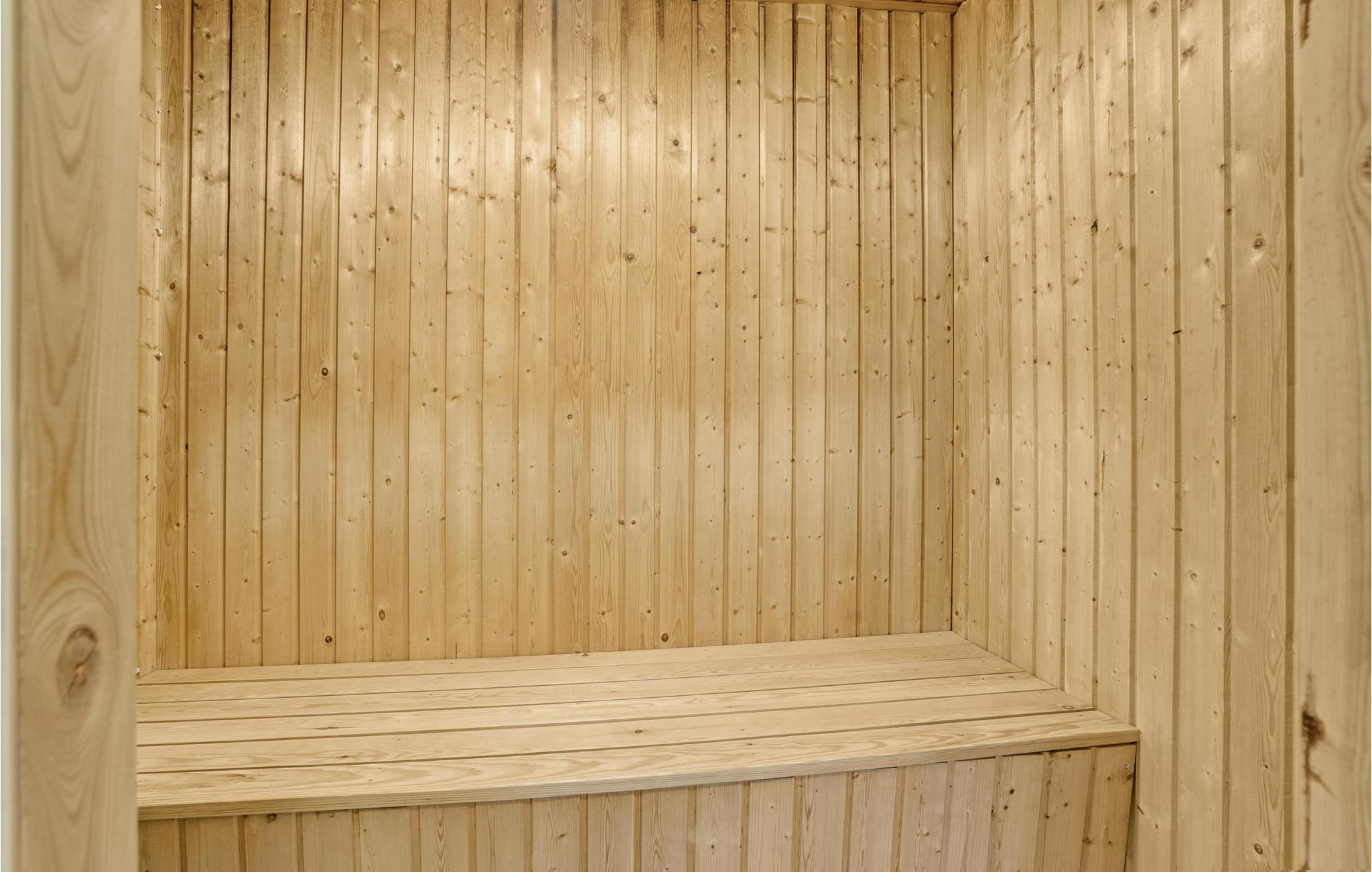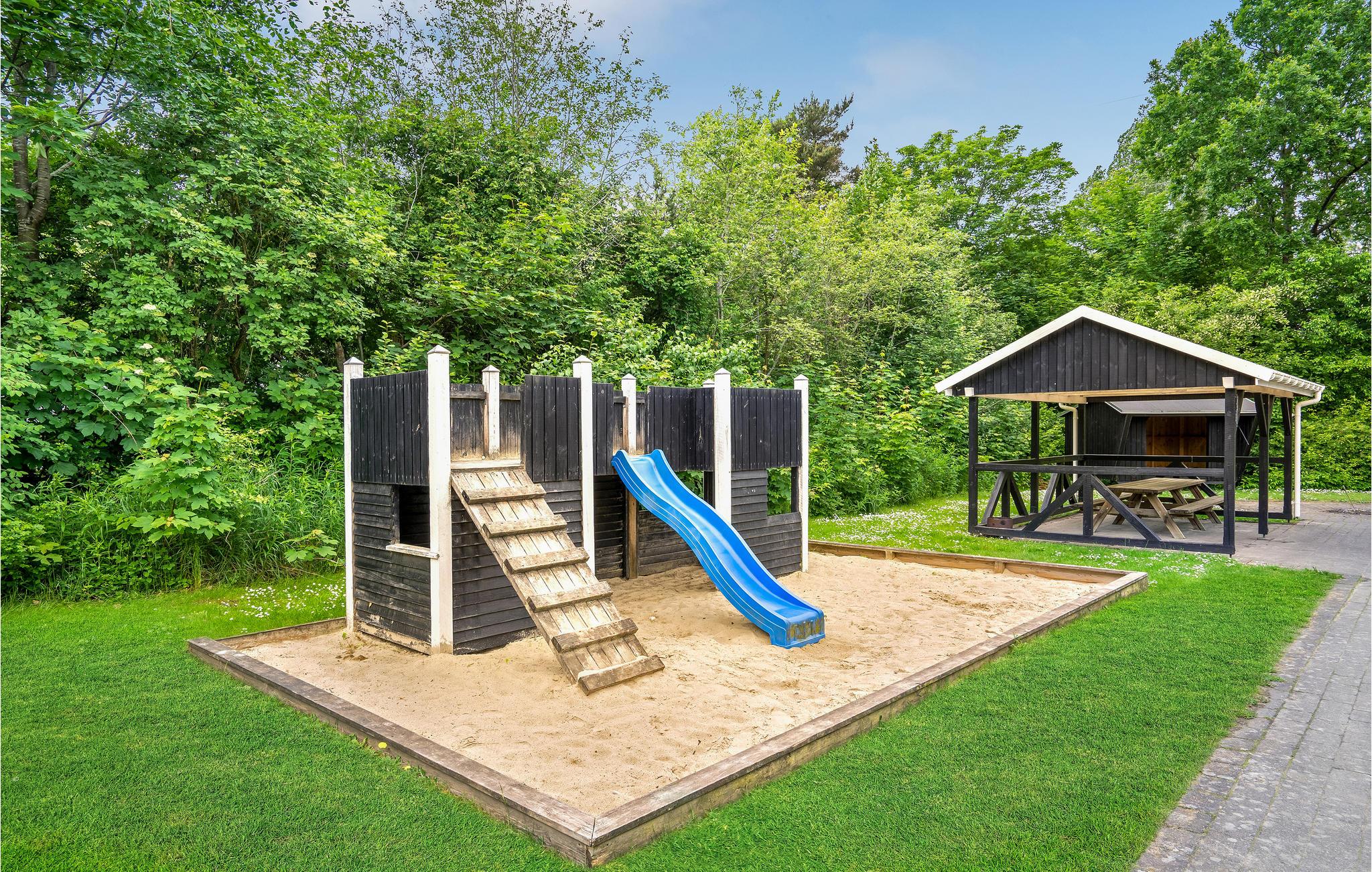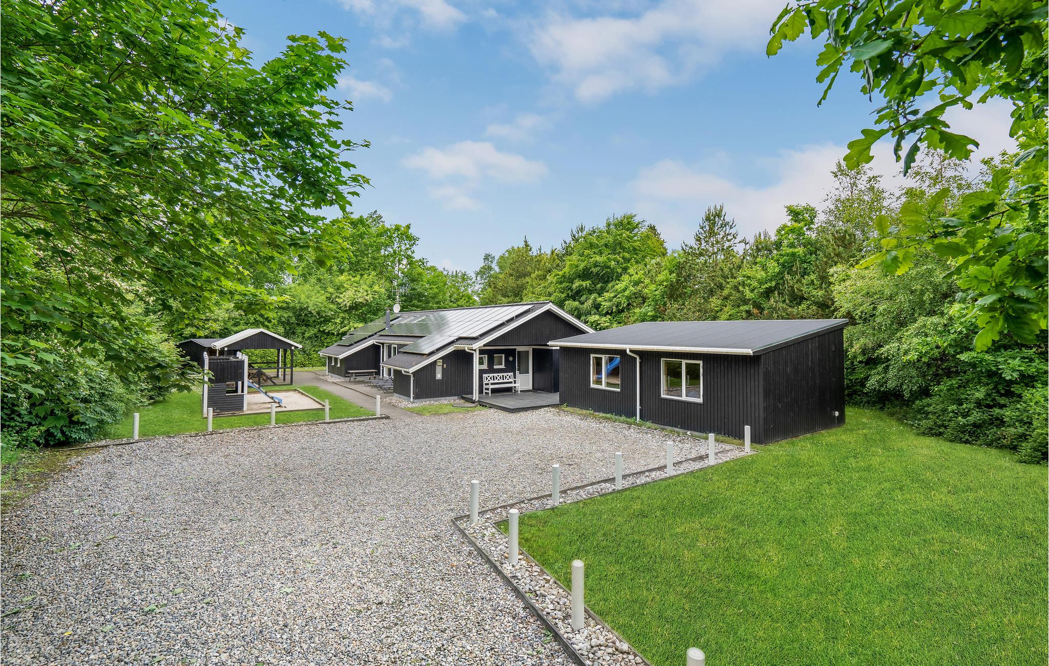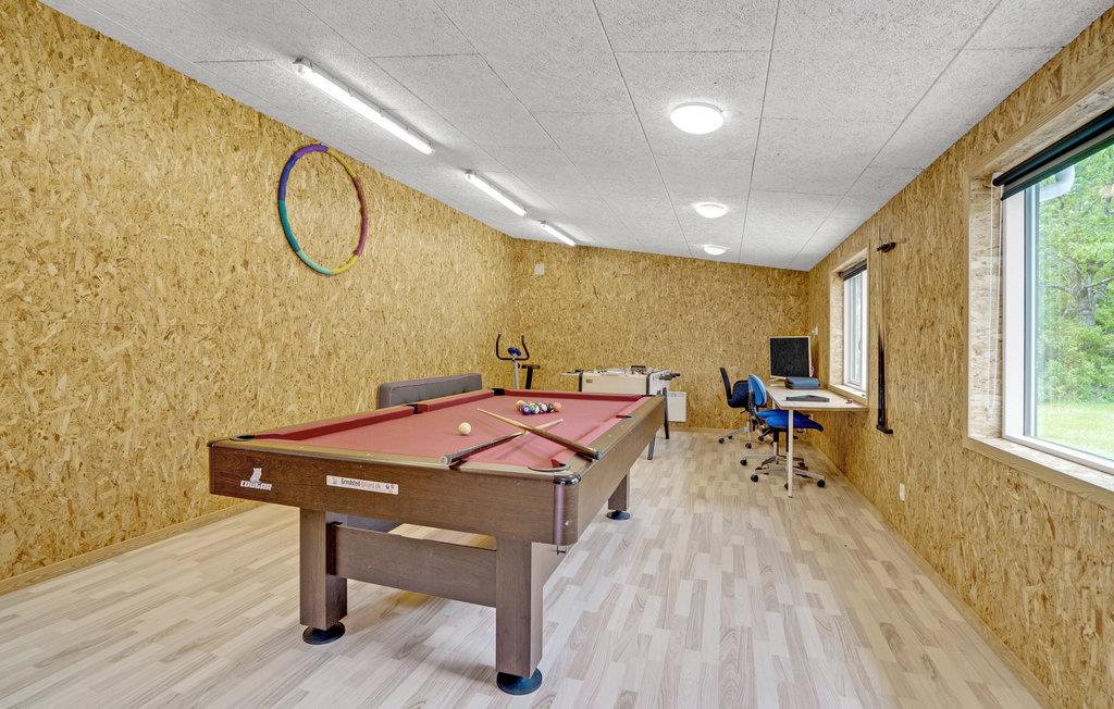 Flot børnevenligt feriehus nær aktiviteter med pool, sauna, spabad, aktivitetshus og naturgrund i Oksbøl.