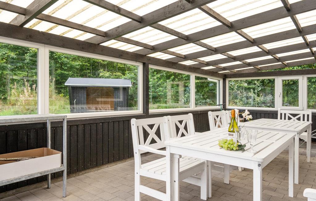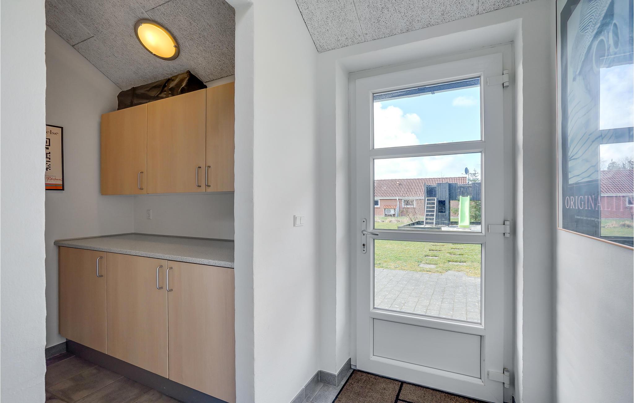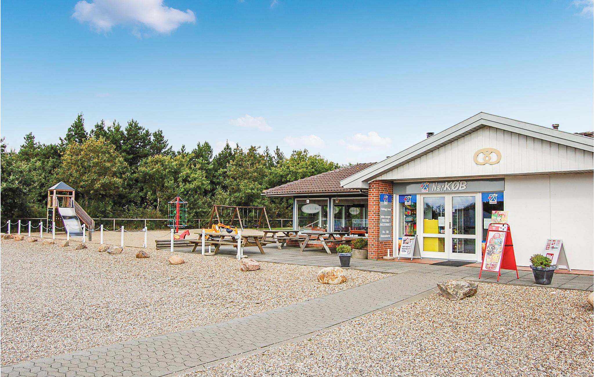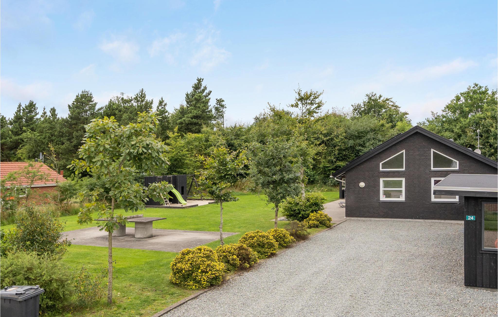 Feriehuset er praktisk indrettet med et større køkken/alrum med klinkegulv og gulvvarme samt udgang til en stor terrasse med et overdækket grillområde. Huset er opført i gode kvalitetsmaterialer og opvarmes med jordvarme. Der er et aktivitetsrum på 40 m2, med it arbejdsplads, internet, sofa, airhockey, ekstra TV samt bordfodboldbord, så der er mulighed for både underholdning og hjemmearbejde under jeres ophold. På grunden er der shelter, bålfad, legeborg med rutchebane, udendørs bordtennis og trampolin.