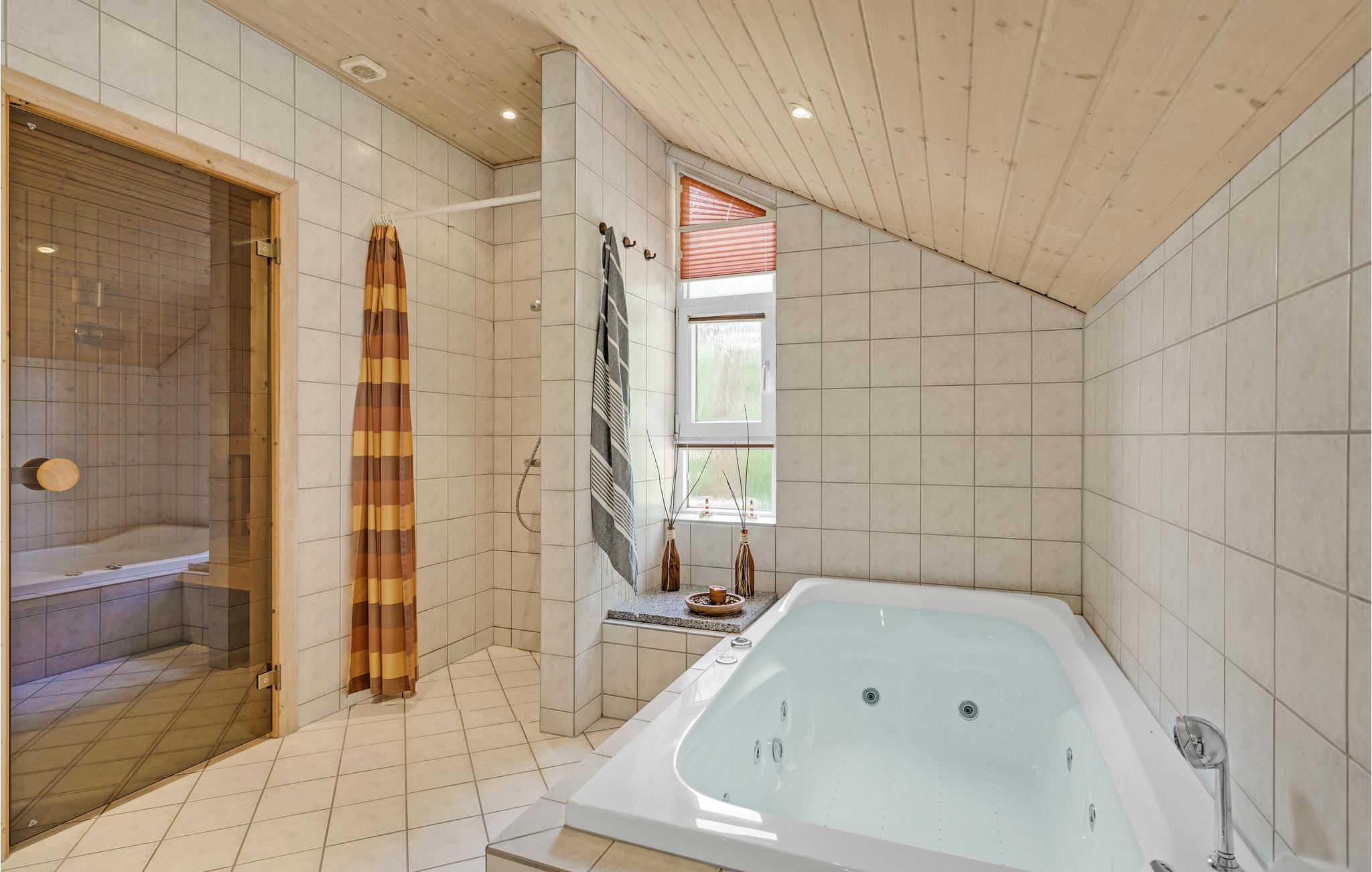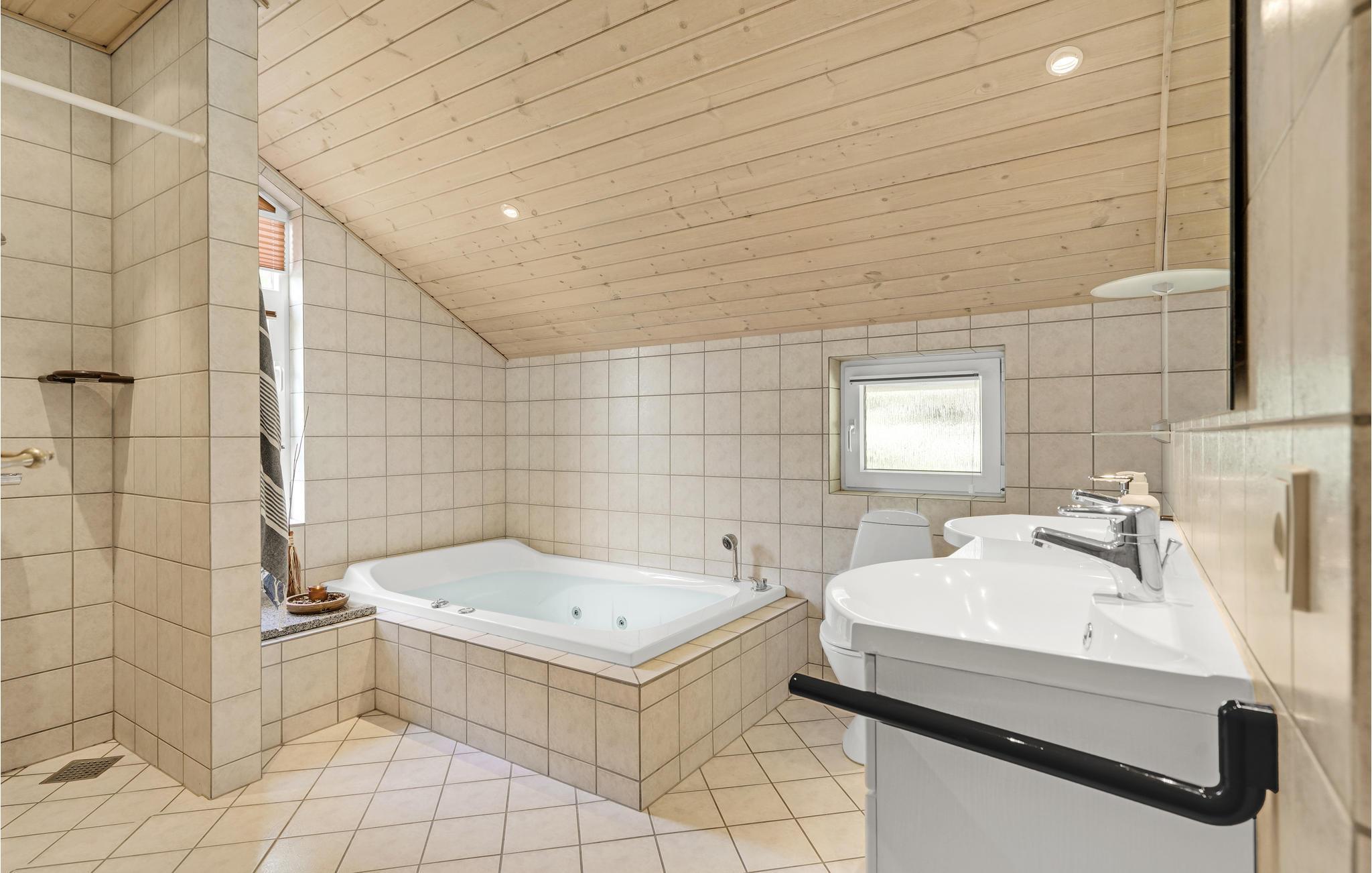 Hold en hyggelig ferie med venner og familie i dette skønne sommerhus ved Jegum Ferieland. Huset er komfortabelt indrettet og byder på mange hyggelige hjørner, hvor man kan slappe af og dase, men også sidde sammen med familien i en hyggelig atmosfære. På terrassen kan I spise morgenmad i den friske luft eller arrangere en grillmiddag. Saunaen og spabadet sørger for ekstra forkælelse.