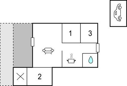 Soveværelse (nr. 2) - 2 Sovepladser. (Sofa, madras eller lignende).