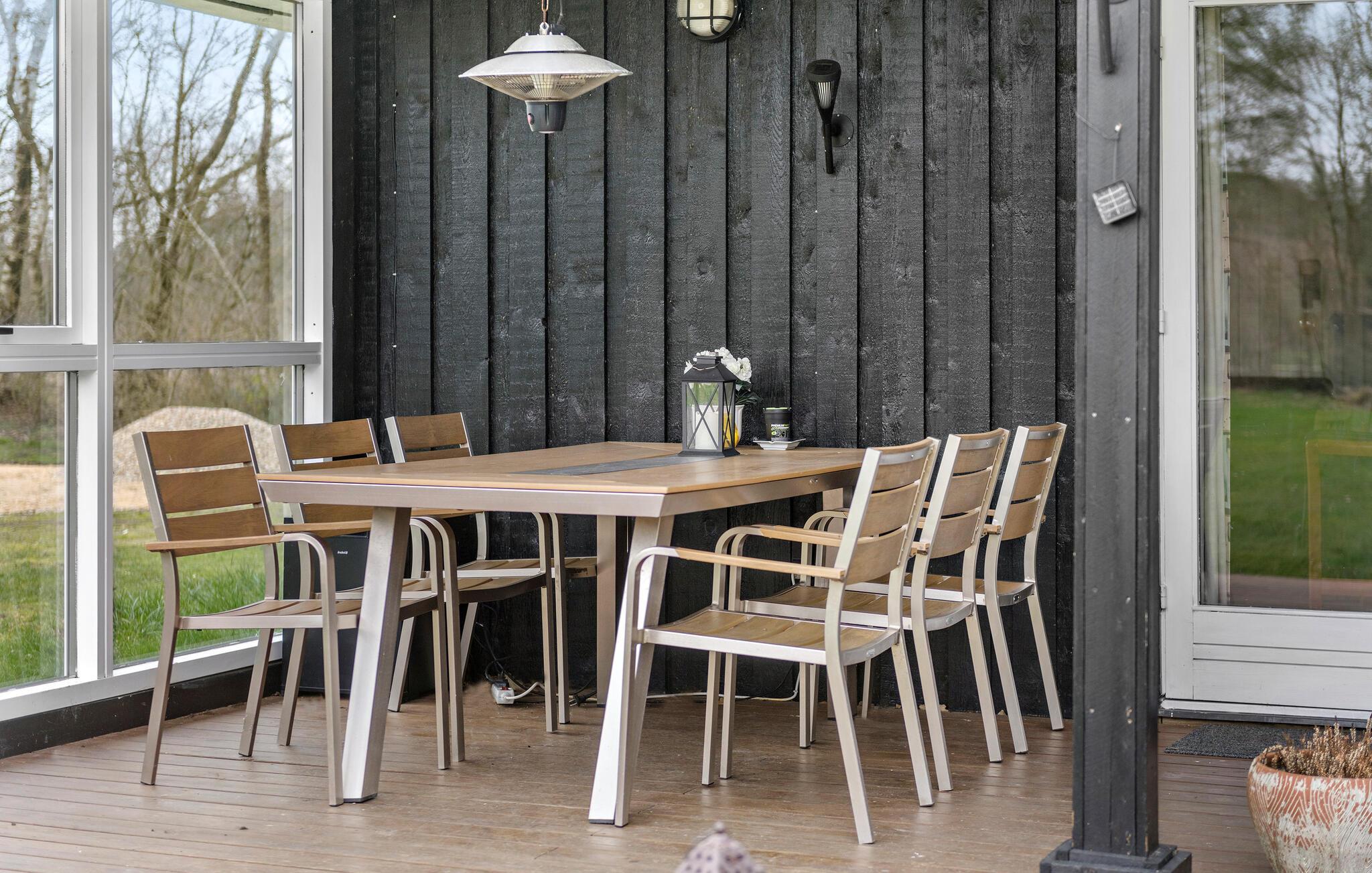 Udeområdet er tilsvarende dejligt. Til huset hører nemlig flere terrasser, hvor I kan finde sol, skygge og læ efter behov og nyde en god kop kaffe, en god bog eller sysle med strikketøjet. For børnene er der masser af plads at boltre sig på i haven, og om aftenen kan I stege skumfiduser og bage snobrød ved bålpladsen, inden I lægger jer til rette i soveposerne i shelteret.