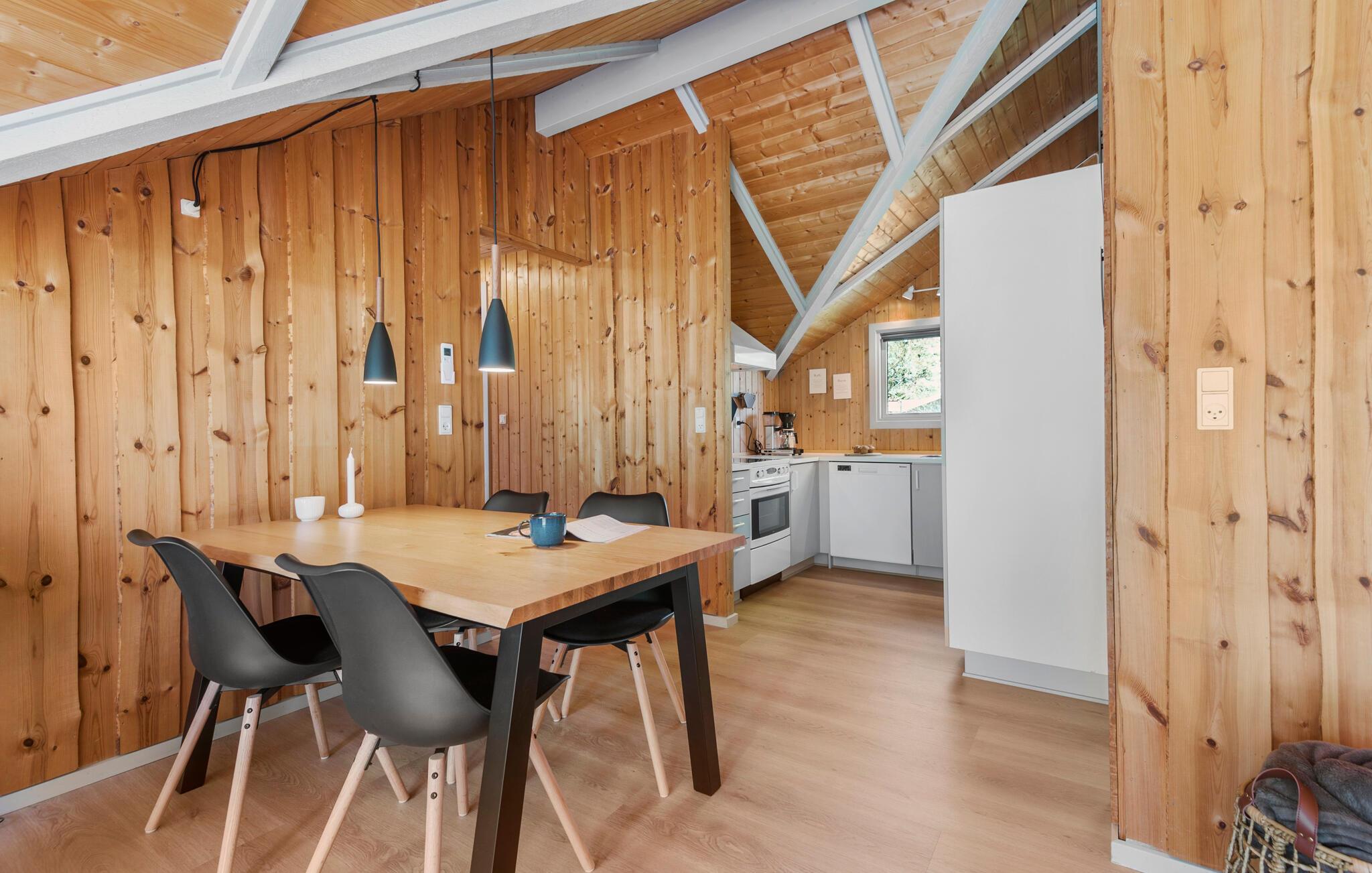 Tilbring en afslappet pause i dette hyggelige feriehus i Jegum. Inde i huset skaber det behagelige træmiljø en indbydende og varm atmosfære. Gør det behageligt i den rummelige opholdsstue, hvor den store vinduesfront fylder rummet med lys og samtidig giver udsigt til den velplejede have. Det komfortable sofahjørne, hvor der også er en pejs, indbyder til afslappende aftener ved den knitrende ild. Brug det praktisk indrettede køkken til at tilberede lækre måltider, som I derefter kan nyde i det åbne spiseområde.
