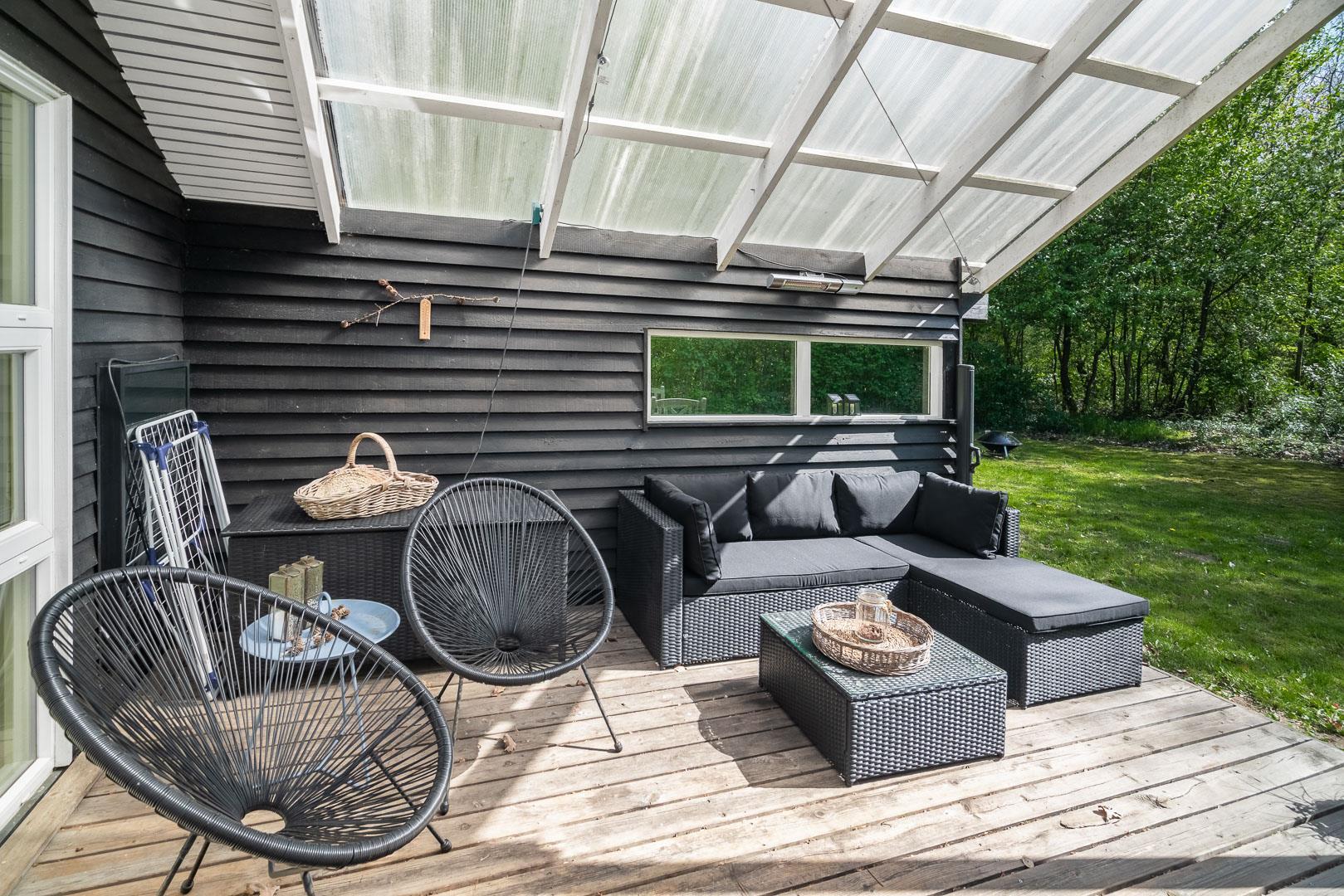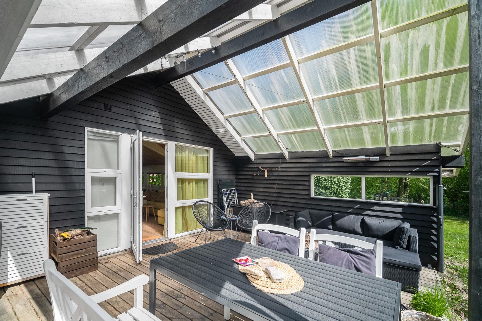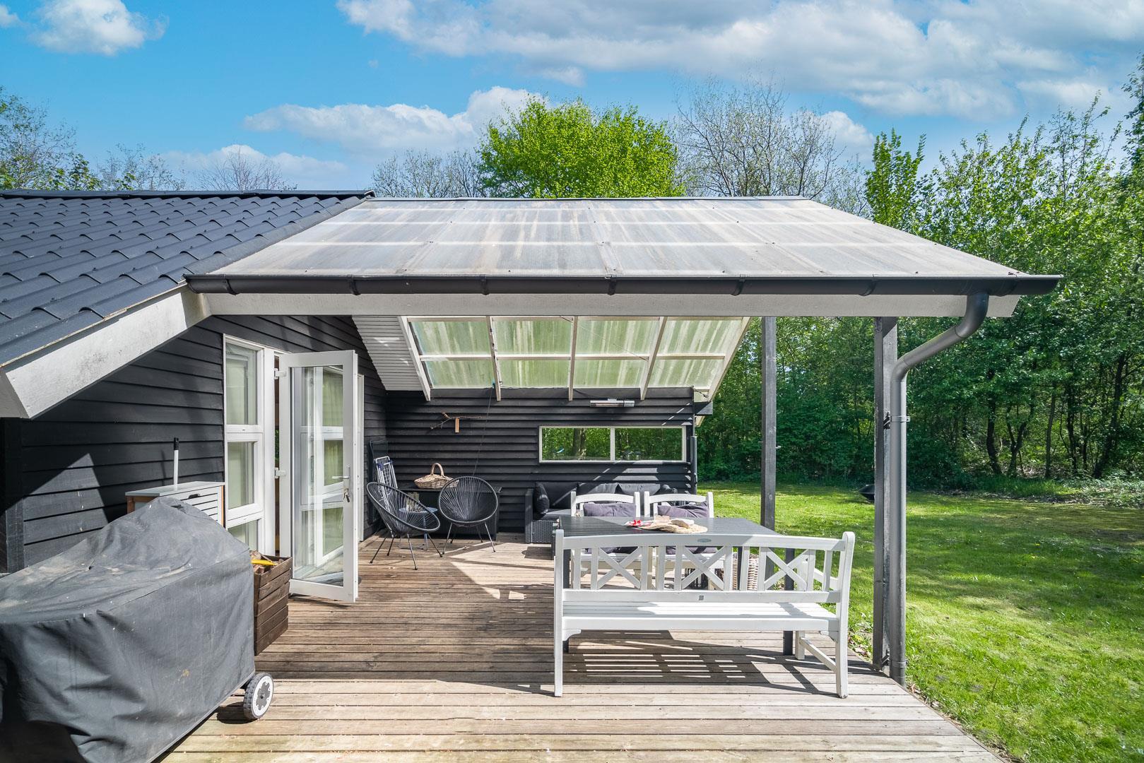 Den store naturgrund giver rig mulighed for leg, spil og afslapning. På den overdækkede terrasse kan I nyde jeres måltider udendørs – uanset vejret. Til børnene er der gynge, sandkasse og trampolin, så underholdningen er sikret.