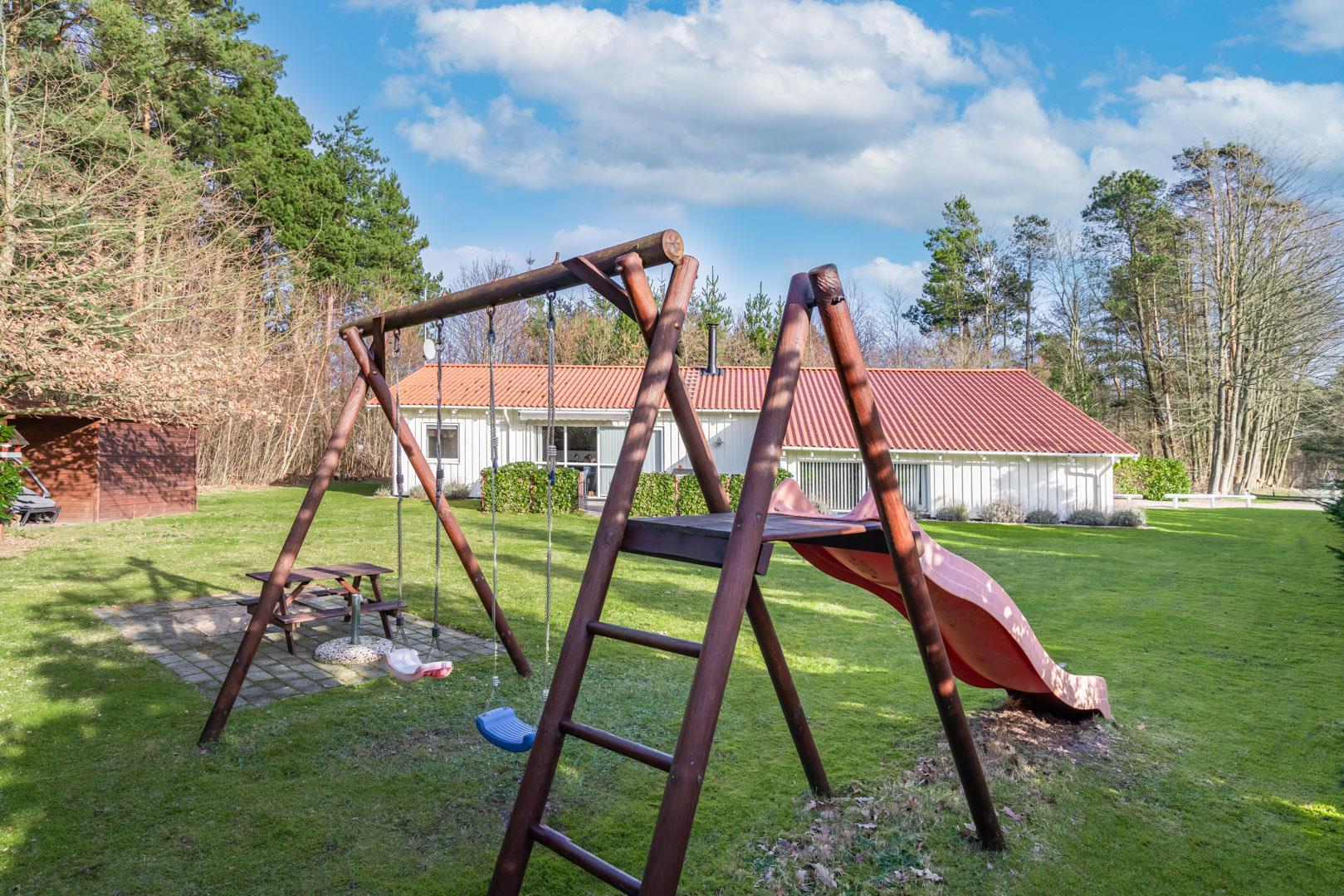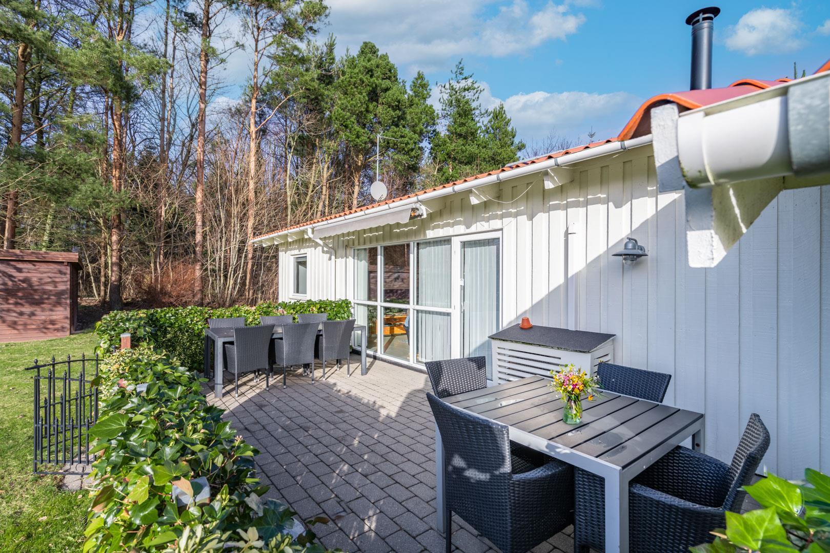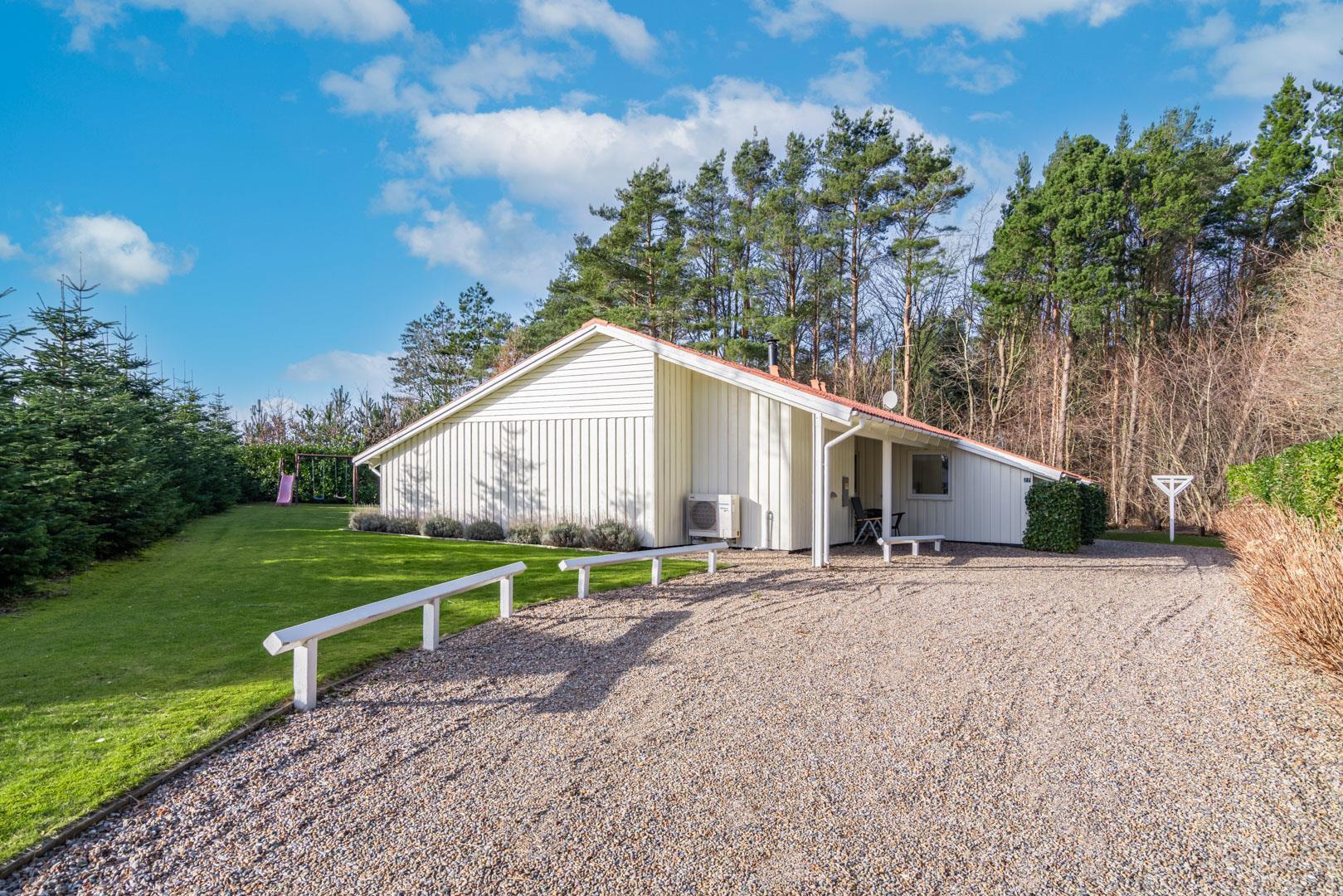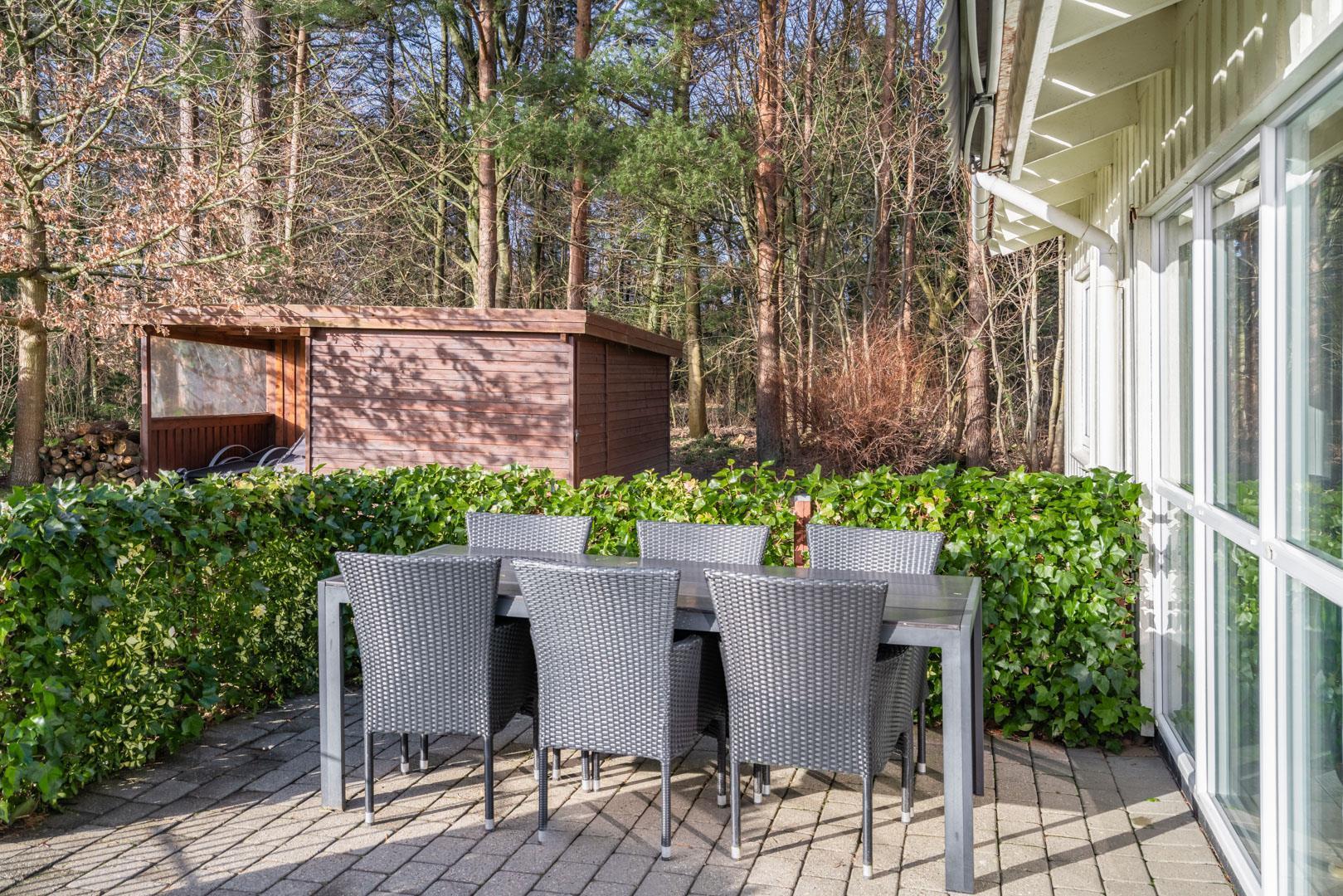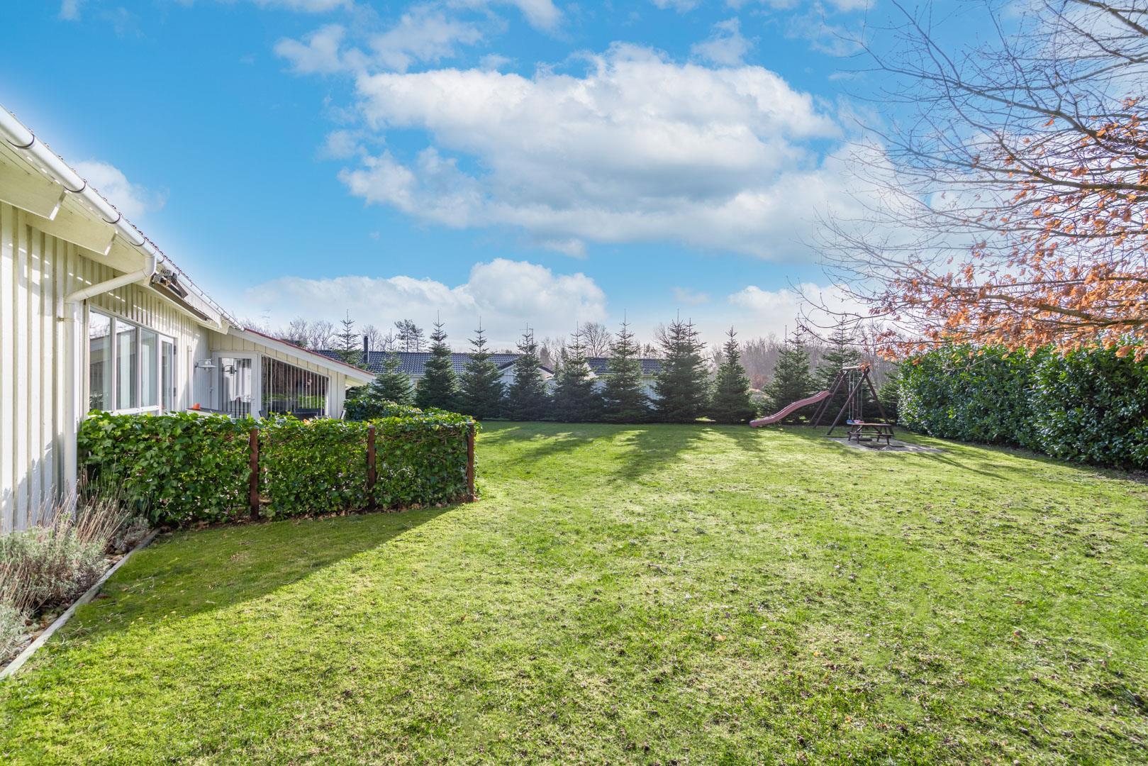 Sommerhuset er beliggende på en fredelig og børnevenlig naturgrund, hvor hele familien kan boltre sig med forskellige aktiviteter. Der er to terrasser. På den ene kan I nyde morgen- og formiddagssolen, og på den anden, eftermiddags- og aftensolen. Her er der havemøbler til 8 personer og mulighed for at grille (gas inkl.) og hygge sig til langt ud på aftenen.