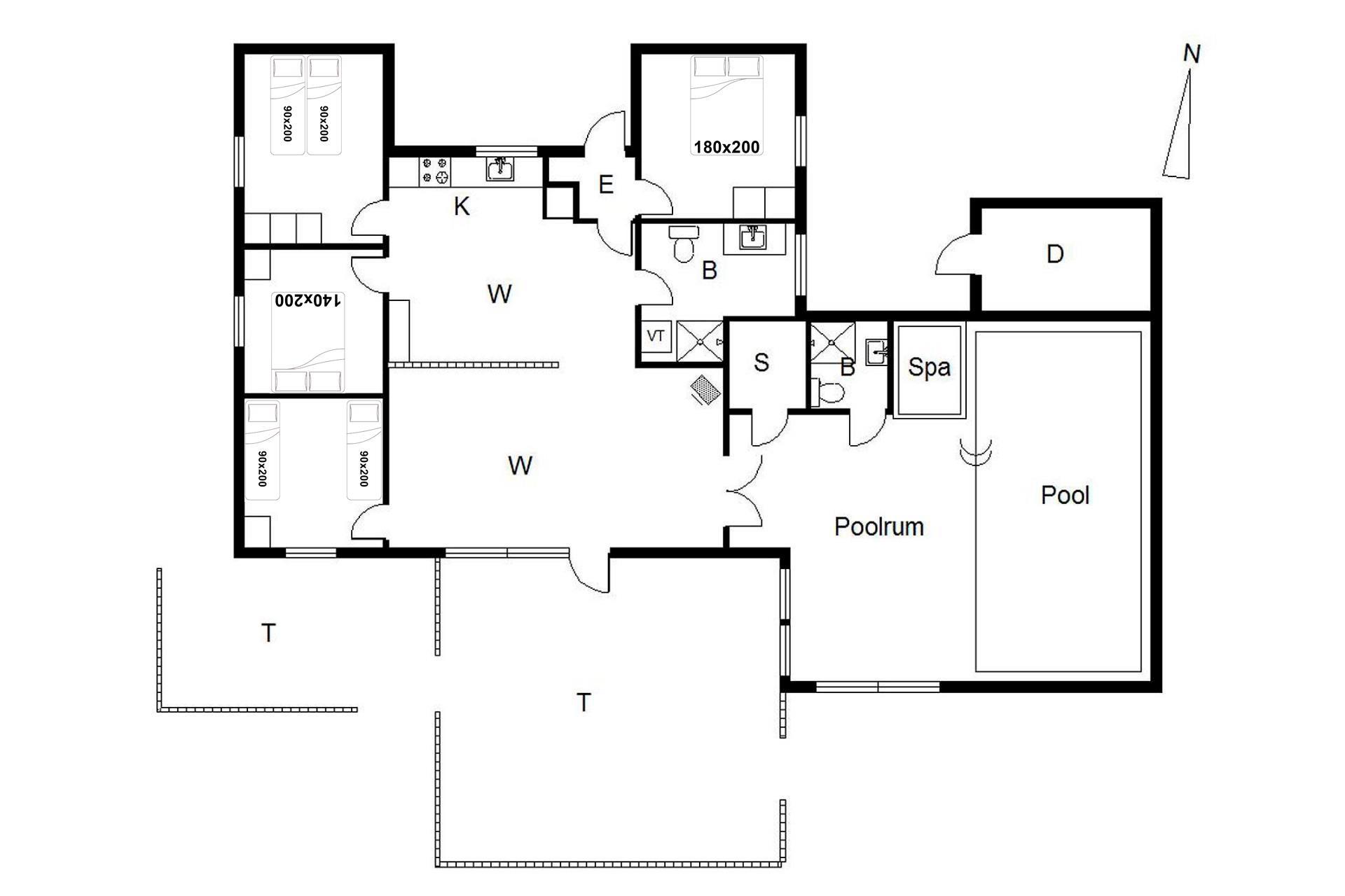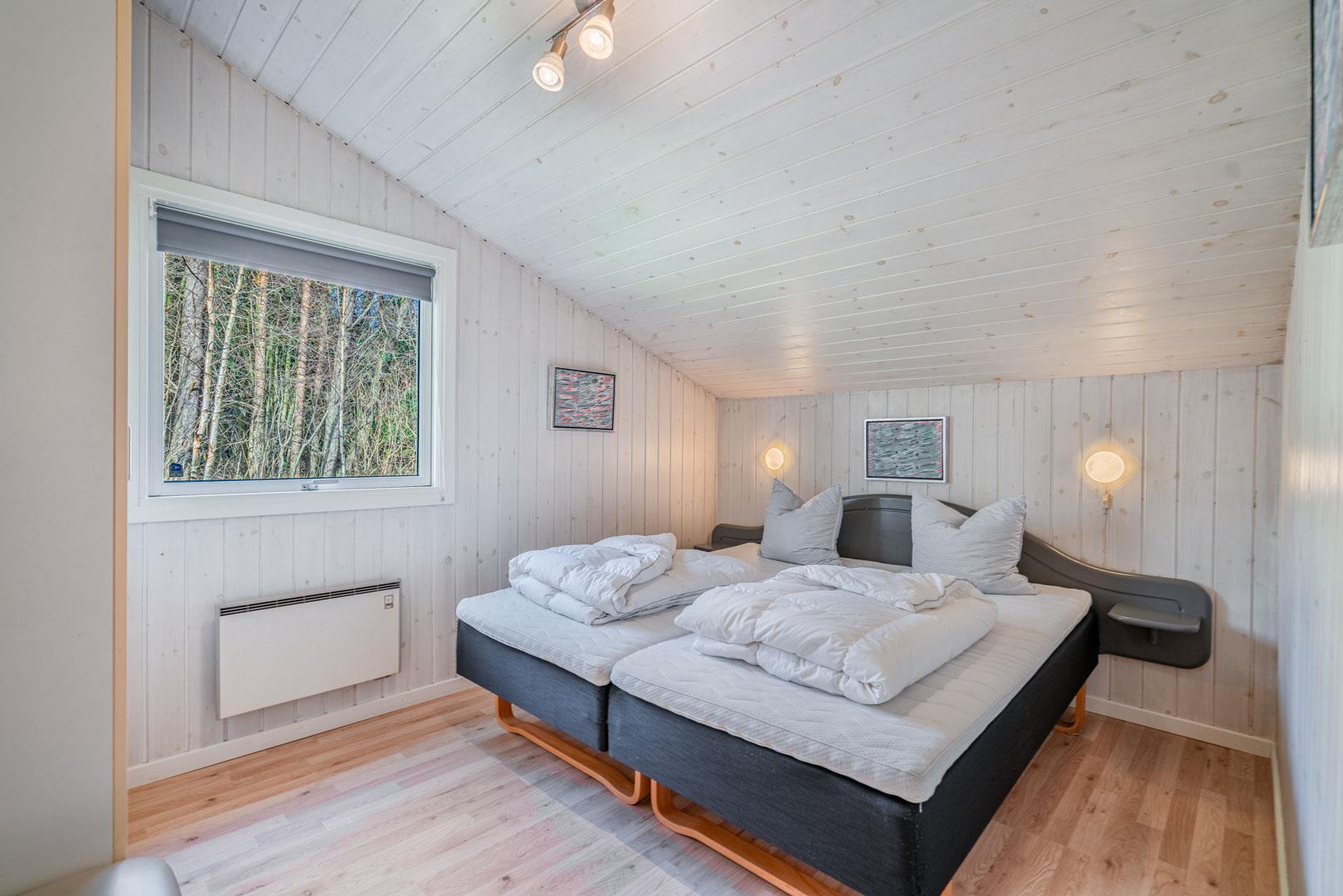 Sengestørrelse: 1 dobbeltseng med 2 madrasser 90 x 200 cm + 1 dobbeltseng 180 x 200 cm + 1 dobbeltseng 140 x 200 cm + 2 enkeltsenge 90 x 200 cm.