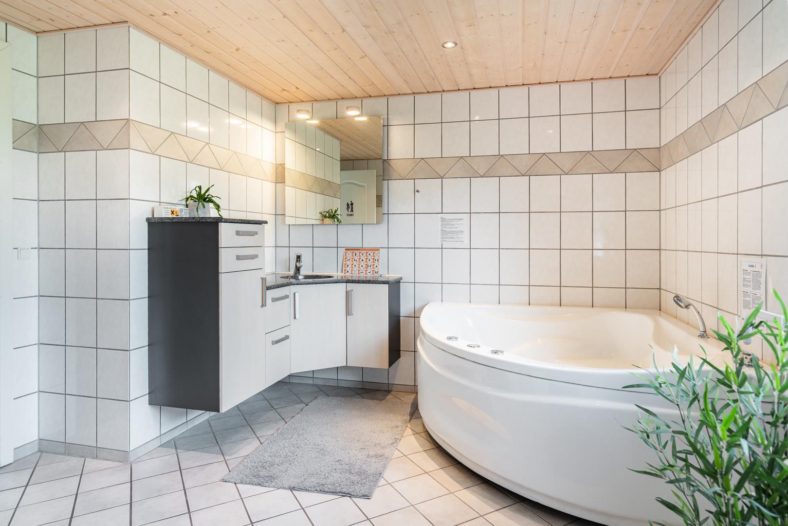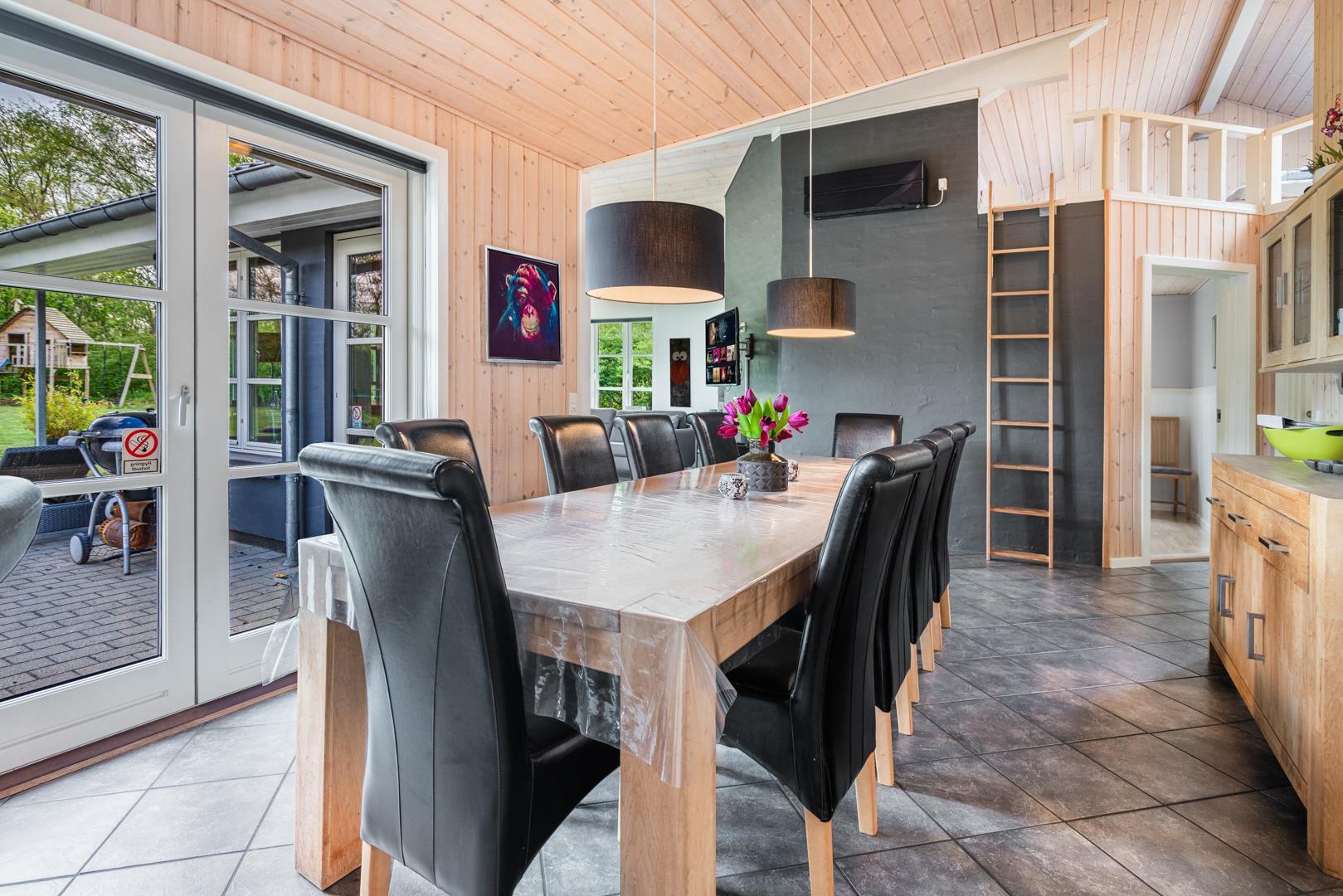 Kvalitets sommerhus beliggende for enden af grusbelagt vænge i Jegum Ferieland og med gåafstand til områdets aktivitetscenter. Sommerhusets er meget rummeligt og med stor køkken/alrum med brændeovn samt varmepumpe. Sommerhuset har 2 gode badeværelser og fra den store badeværelse med spabad er der direkte adgang til sommerhusets sauna. På grunden er der rigtig mange aktivitetsmuligheder for store og små, og der er f.eks. en nedsænket terrasse med havestole, bord og grill samt en delvis overdækket hyggekrog. I sommerhusets store carport er der mulighed for at spille bordtennis samt bordfodbold. Huset er omgivet af flere gode og delvis overdækkede terrasser.