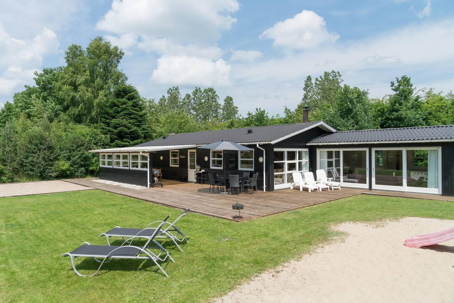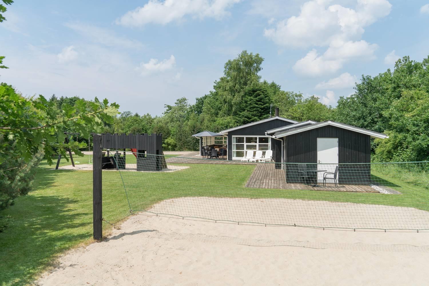 På adressen Blomstervangen 151, Jegum Ferieland og for enden af blilnd vej, uforstyrret og ugeneret, på stor naturgrund ligger dette skønne aktivitetshus med plads til 10 personer og 1 hund. I bliver mødt af en velplejet grund med 'legetårn', beachvolleybane og bålplads, til fornøjelse og hygge for hele familien. På alle årstider og uanset vejret, vil den åbne udestue være et hit - I sidder i et med naturen. Separat AKTIVITETSRUM med poolbord og bordfodbold - så alle vil kunne underholdes.