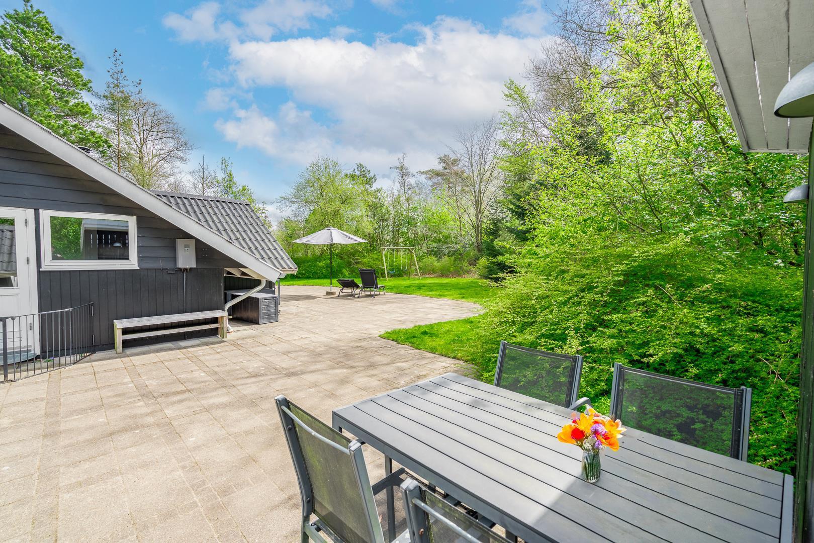 Sommerhuset har flere gode terrasser, hvor du kan starte dagen med en kop kaffe eller nyde lange grillaftener under åben himmel. Haven er indhegnet, så både børn og hunde trygt kan lege.