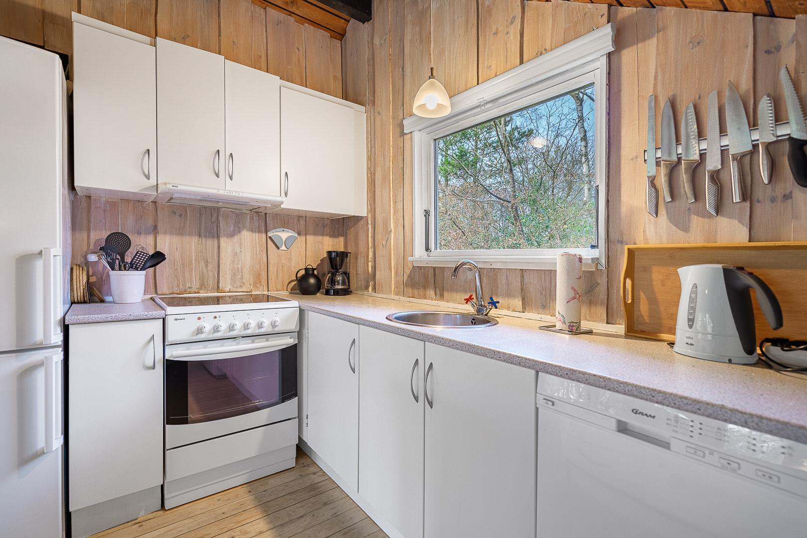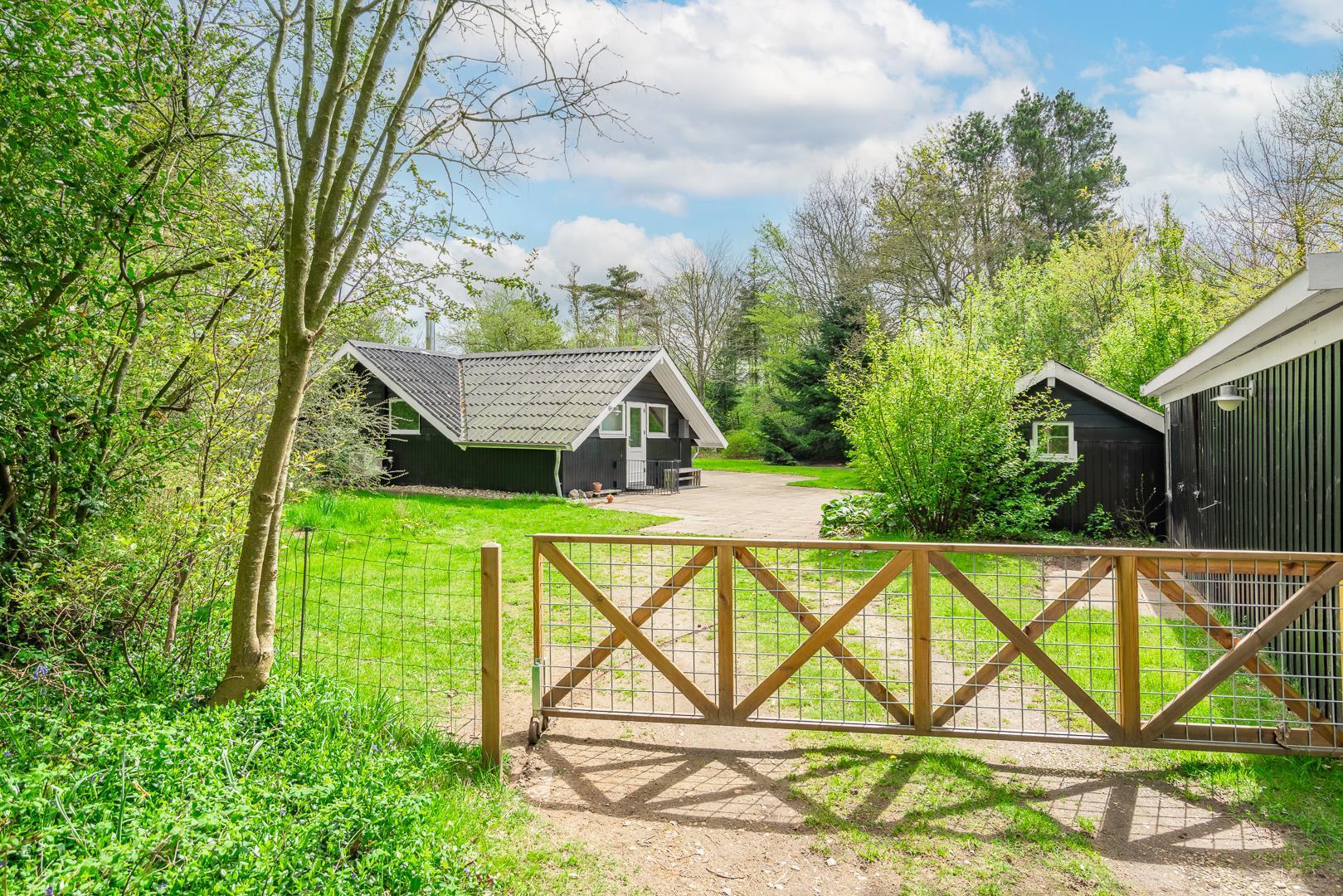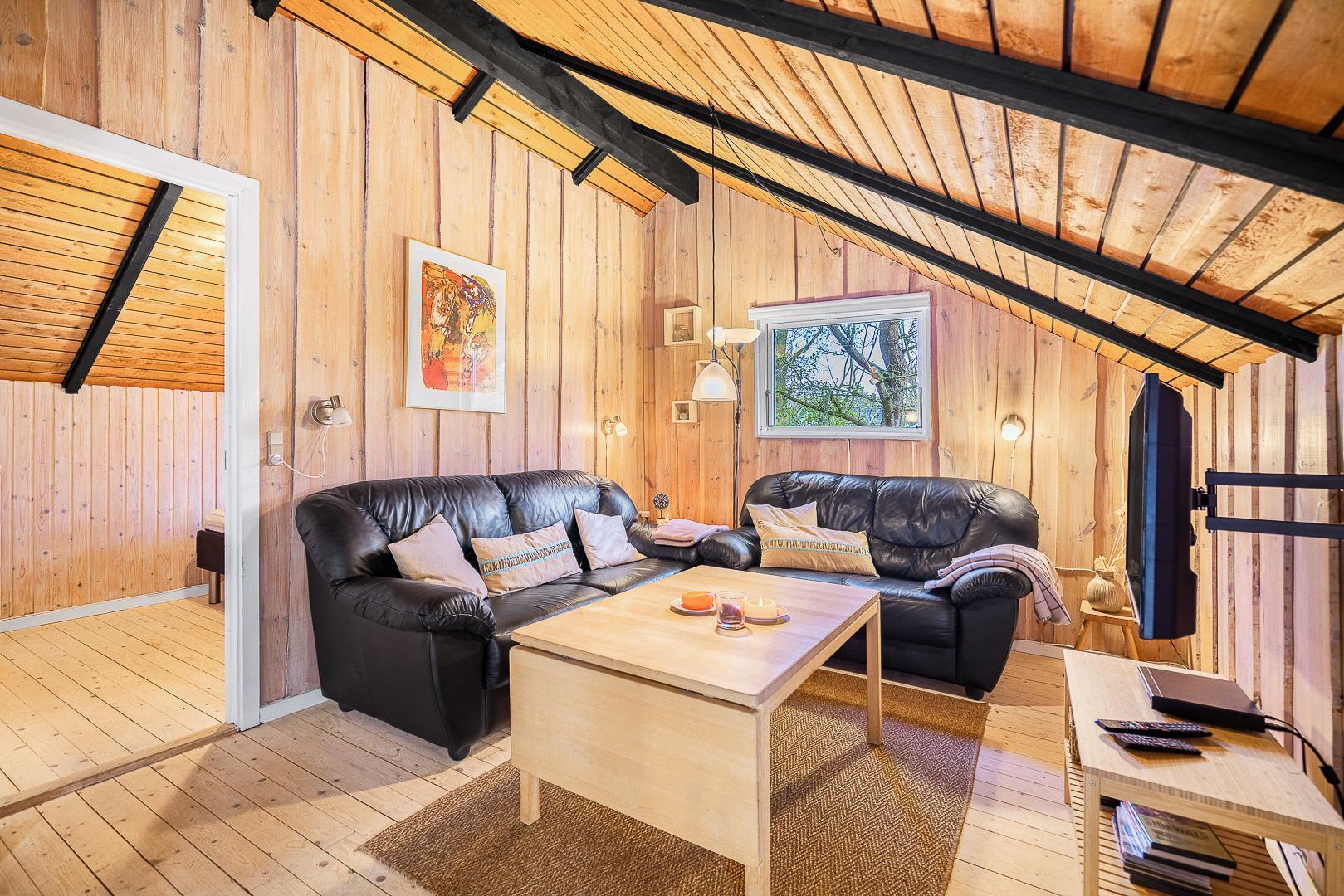Beliggende for enden af en rolig, grusbelagt vej finder du dette skønne sommerhus på en stor, indhegnet naturgrund – ideelt for hundeejere, der ønsker trygge rammer for deres kæledyr. Sommerhuset byder på en lys og indbydende stue med brændeovn og varmepumpe, der skaber en hyggelig atmosfære året rundt. Stuen er i åben forbindelse med spisestuen og det veludstyrede køkken, og herfra er der direkte udgang til en dejlig terrasse, hvor du kan nyde solen og udsigten over den smukke have.
