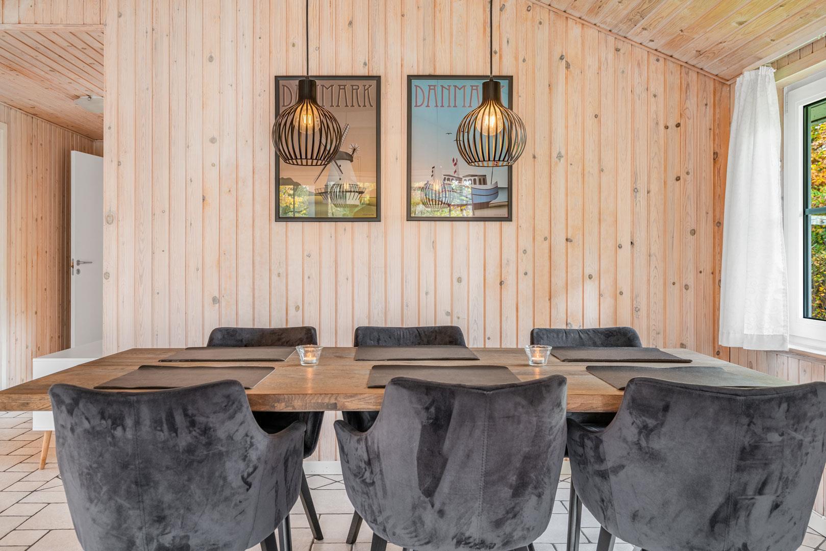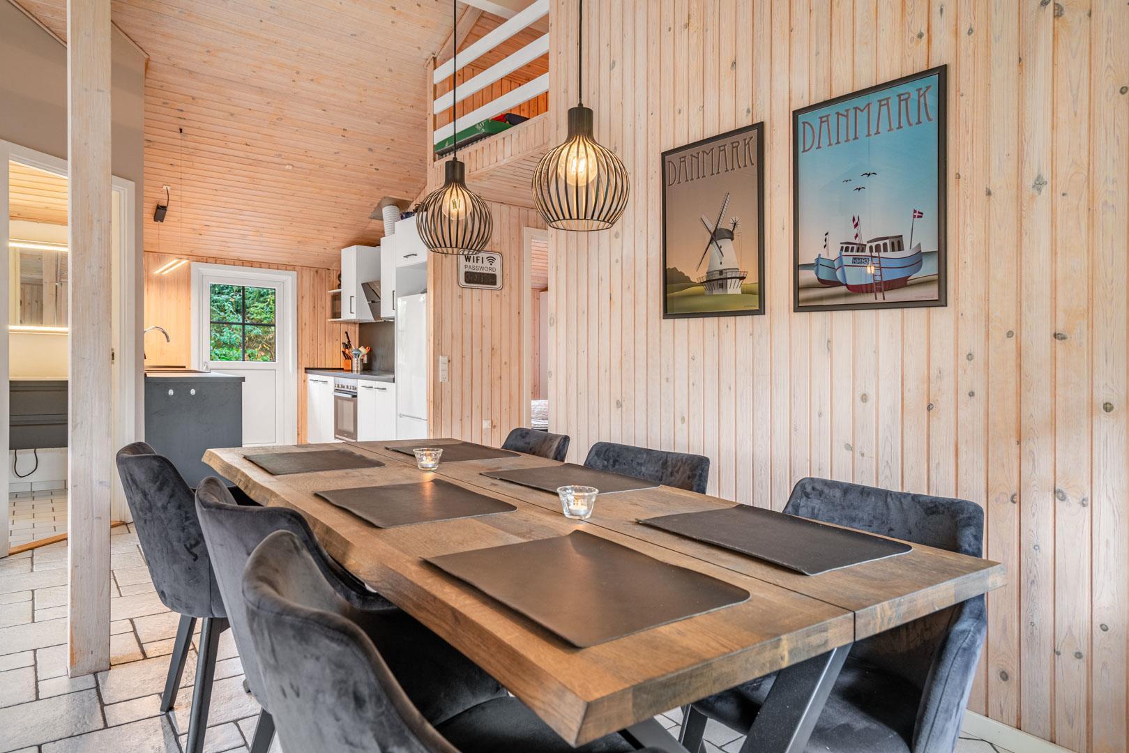 På beplantet naturgrund, for ende af blind vej på adressen Nøddehaven 60, Jegum Ferieland , ligger dette velholdte og personlige feriehus. I vil nyde den dejlige og ugenerede solgård sammen med terrassen med udgang fra stuen. Grunden indbyder til leg og boldspil. Huset har 2 badeværelser - det ene med spa og sauna samt wellness bruser. Der er 3 gode soverum - 2 med dobbeltseng og 1 med enkelt senge. Desuden hems, som ikke benyttes som soverum, men til hygge og afslapning - evt. for børnene. Pænt køkken med opvaskemaskine, separat fryser ca. 50 l, samt mikroovn. Spiseplads og stue - godt samlingspunkt for familien og ferien. Kombineret vaske- og tørretumbler. Rygning og husdyr ikke tilladt.