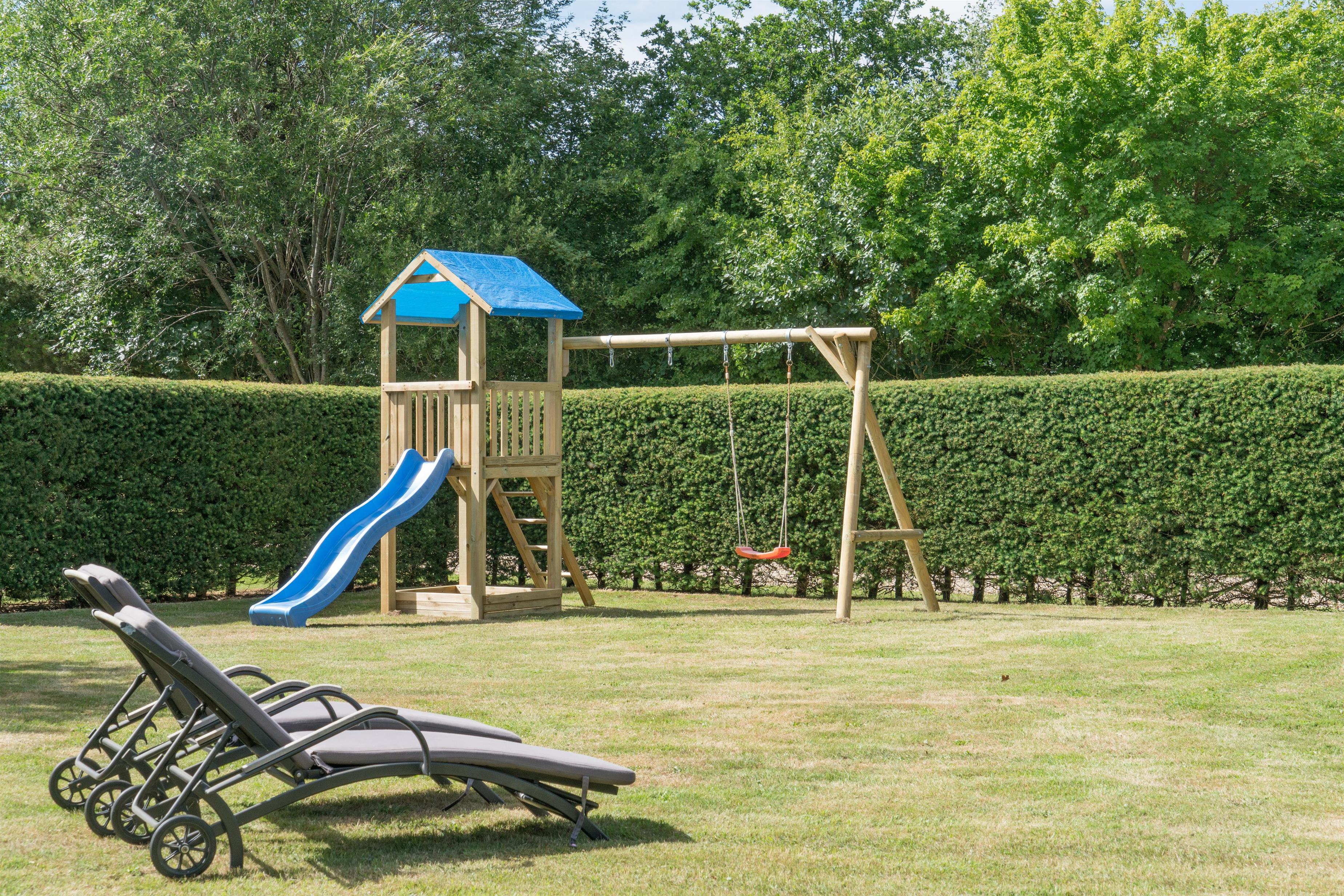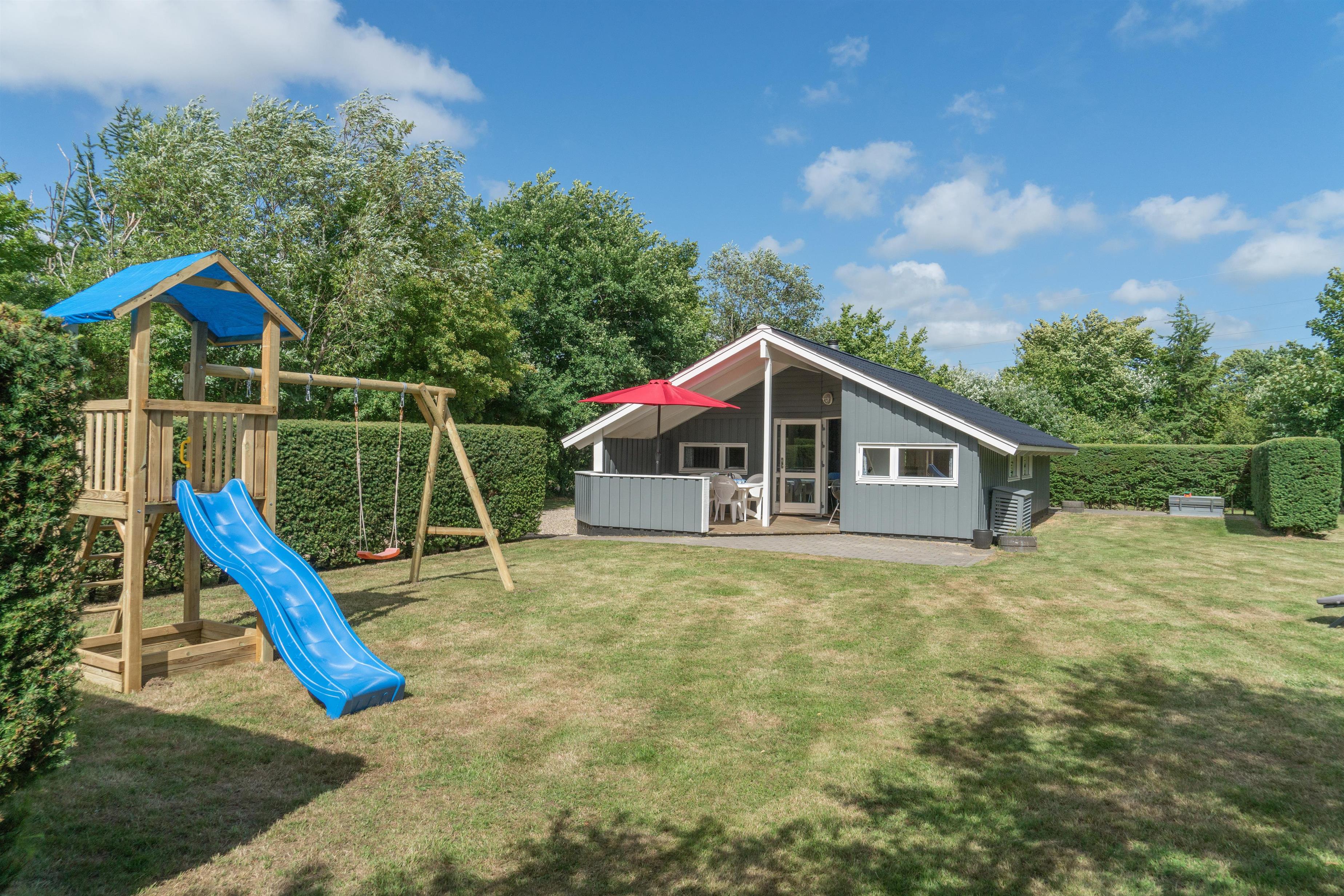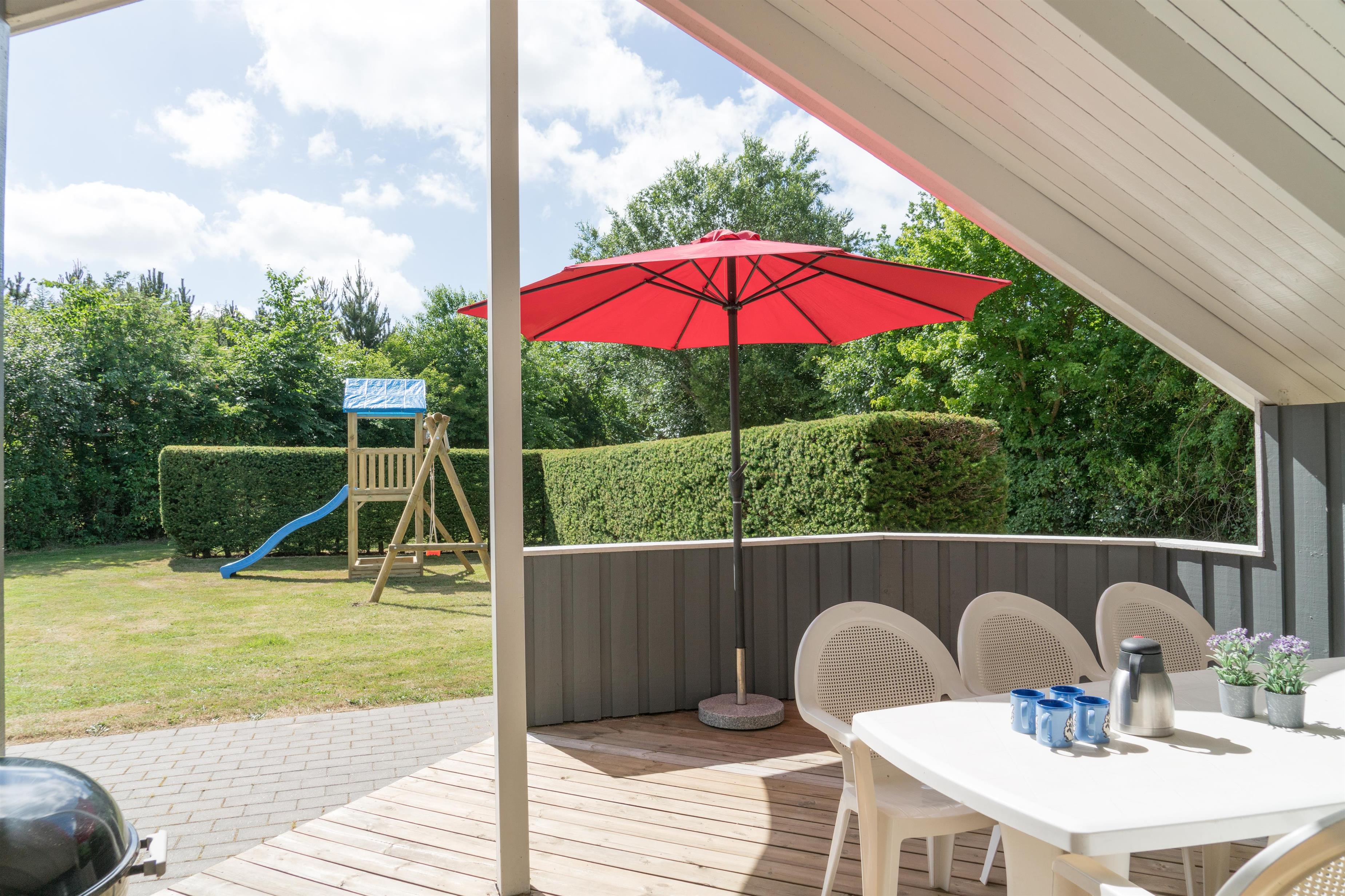 Udendørs finder I en overdækket terrasse, som indbyder til afslappede morgener med kaffe og friskbagt brød. Til de yngste gæster er der både sandkasse og gynge.
