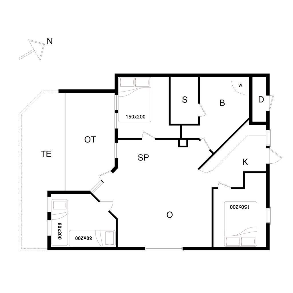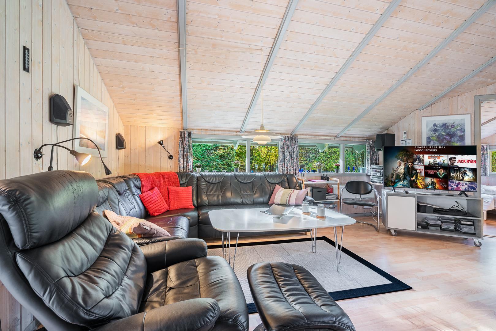 Husets hjerte er det åbne opholdsrum, hvor stue og køkken smelter sammen. Store vinduer giver et skønt lysindfald, og brændeovnen skaber den helt rigtige feriestemning på kølige dage. Her kan I samles efter en dag ved havet eller i naturen og nyde roen.