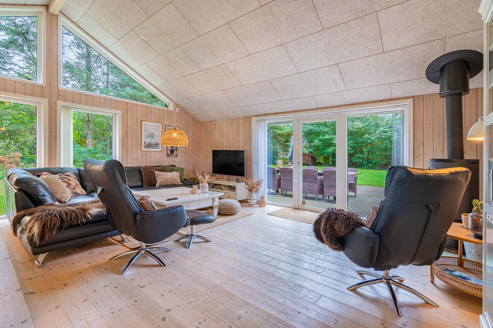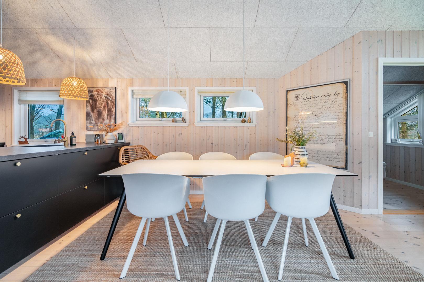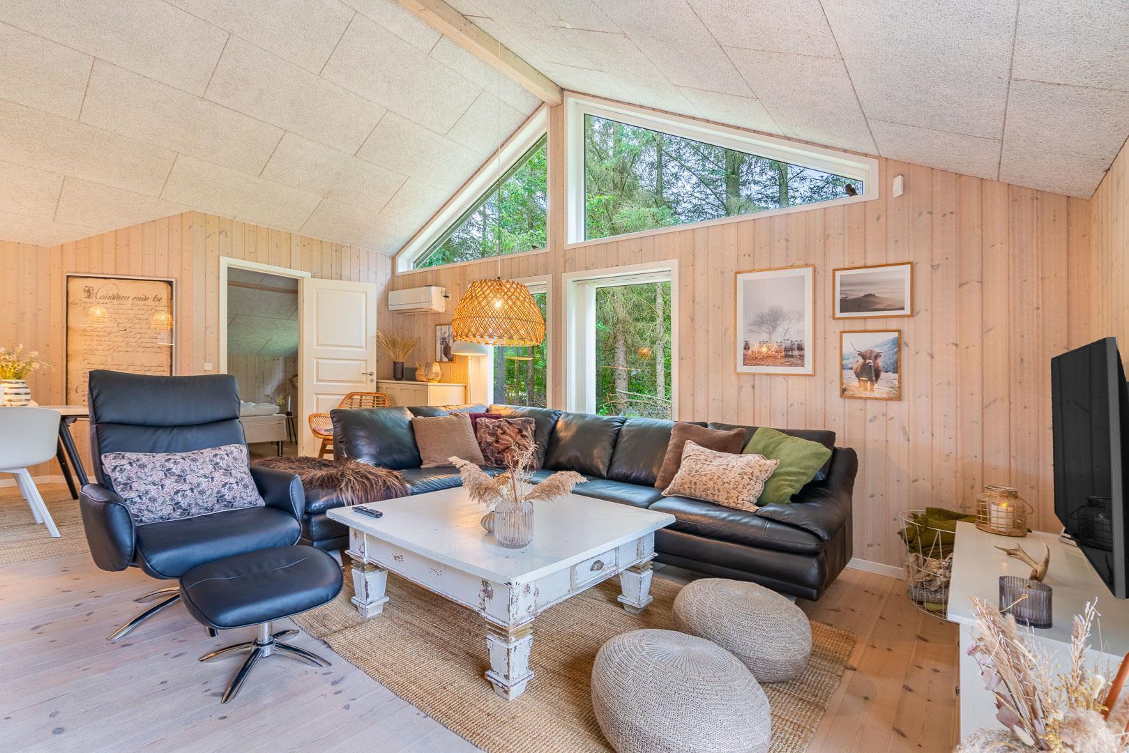 Personligt indrettet sommerhus med spabad, beliggende på en stor, tilbagetrukket naturgrund i det familievenlige Jegum Ferieland på adressen Blomstervangen 114. Køkkenet ligger i åben forbindelse til en hyggelig stue med brændeovn samt varmepumpe . Herfra er der opgang til husets meget børnevenlige hems med bl.a. hyggeområde med madrasser, spil osv. Omkring huset er der opført flere terrasser.