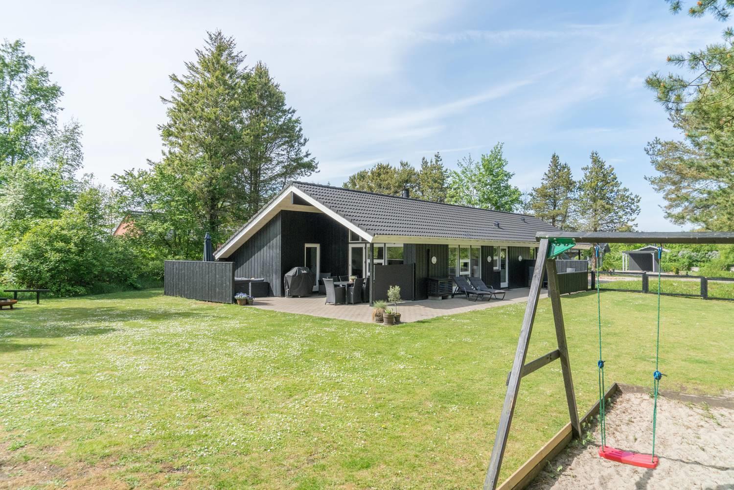 Auch draußen überzeugt das Ferienhaus mit einem großzügigen Außenbereich, der ideal auf Familien mit Kindern und Hund zugeschnitten ist. Das eingezäunte Grundstück sorgt für Sicherheit und lässt den Hund frei laufen, während die Kinder ungestört spielen können. Für die Kinder gibt es außerdem eine Schaukel und einen Sandkasten, die schnell zum Mittelpunkt vieler fröhlicher Stunden werden.