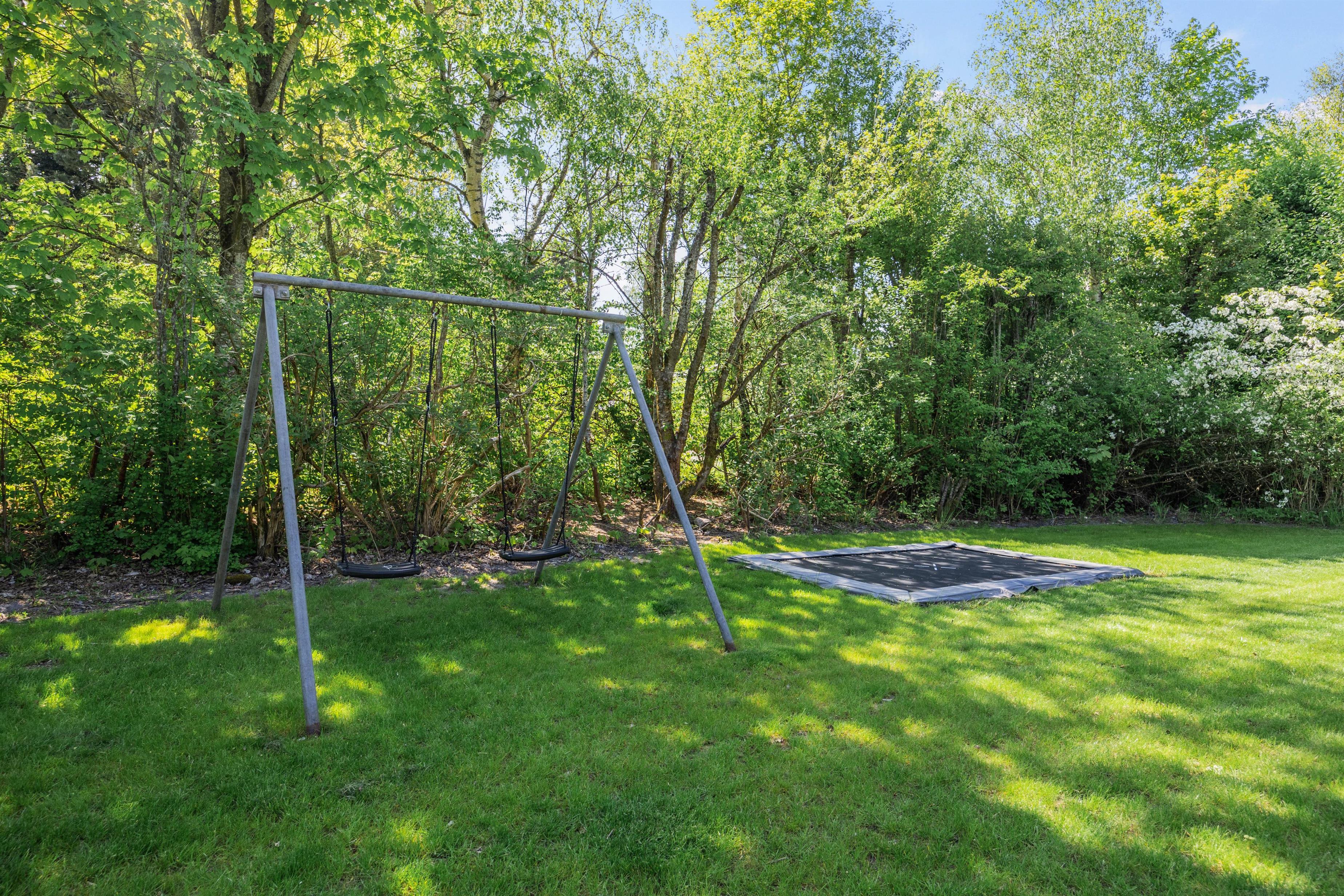 For familiens yngste og barnlige sjæle byder udendørsarealerne både på en gynge og trampolin, der garanterer timevis af underholdning og fysisk aktivitet. Her kan børnene brænde den sidste energi af, mens de voksne slapper af med en forfriskning.