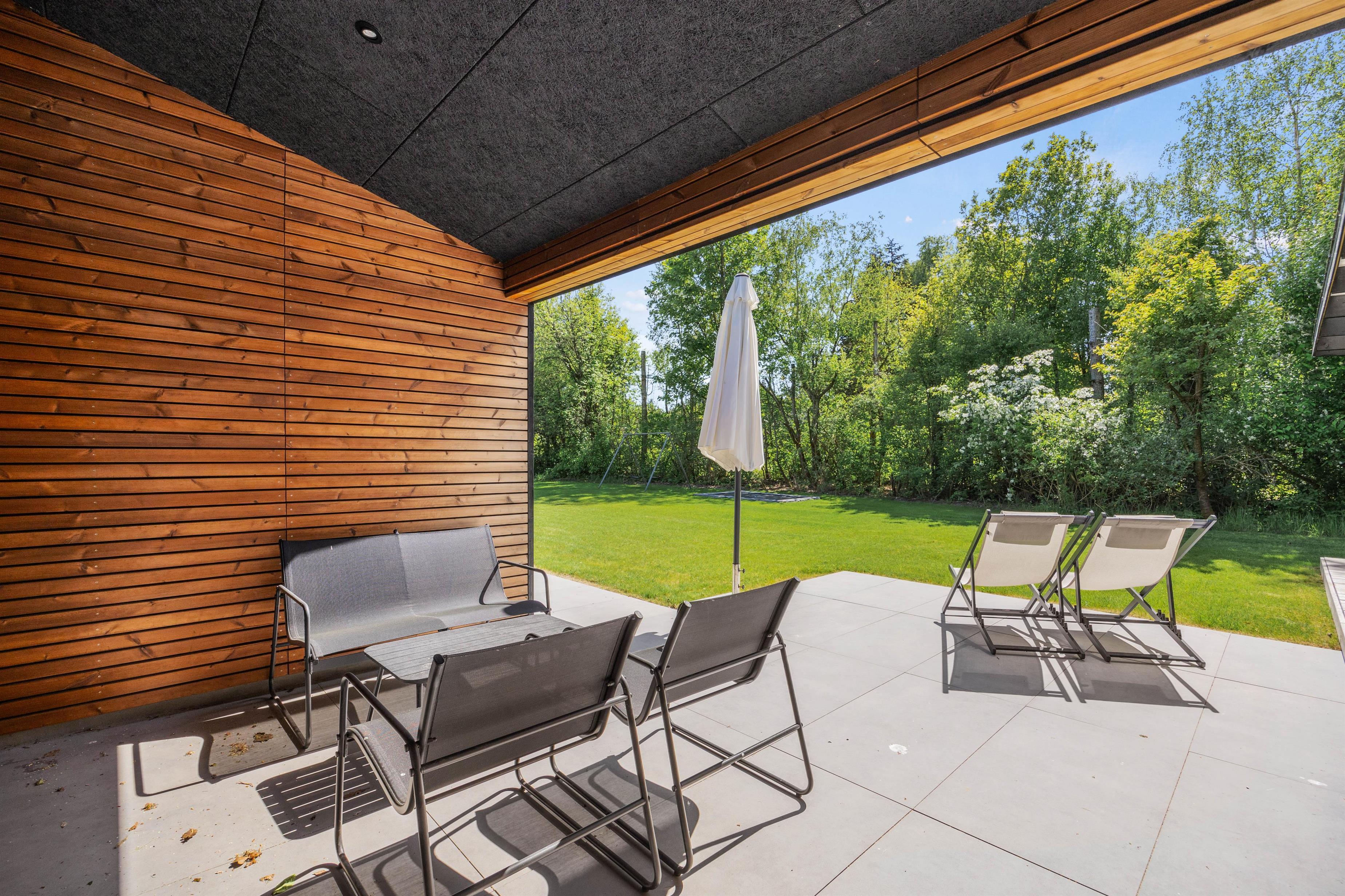 Udearealerne omkring sommerhuset giver jer fantastiske muligheder for at nyde den friske luft og de naturskønne omgivelser, som Jegum Ferieland har at byde på. Den overdækkede terrasse er et ideelt sted at starte dagen med en kop kaffe eller afslutte den med et godt glas vin, mens I lader udsigten over den fredelige natur synke ind.
