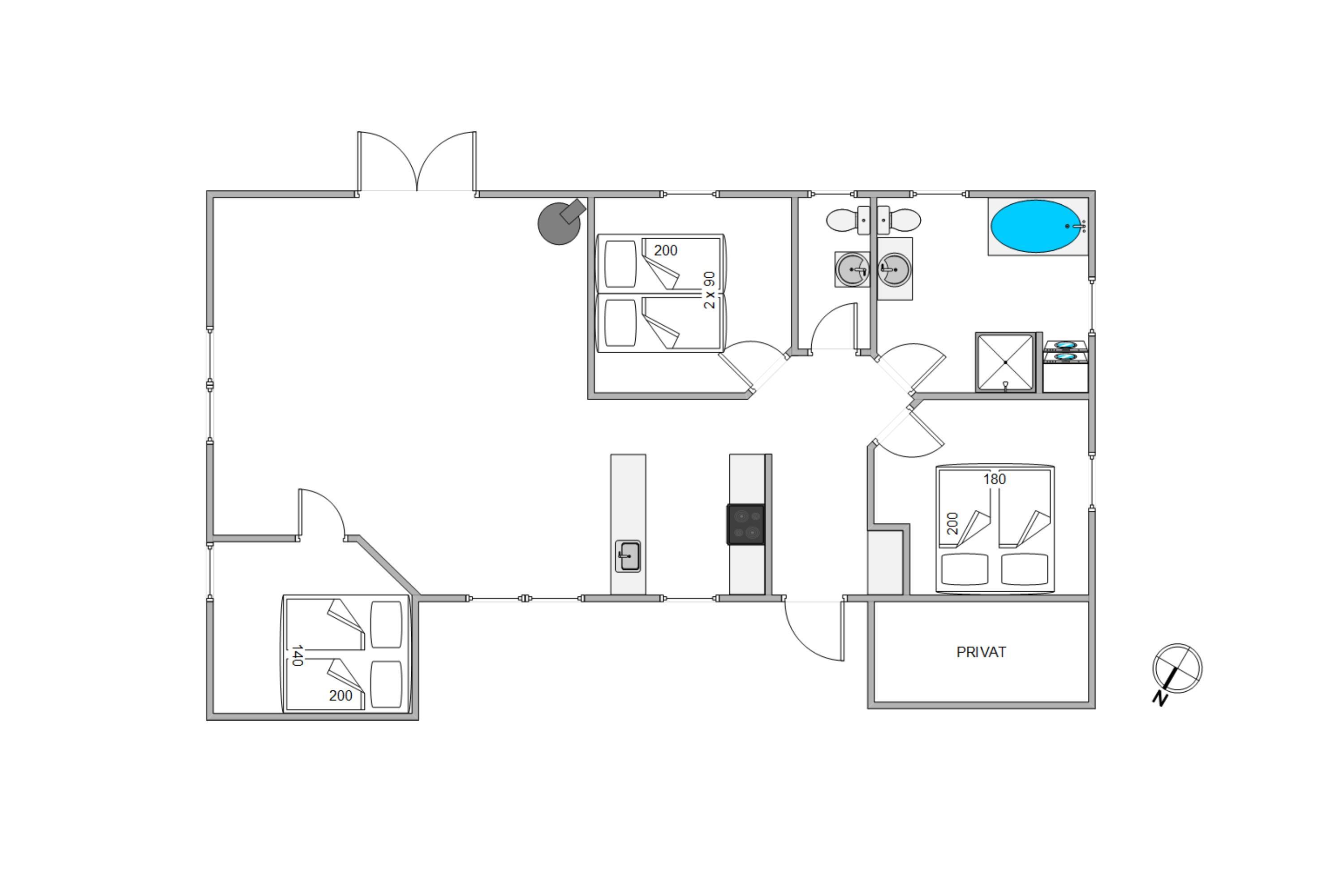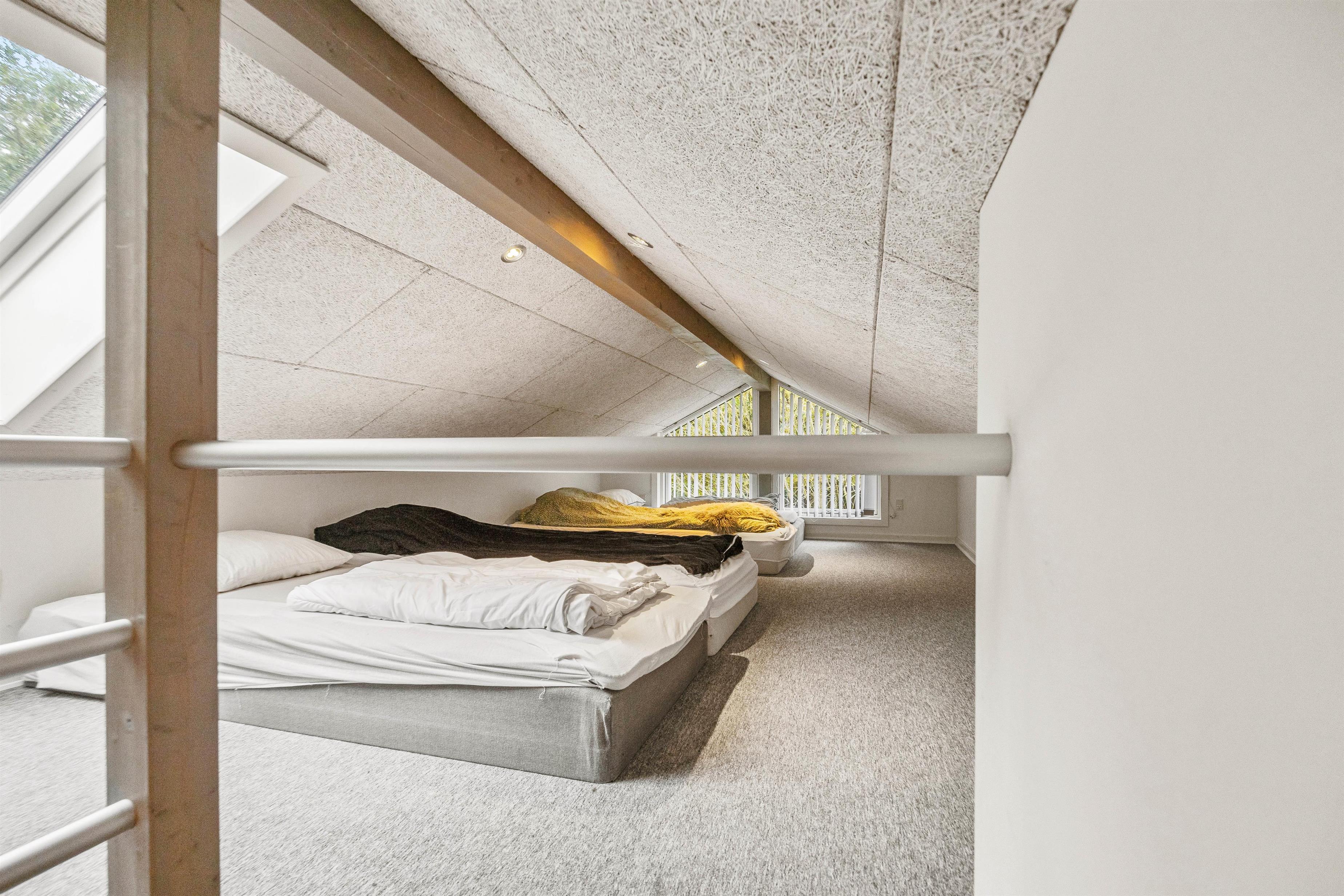 Feriehuset har i alt 3 hyggelige soveværelser med komfortable dobbeltsenge og en yderligere soveplads på hemsen, som er hele 18 kvadratmeter og indrettet med 4 store madrasser. De 2 rummelige badeværelser er moderne indrettede – og det ene rummer endda en 2 personers spa. Her kan I sætte jer til rette og mærke roen sænke sig over jer. Det er velvære for krop og sjæl.