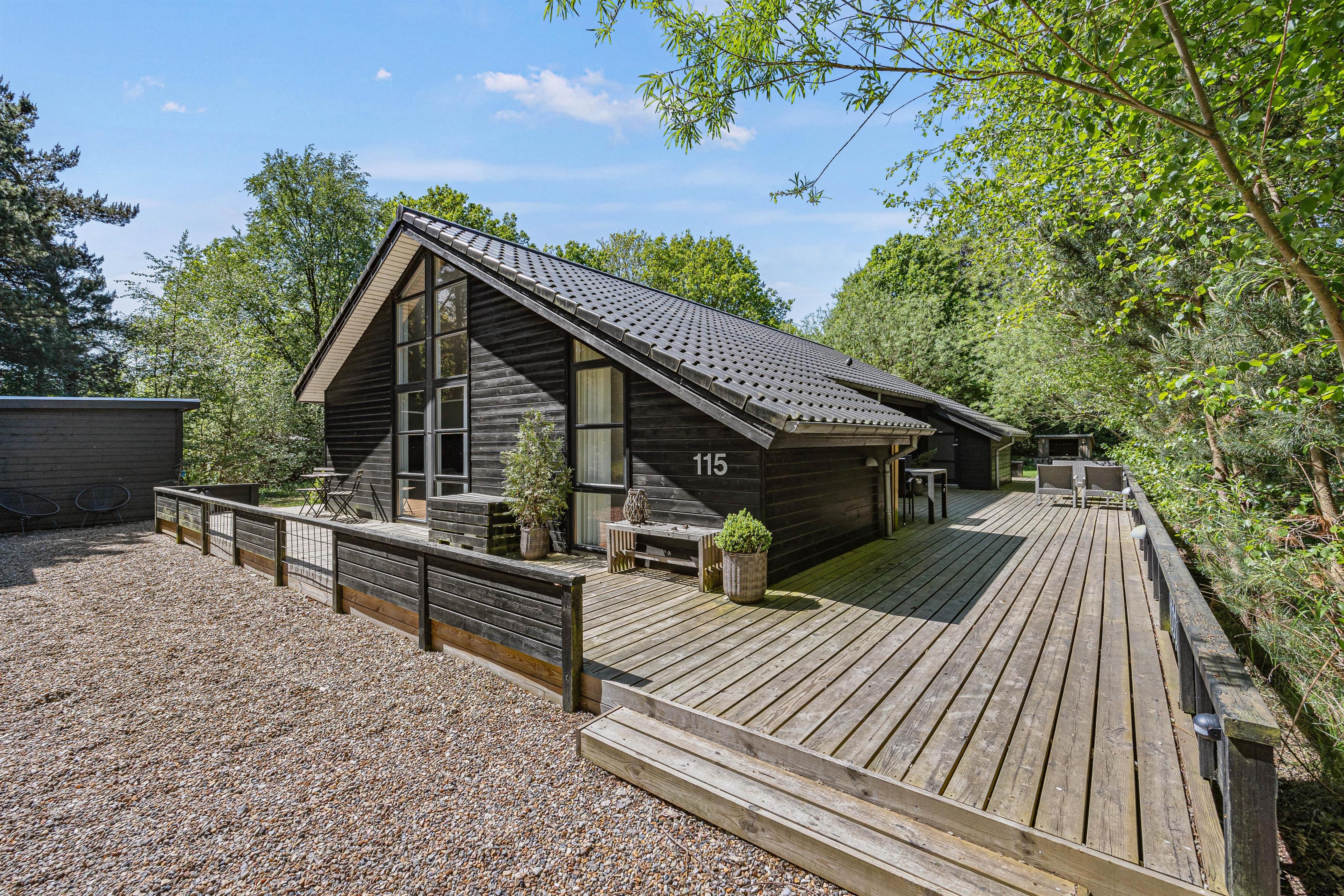 Feriehuset på Blomstervangen 115 er beliggende på en 1593m² stor natur- og plænegrund, der giver jer masser af udendørsplads til sjov og leg. De idylliske omgivelser indbyder til lange gåture og aktiviteter i det fri. Den åbne terrasse er perfekt til at nyde solen og hyggelige grill-aftener.