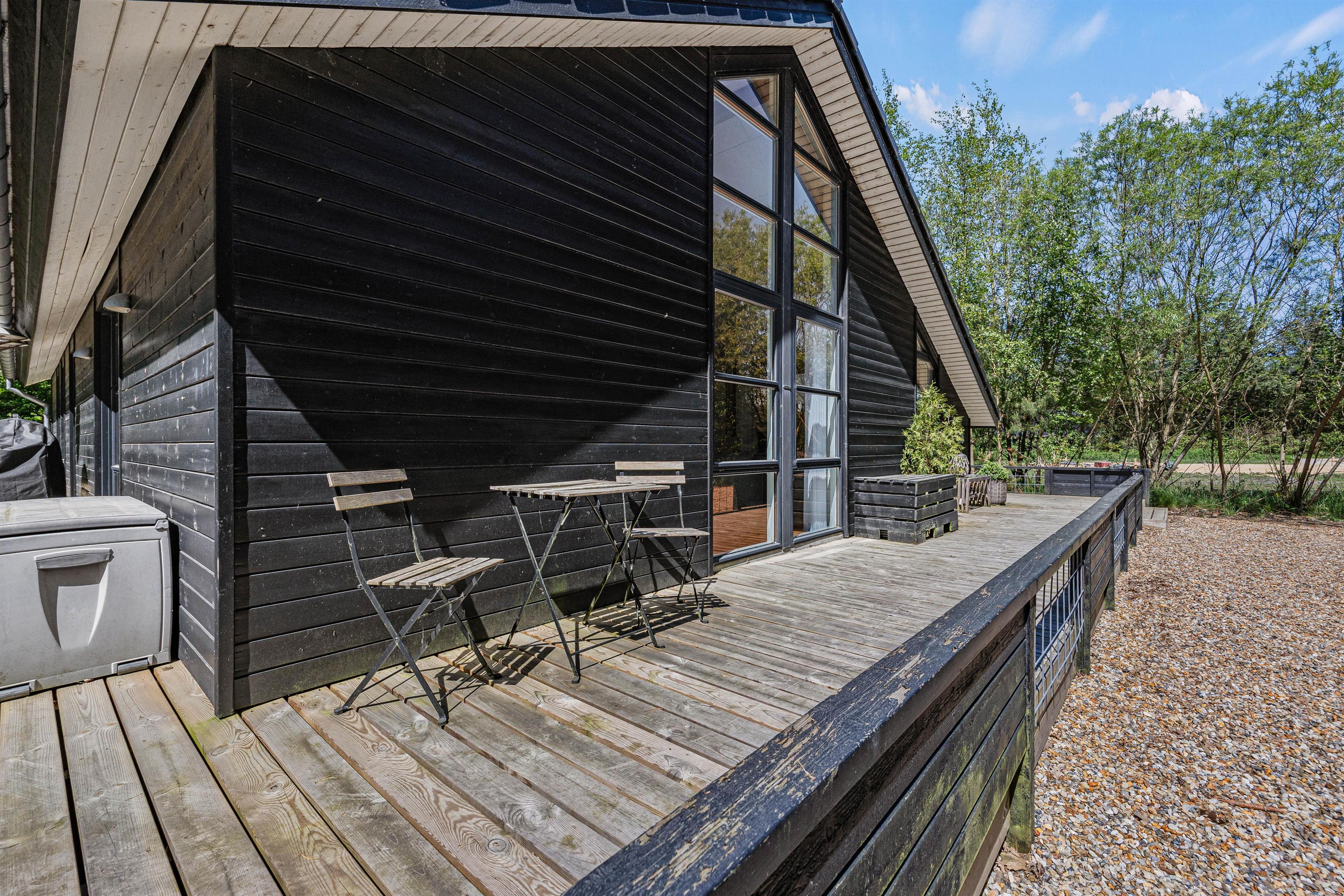 Hvert af feriehusets rum er indrettet med kvalitetsmøbler og stilfulde detaljer og tilbyder maksimal komfort. Det rummelige opholdsareal på 106 m² giver jer masser af plads til afslapning og velvære. Bliv betaget af den moderne og stilfulde indretning i dette feriehus.