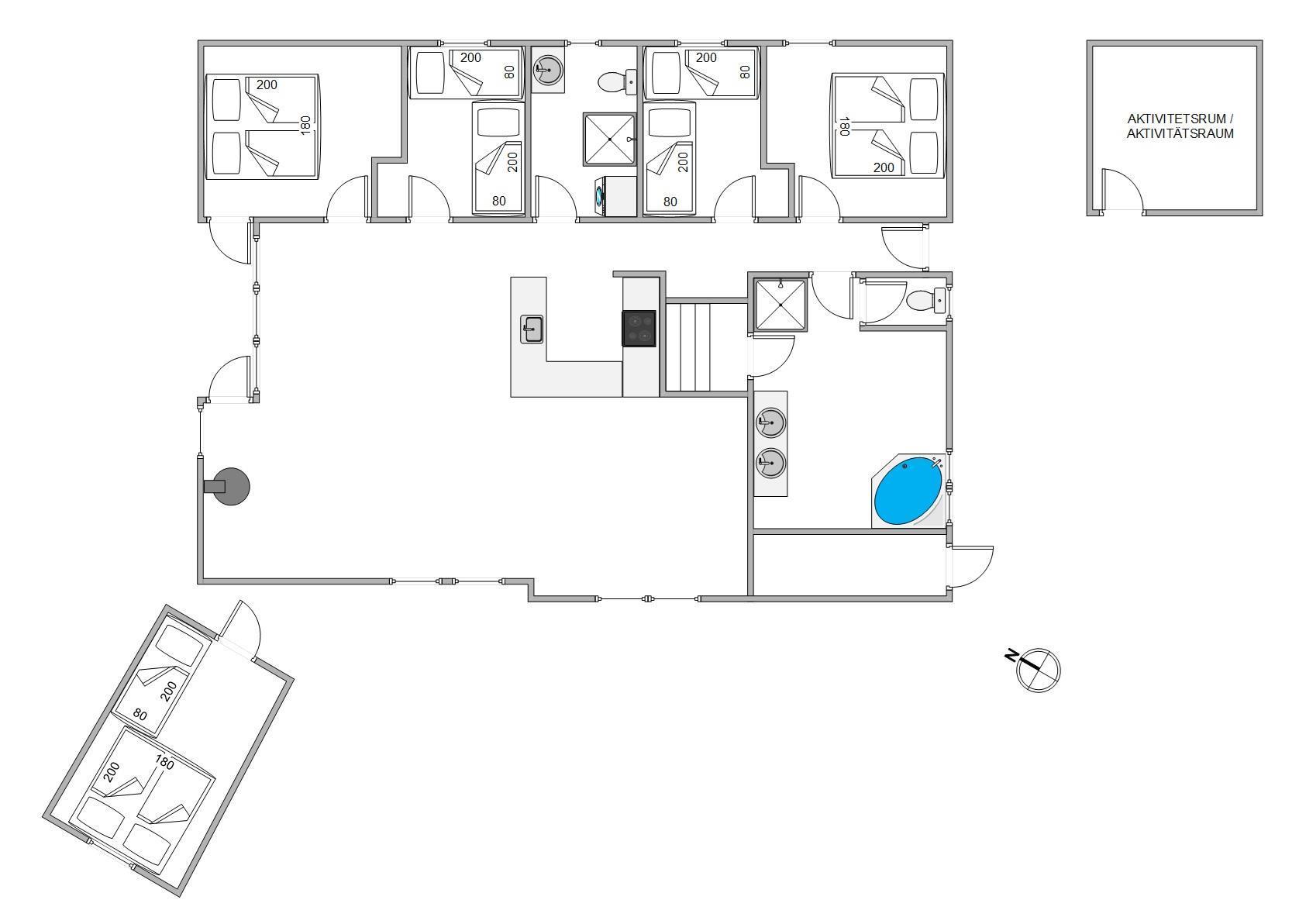 Dette sommerhus i Jegum Ferieland er et ferieparadis, hvor alle kan føle sig godt tilpas. For de, der nyder en smule konkurrence, er der både poolbillard og bordtennis i tilbygningen, som kan sætte gang i hyggen. Når afslapning står på dagsordenen, inviterer saunaen og spabadet til et beroligende afbræk fra hverdagens stress, og brændeovnen skaber en lun og hyggelig atmosfære for stille aftener med spil, samtaler og nærvær.