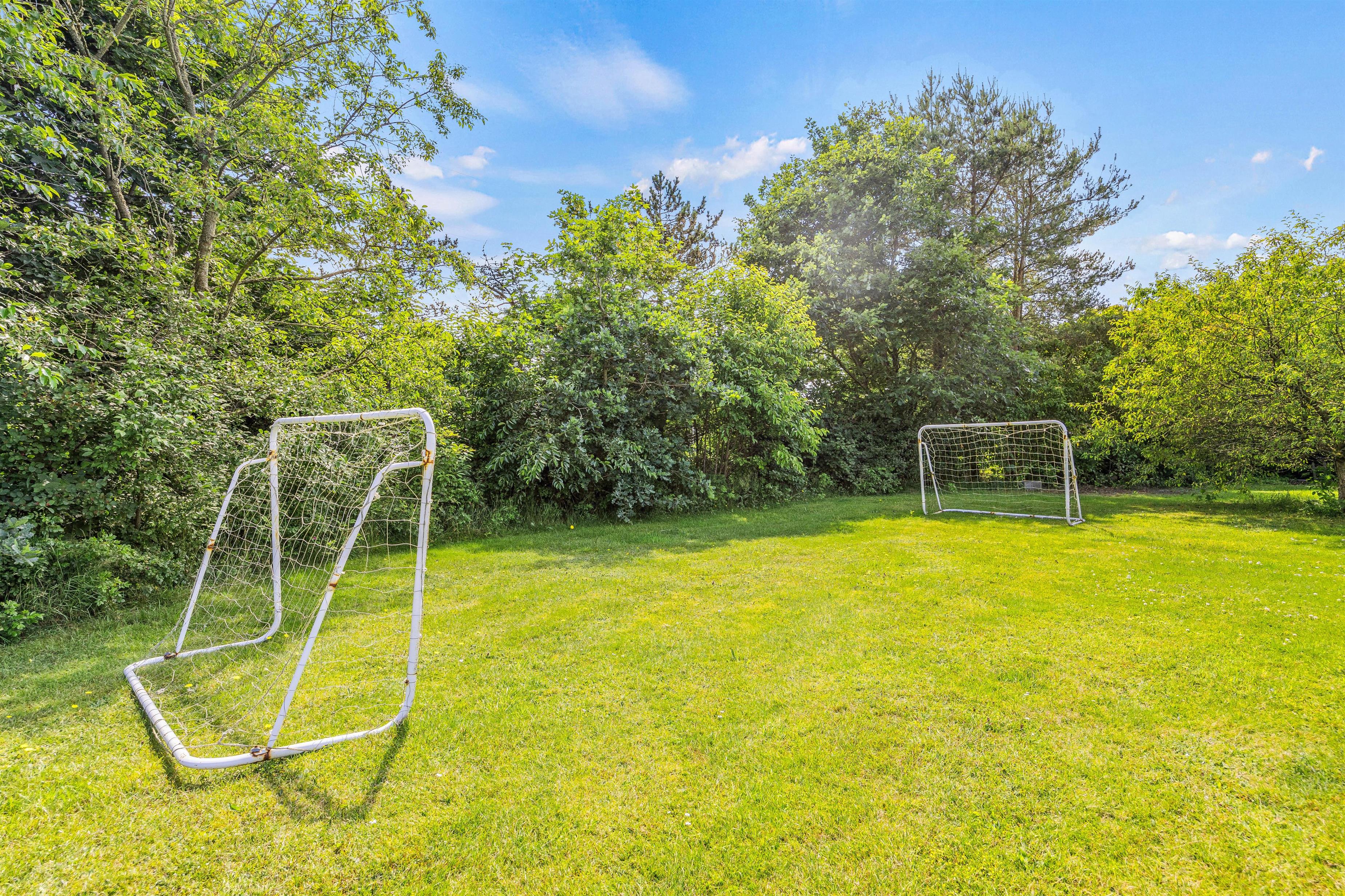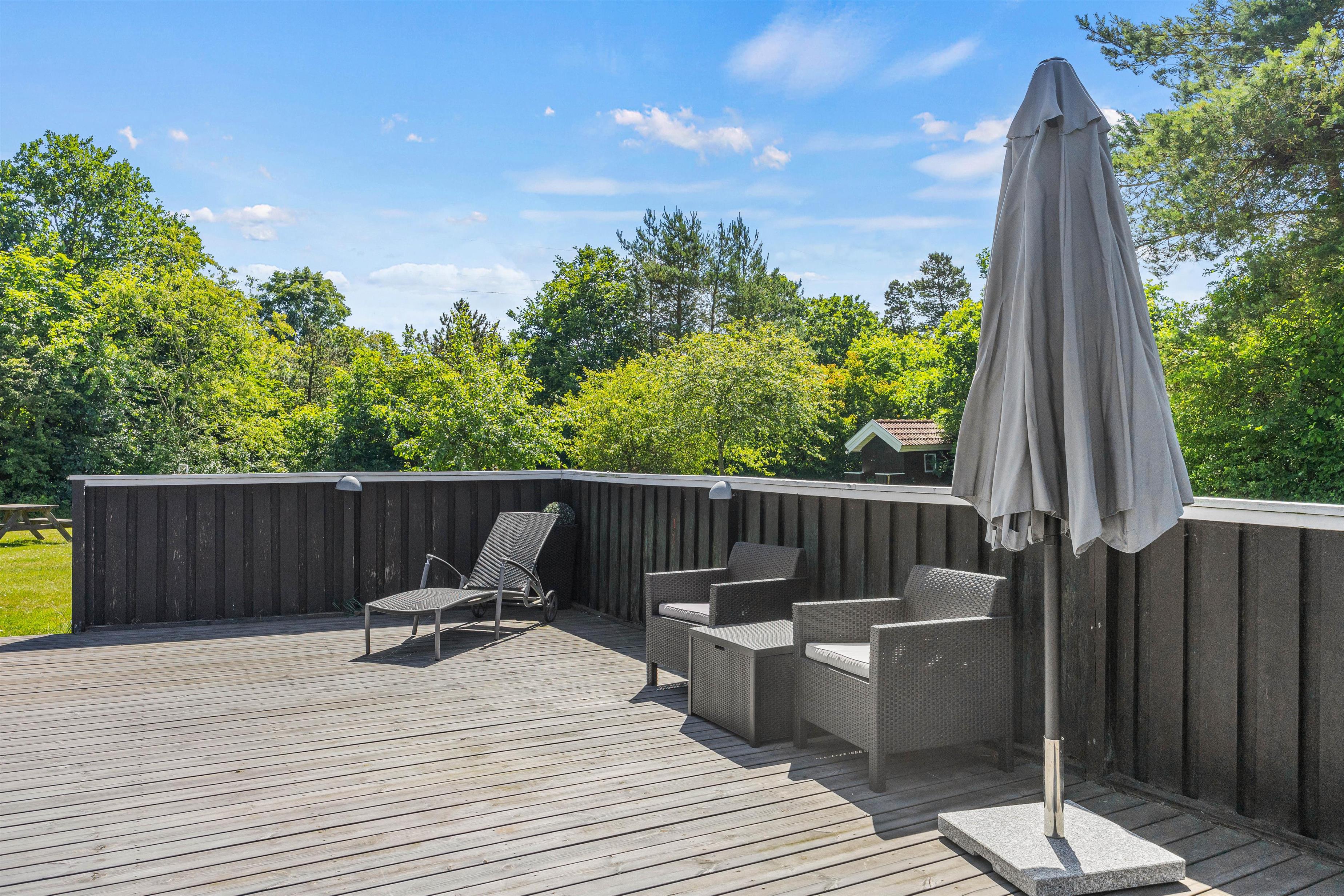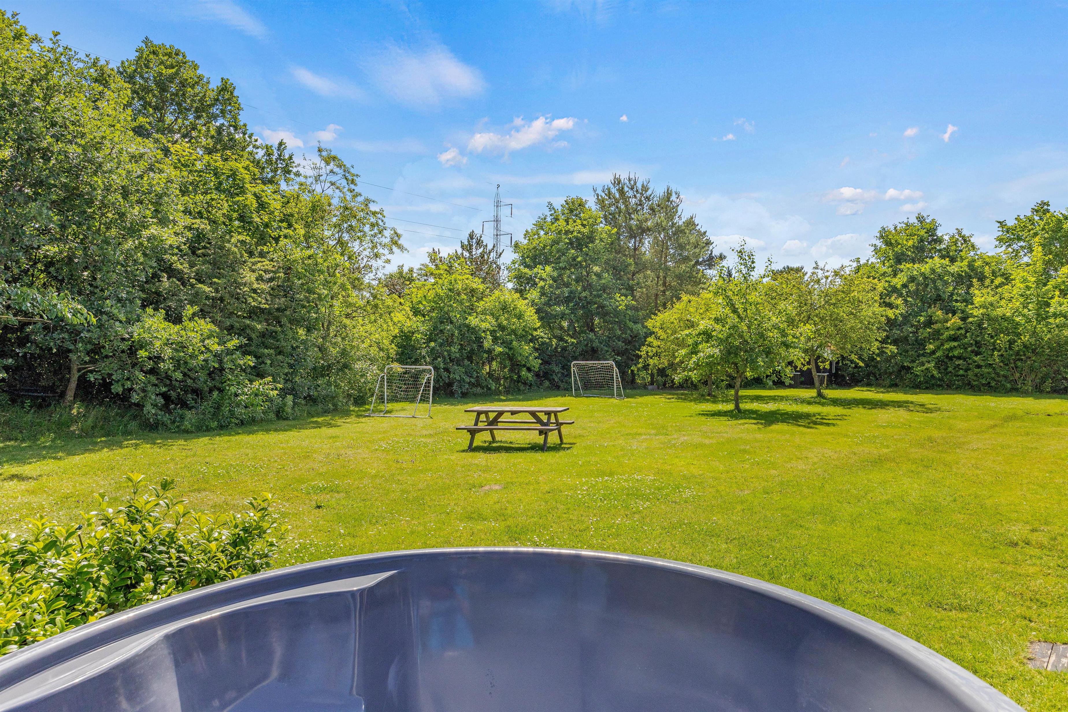Den store åbne terrasse indbyder til at nyde den friske luft og tilbringe afslappende timer under åben himmel. For de små gæster byder haven med den store græsplæne på masser af muligheder: trampolin, gynge, rutsjebane og basketballkurv. Børnene kan boltre sig efter hjertets lyst, mens I slapper af og ser på.