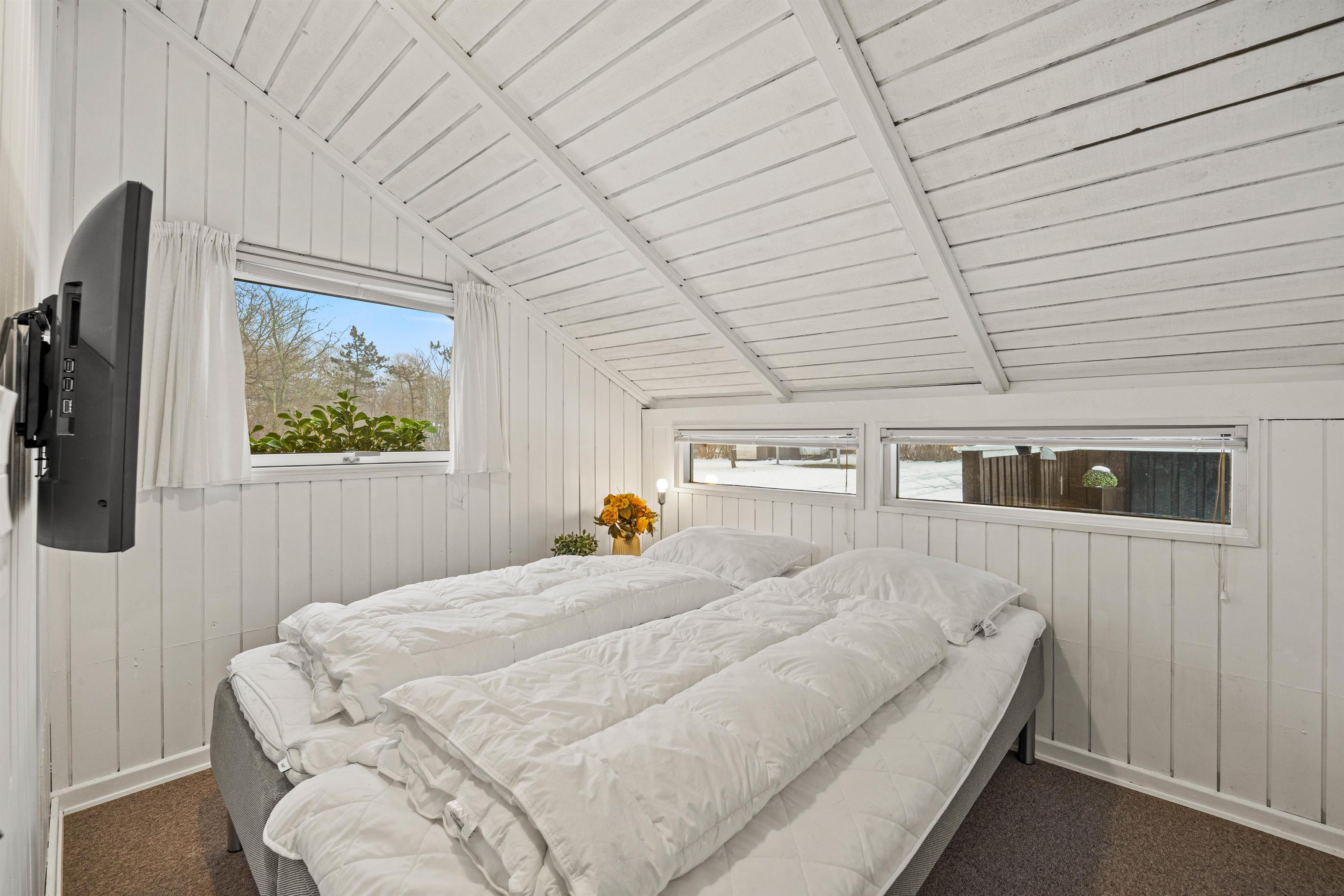 Mens 2 af de hyggelige soveværelser er udstyret med dobbeltsenge, har det 3. soveværelse 2 enkeltsenge og er derfor ideelt til børn eller venner. Det lille badeværelse med dagslys og gulvvarme sørger for, at I også har varme fødder efter brusebadet i de køligere måneder.