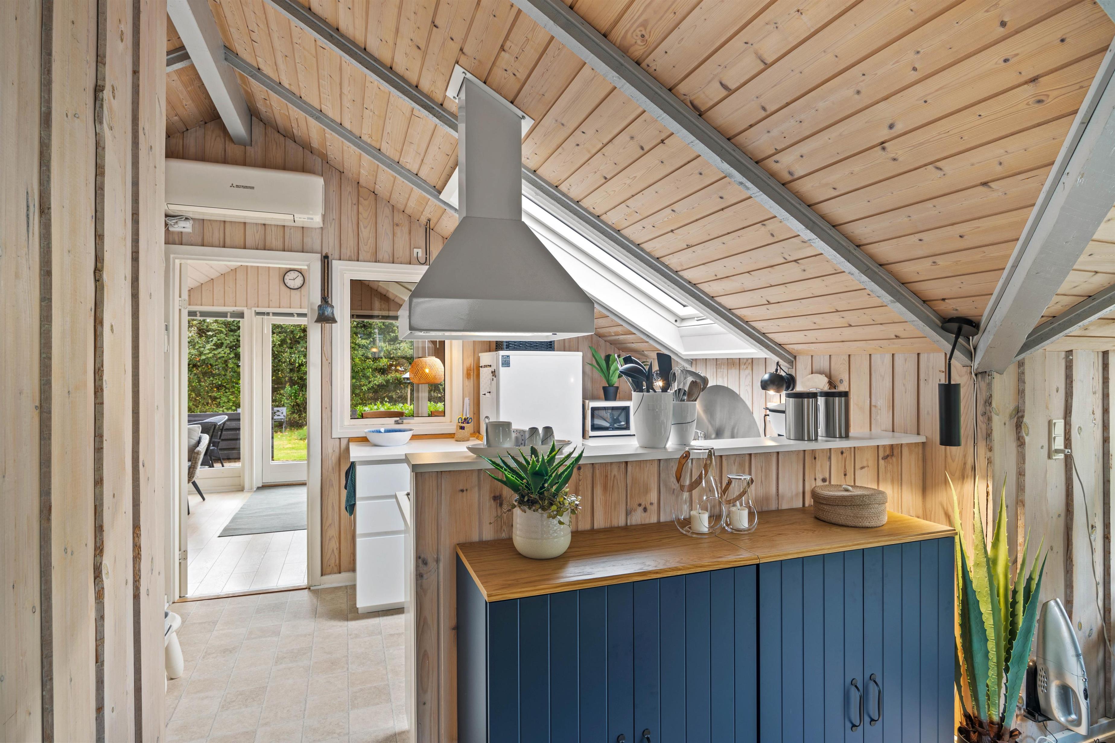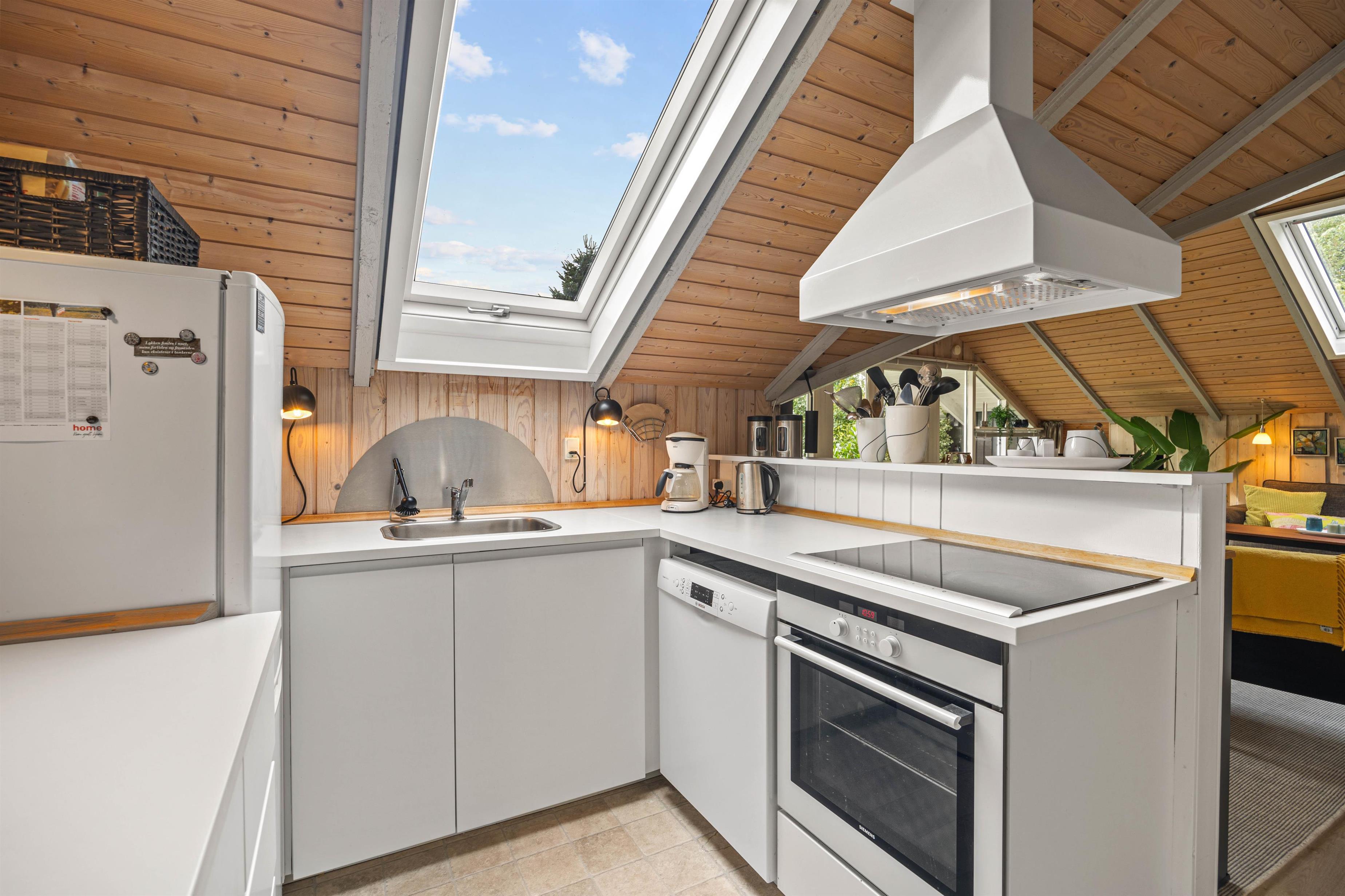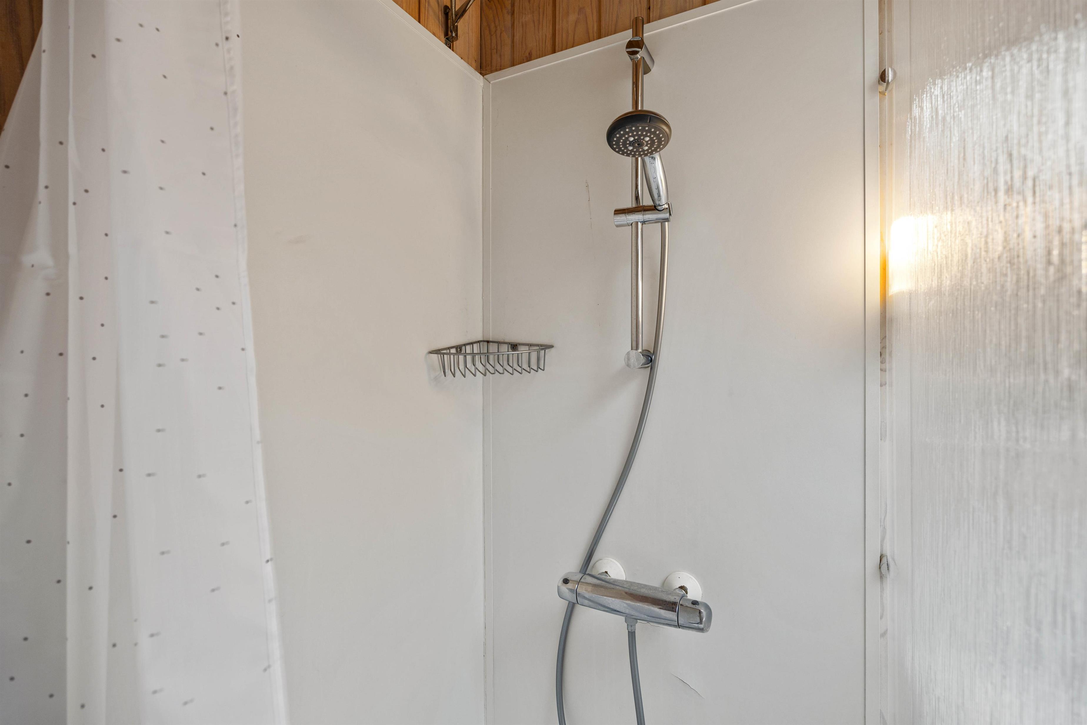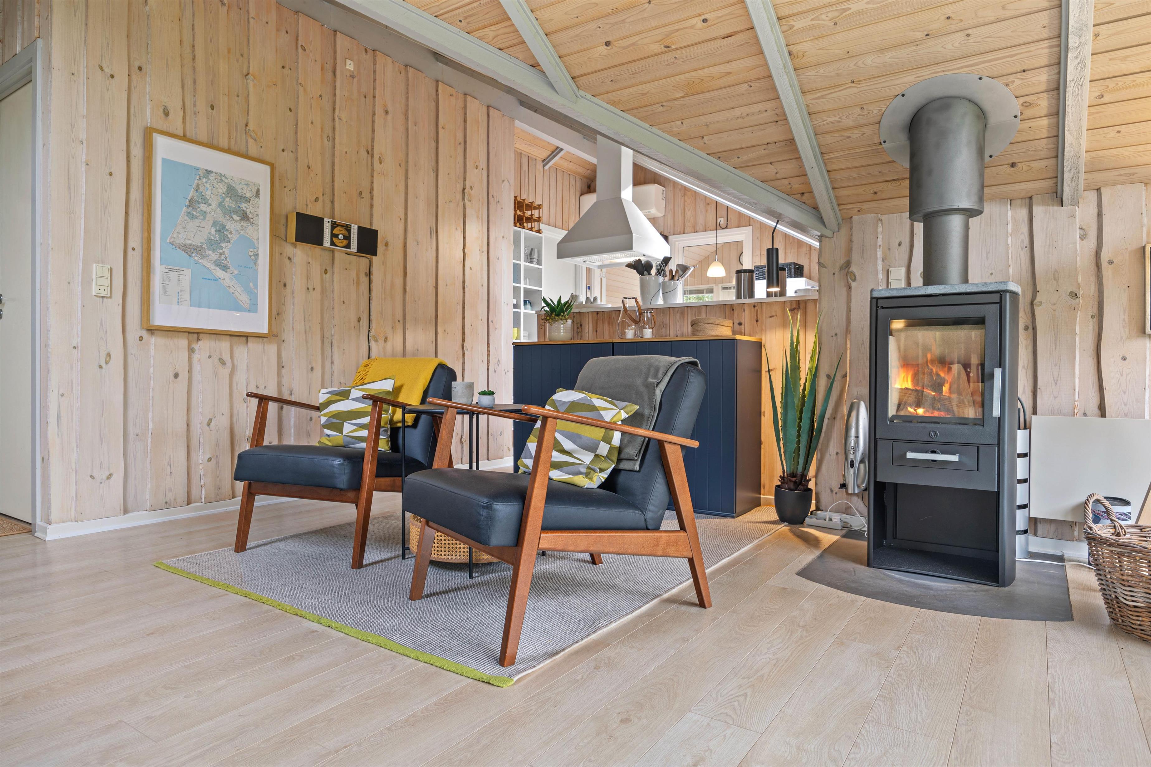 Indenfor byder sommerhuset jer velkommen med en varm og afslappet atmosfære, hvor alt er tænkt til at gøre ferien let og bekvem. Vaskemaskinen sørger for, at familiens tøj hurtigt kan klares, så I kan bruge tiden på at nyde ferien. I den hyggelige stue knitrer brændeovnen og spreder både varme og charme – perfekt til lange, rolige aftener med spil, bøger eller en god film. Badeværelset er moderne og udstyret med gulvvarme, så I kan starte dagen med lune fødder og en følelse af velvære.