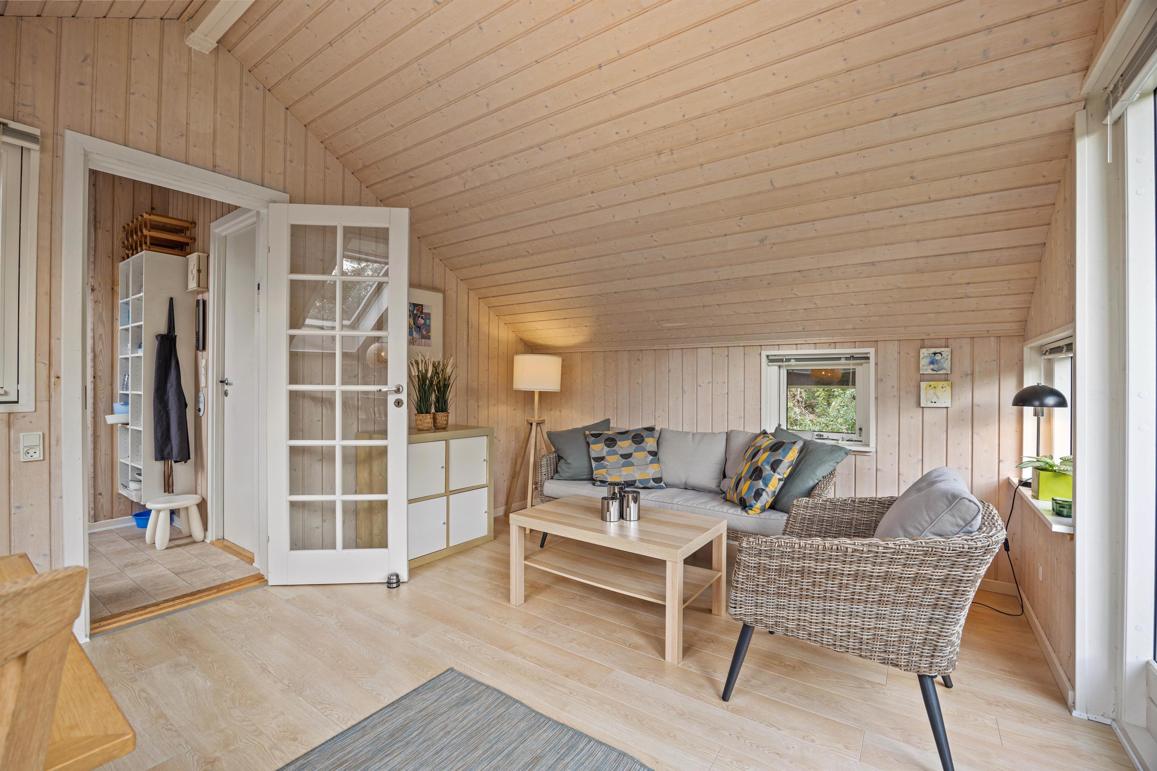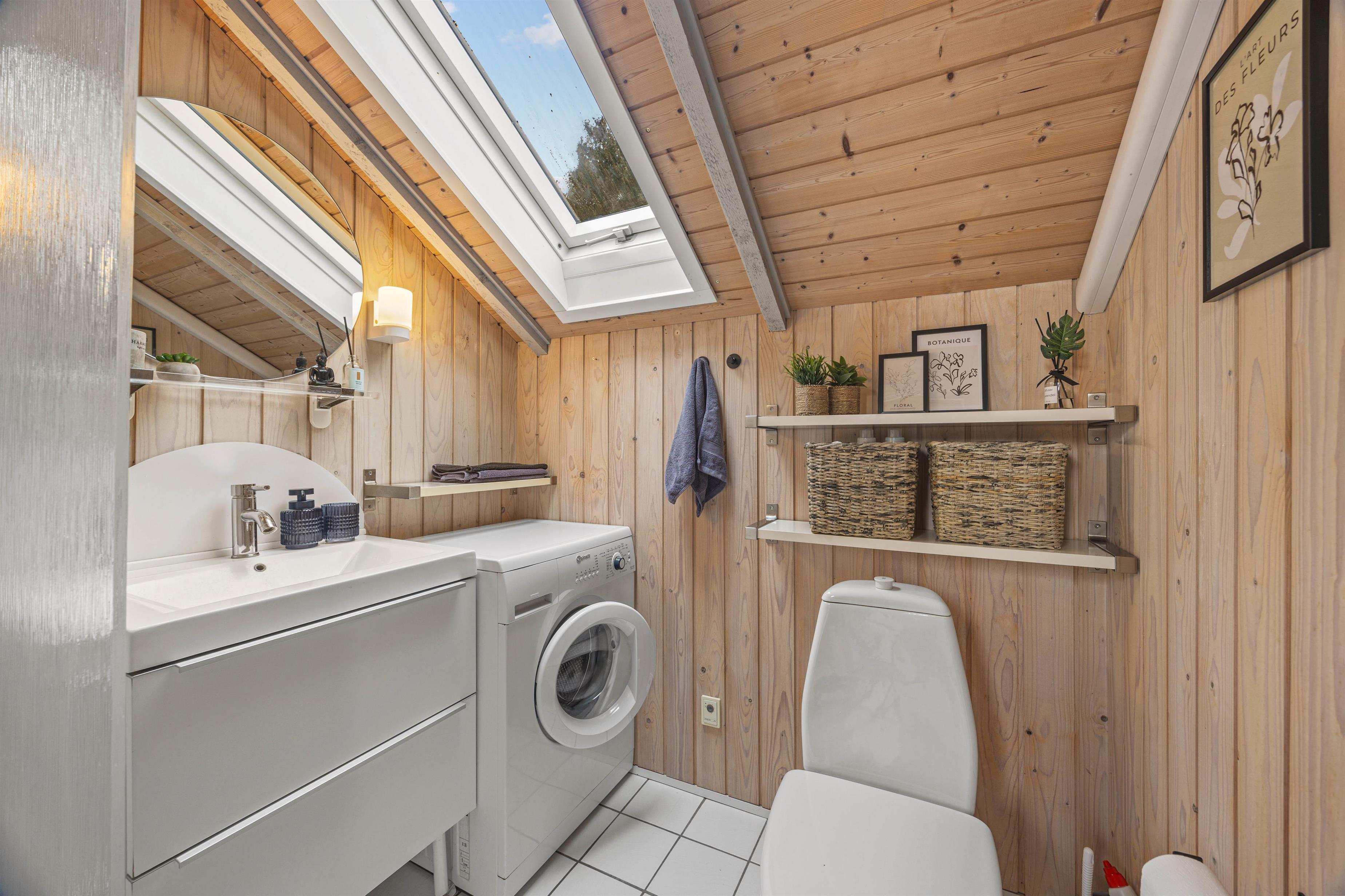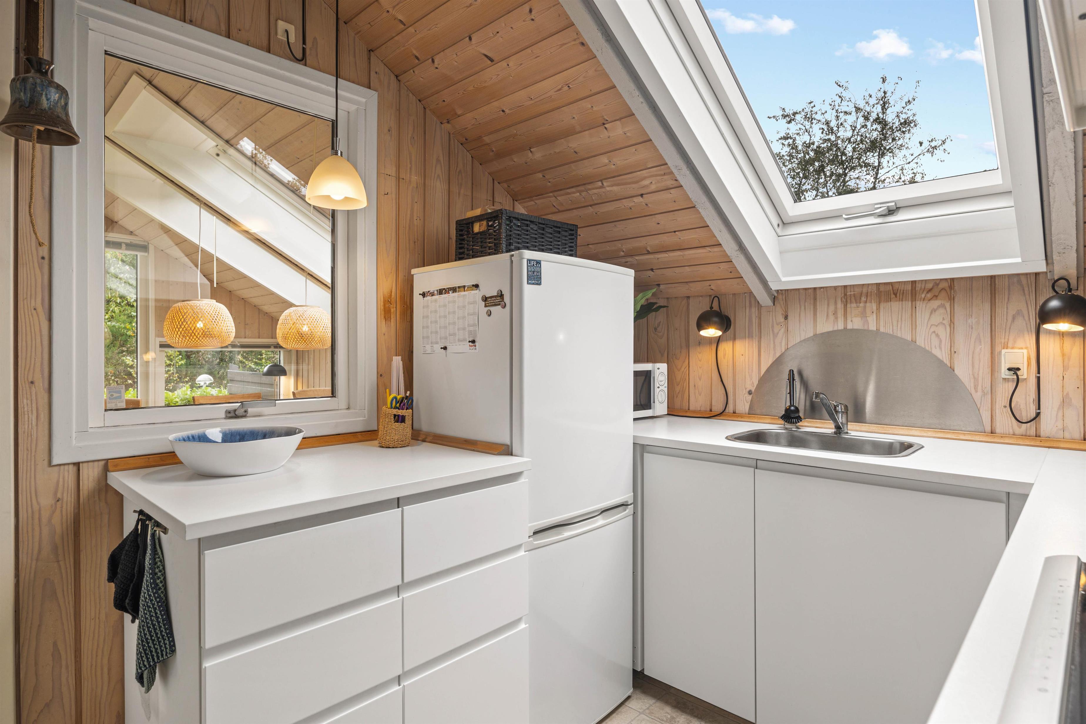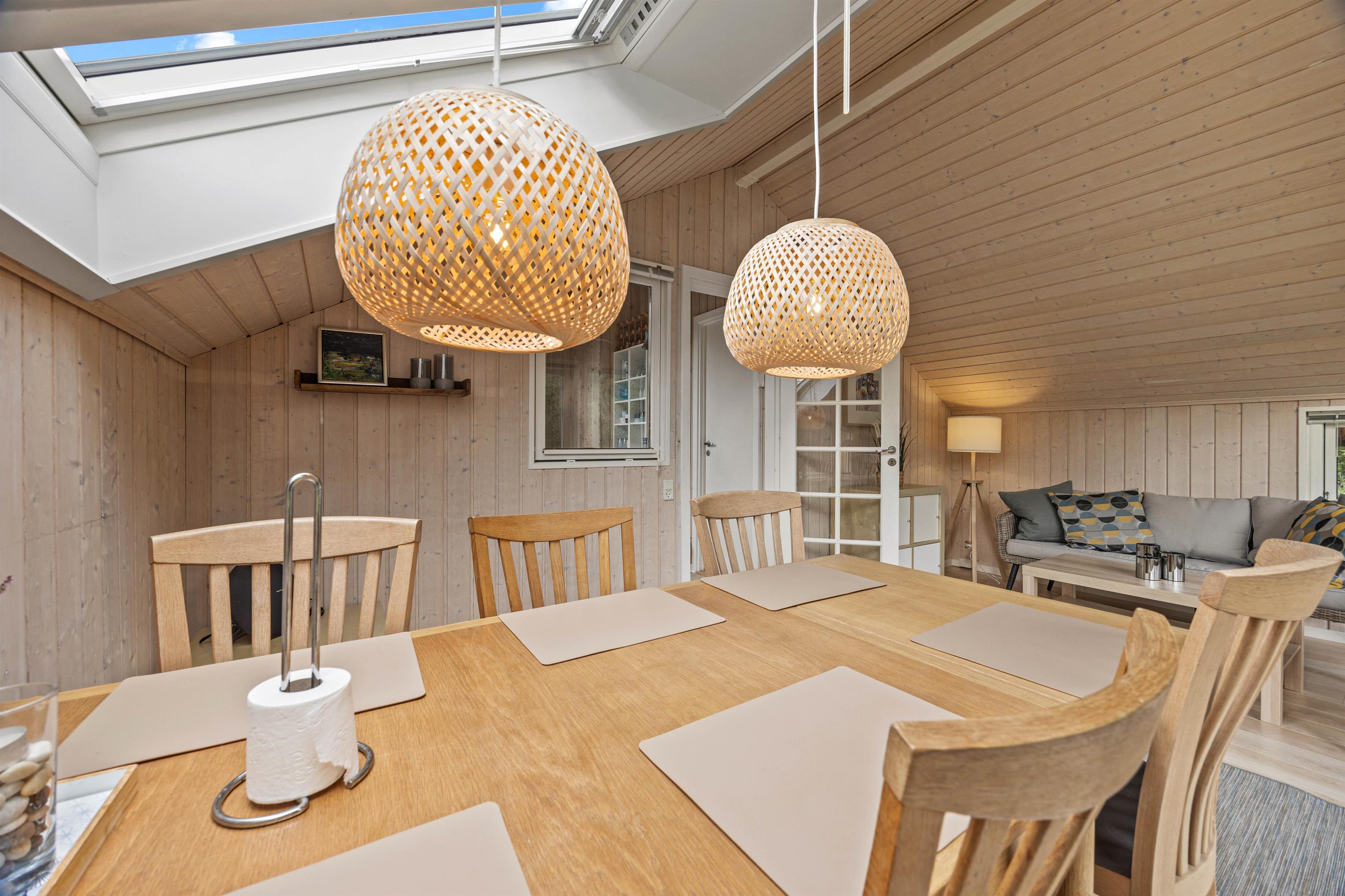 Indenfor byder sommerhuset jer velkommen med en varm og afslappet atmosfære, hvor alt er tænkt til at gøre ferien let og bekvem. Vaskemaskinen sørger for, at familiens tøj hurtigt kan klares, så I kan bruge tiden på at nyde ferien. I den hyggelige stue knitrer brændeovnen og spreder både varme og charme – perfekt til lange, rolige aftener med spil, bøger eller en god film. Badeværelset er moderne og udstyret med gulvvarme, så I kan starte dagen med lune fødder og en følelse af velvære.
