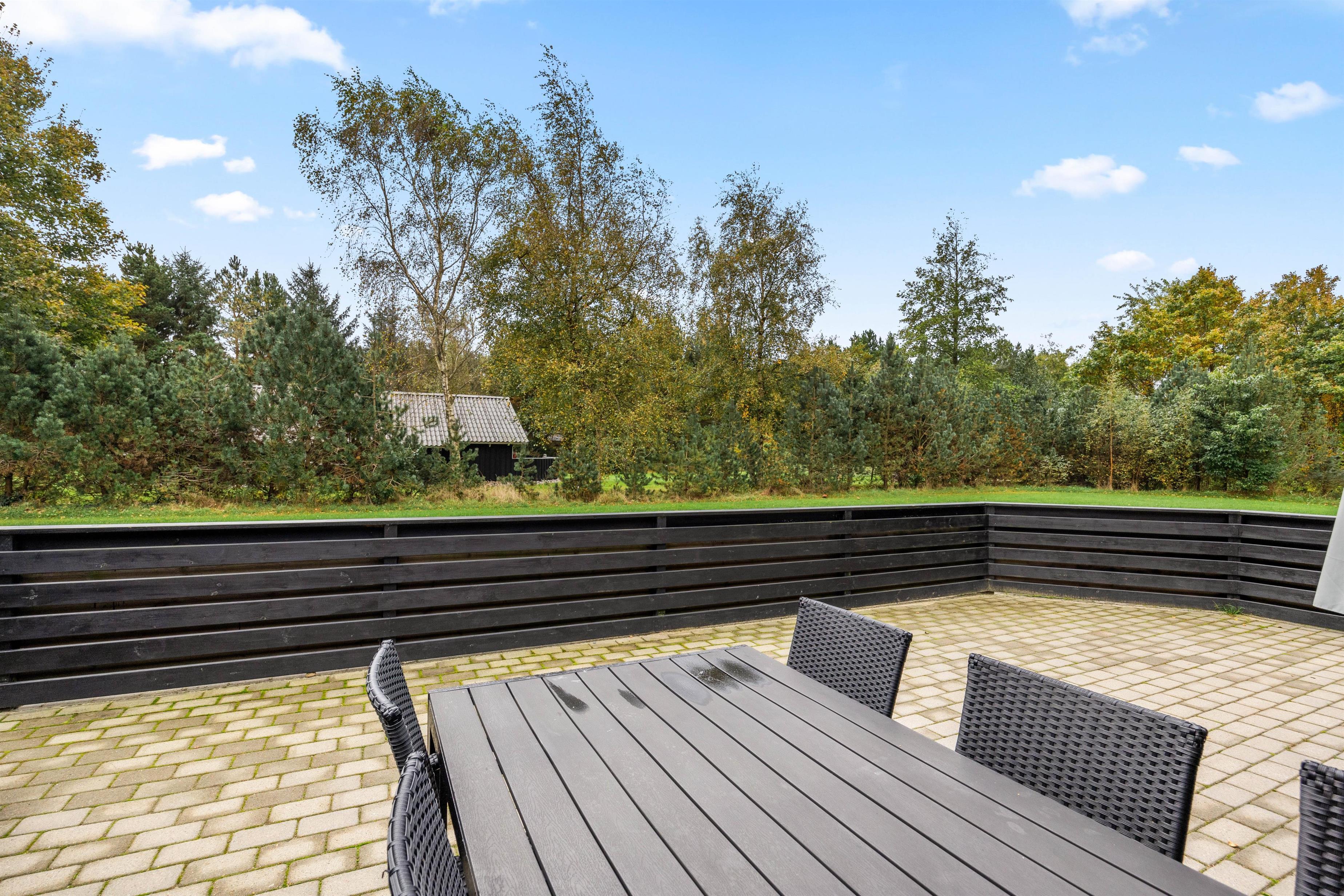 Den overdækkede og afskærmede terrasse er det perfekte sted at nyde morgenkaffen, mens I lytter til fuglenes kvidren, eller spise aftensmaden fra grillen, mens solen langsomt går ned bag træerne.