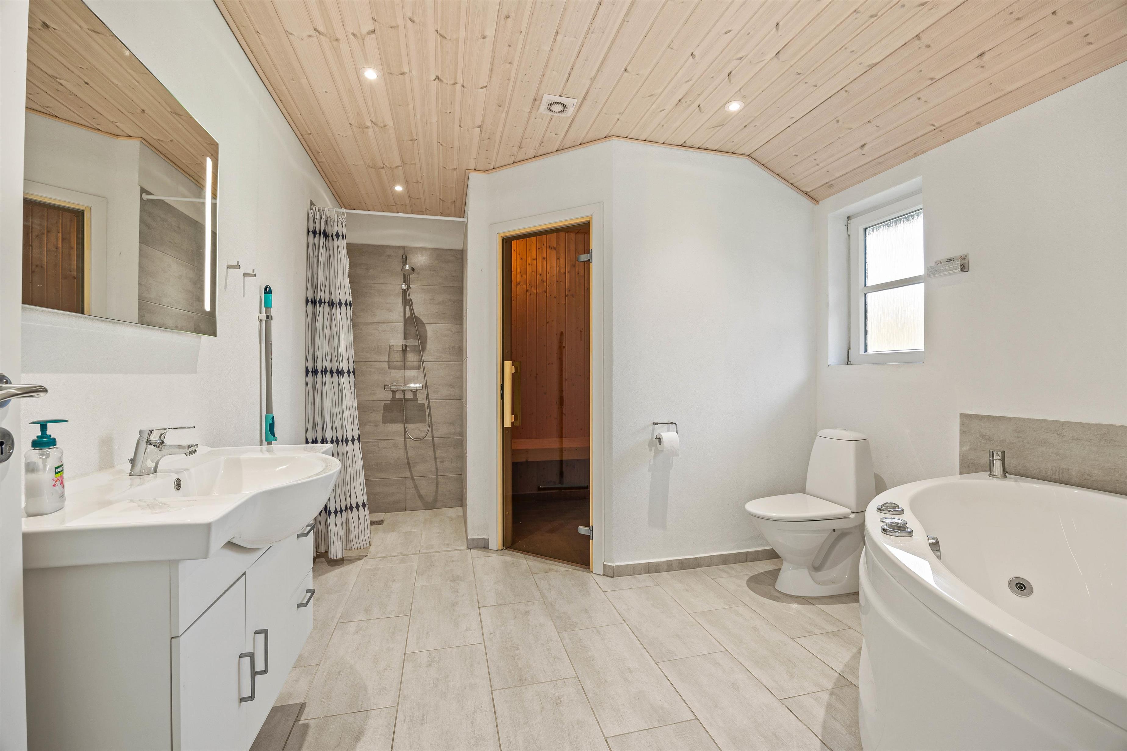 De 2 badeværelser sikrer, at alle har den nødvendige privatliv og komfort, I har brug for under opholdet. Det er også her I finder sommerhusets sauna og spa, hvor I kan blive varmet helt ind til knoglerne efter en lang gåtur i det skønne ferieland.