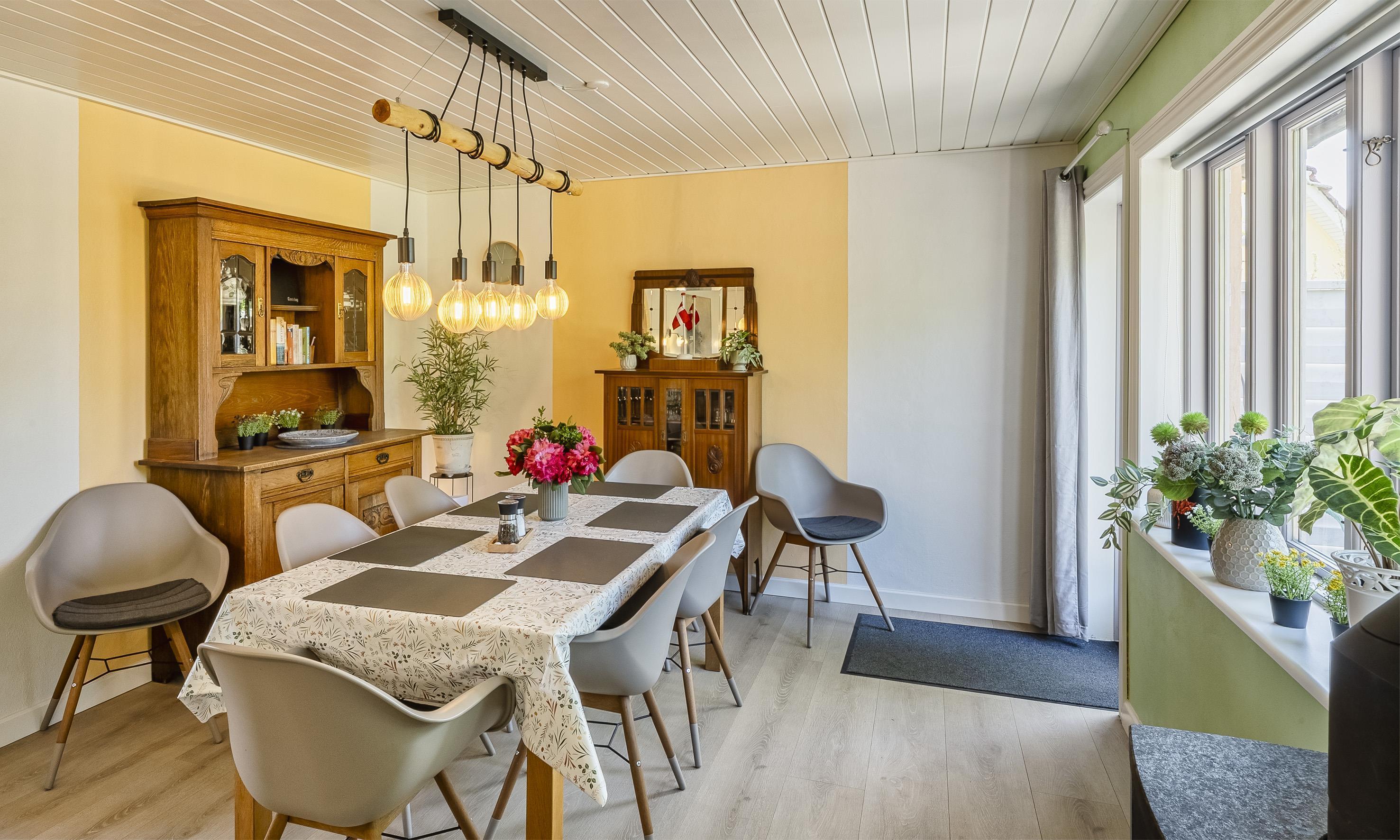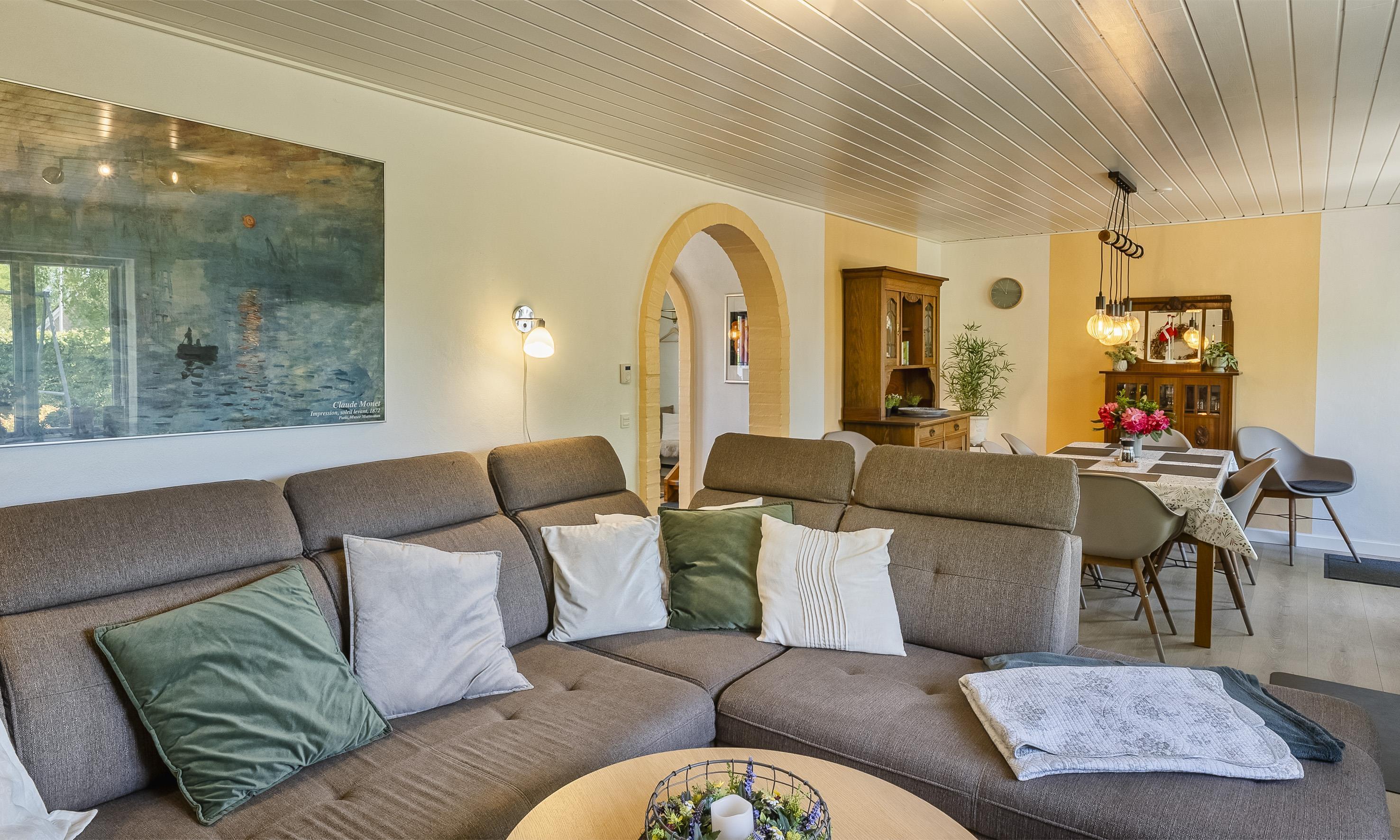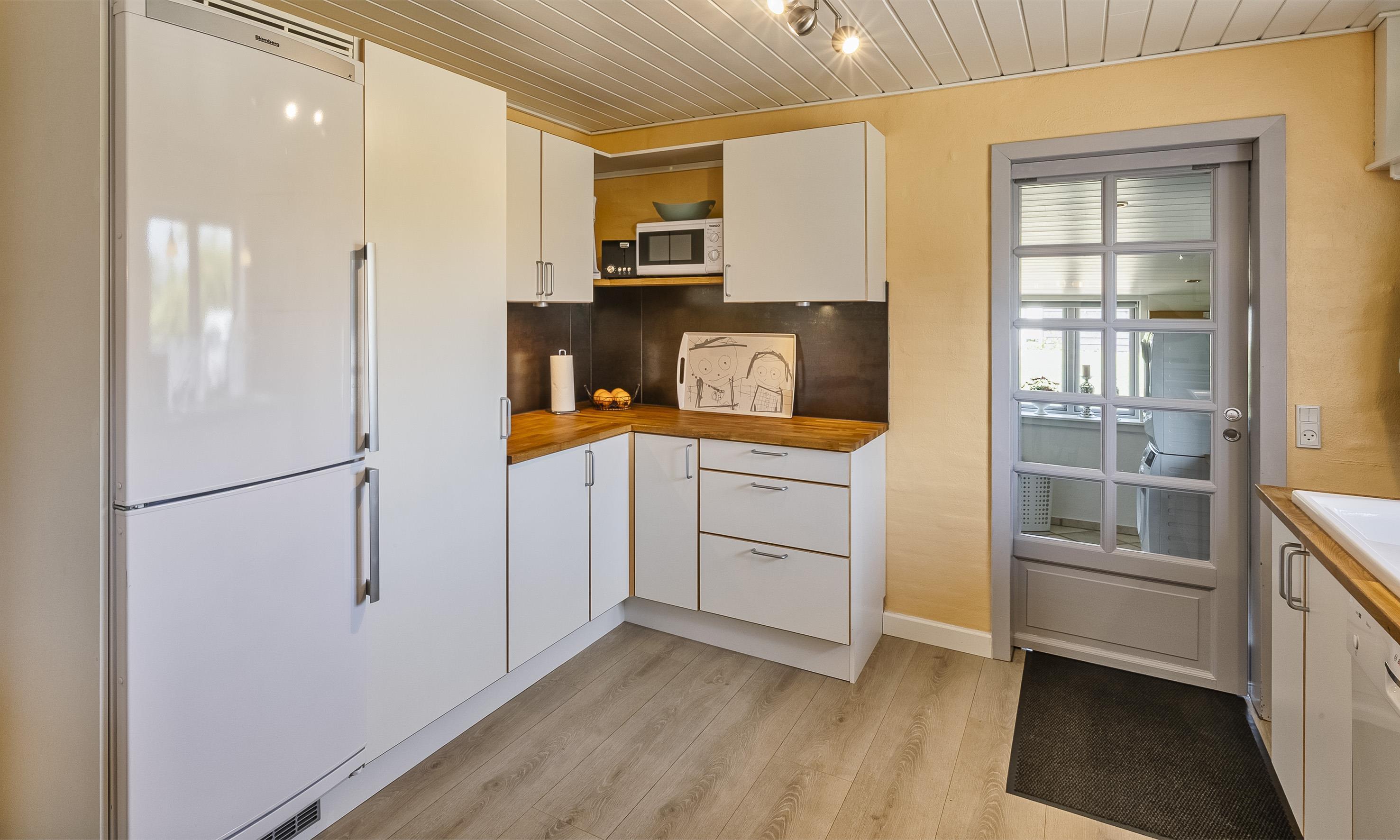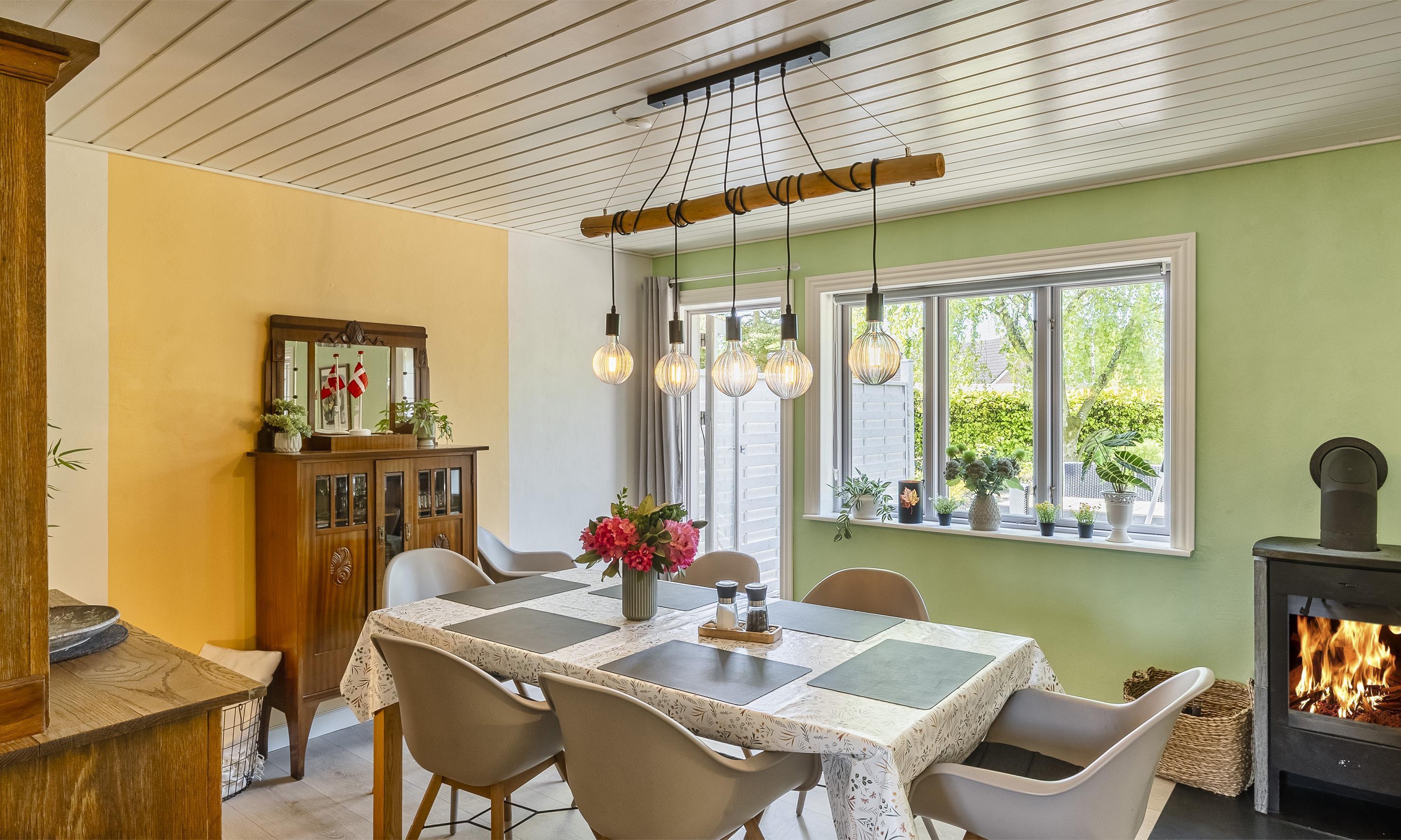 Her bor I i et lyst og venligt indrettet hus med god plads til afslapning og samvær. Den åbne planløsning og det varme farvevalg skaber en hyggelig atmosfære, og med brændeovn og energivenlig luft/vand varmepumpe samt de komfortable møbler, er der rig mulighed for hyggelige aftener efter en dag med oplevelser. Feriehuset er hensigtsmæssigt indrettet og udstyret med alt, hvad I behøver – ideelt for både familier og par.