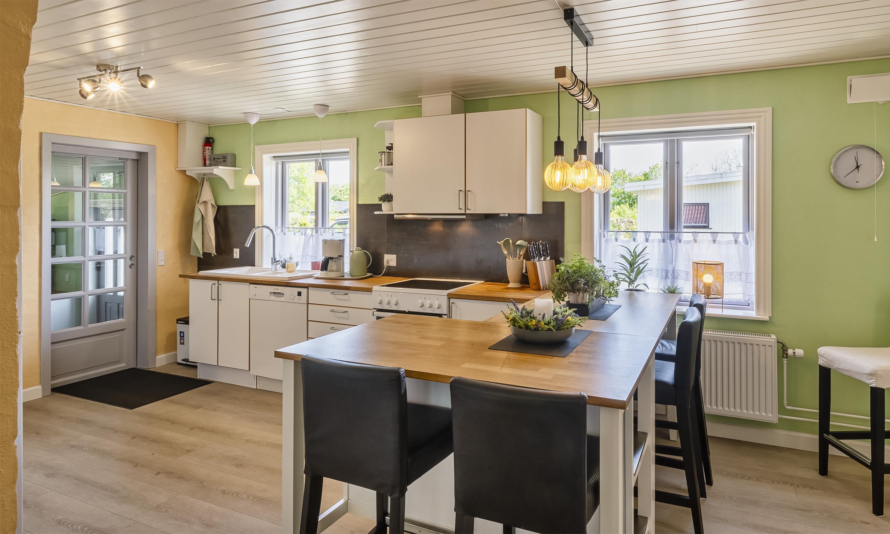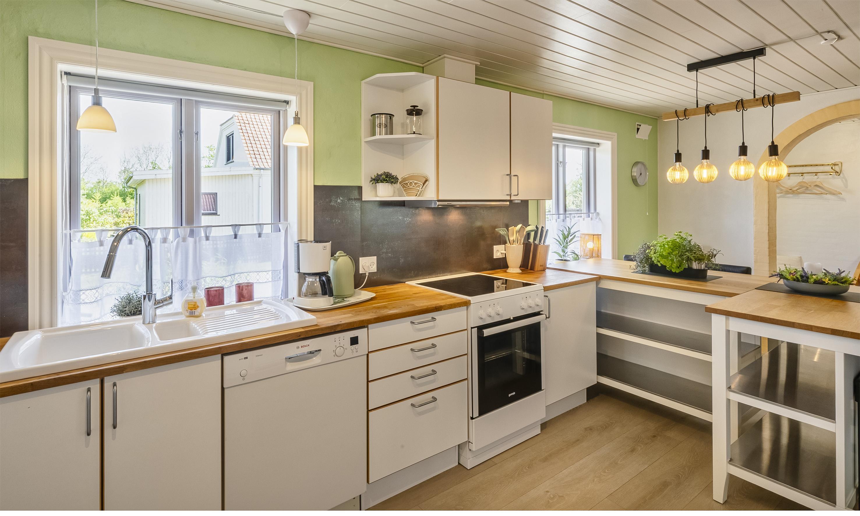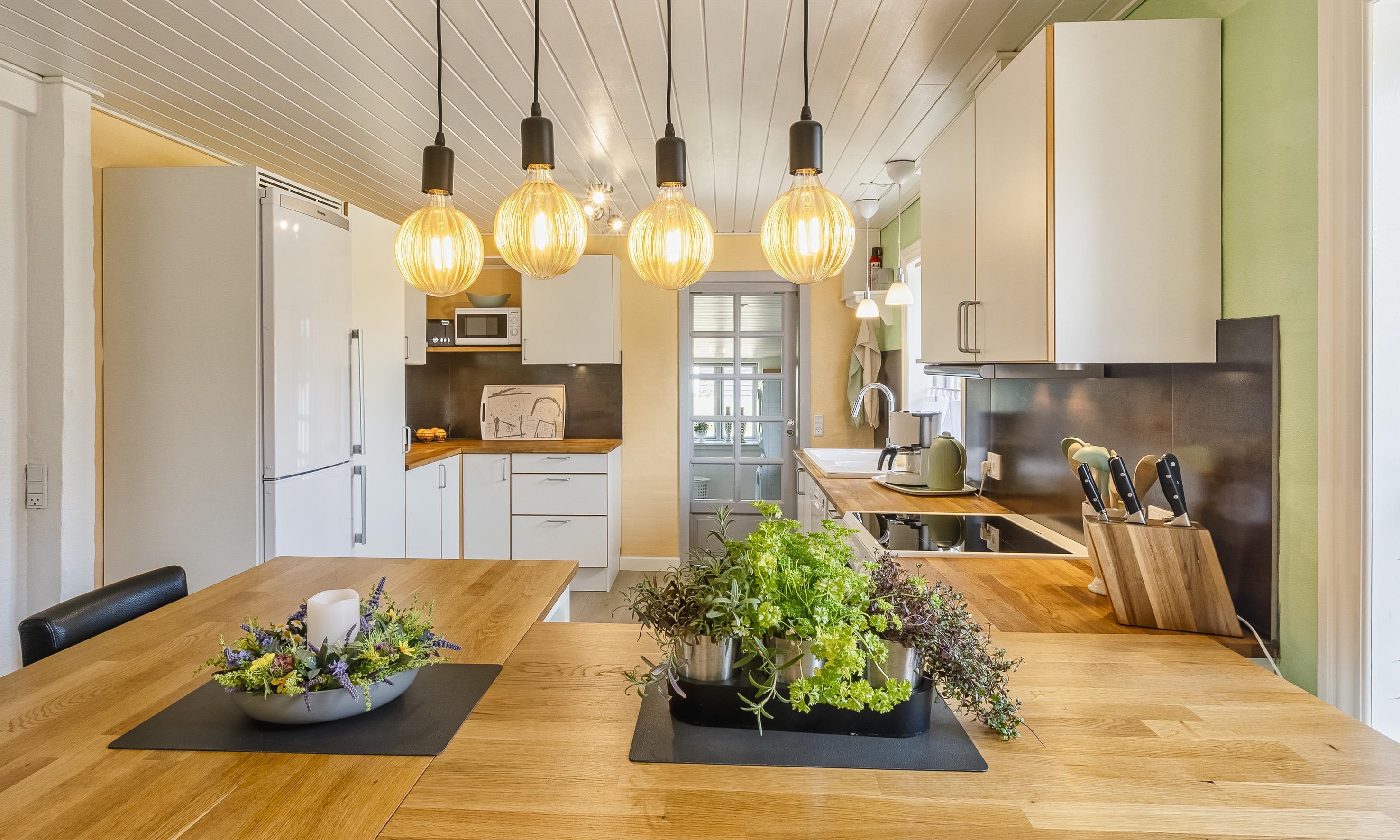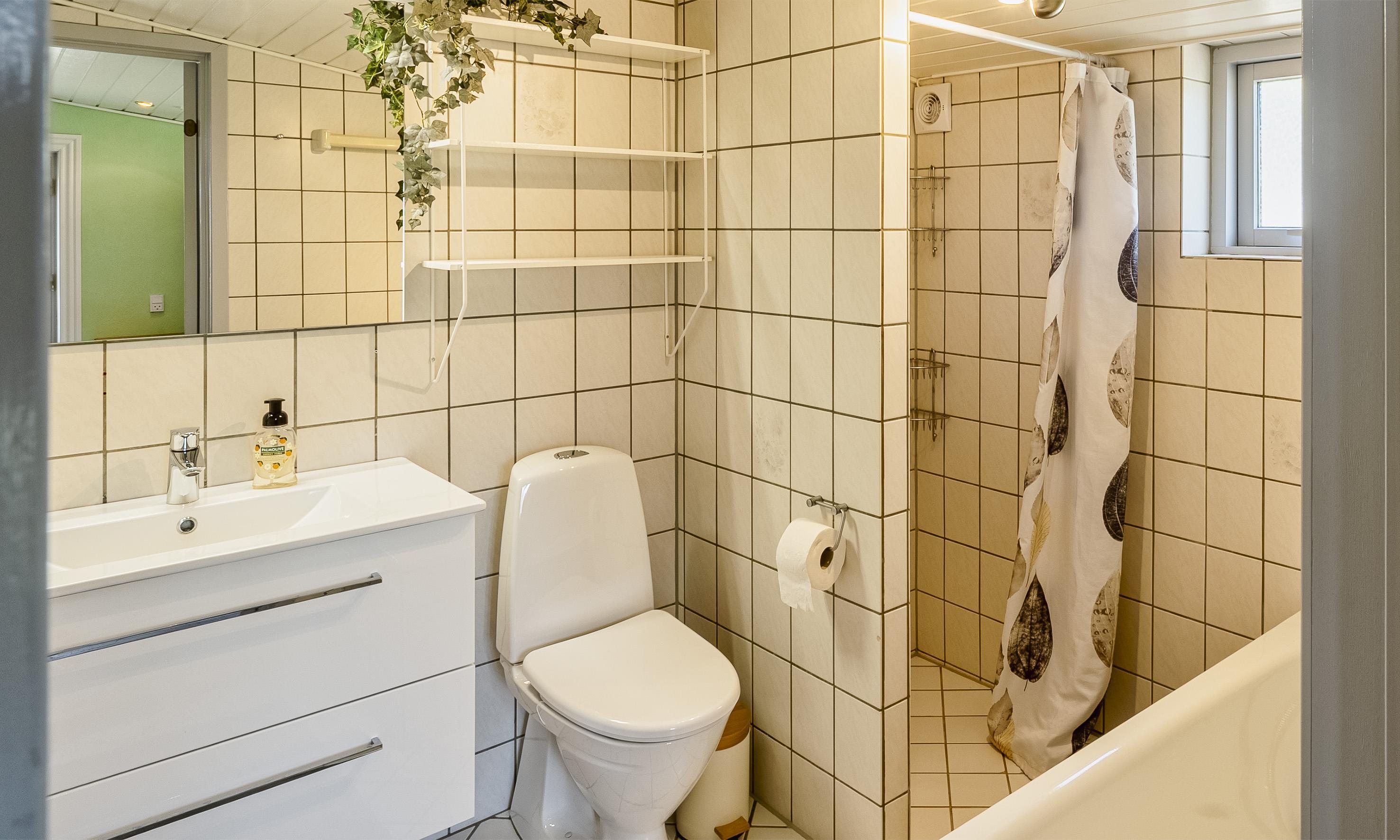 Her bor I i et lyst og venligt indrettet hus med god plads til afslapning og samvær. Den åbne planløsning og det varme farvevalg skaber en hyggelig atmosfære, og med brændeovn og energivenlig luft/vand varmepumpe samt de komfortable møbler, er der rig mulighed for hyggelige aftener efter en dag med oplevelser. Feriehuset er hensigtsmæssigt indrettet og udstyret med alt, hvad I behøver – ideelt for både familier og par.